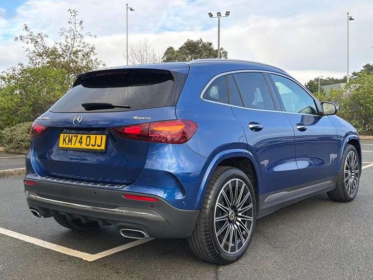 10.25 inch touchscreen central media display, 10.25" Digital instrument cluster display screen, Attention assist, Direct steering, DYNAMIC SELECT with a choice of driving modes (ECO, Comfort, Sport and Individual), Easy-pack tailgate, ECO start/stop function, Fingerprint scanner, Fluid level warning indicator for fuel, oil, coolant and washer fluid, Full color head up display, Hard-disk navigation, Hey Mercedes Voice activation, Lamp failure indicator, Lane keeping assist (LKA), Mercedes me connect including emergency call system, accident recovery, breakdown and maintenance management, Mercedes me remote services, Multi function trip computer, Outside temperature gauge, Owners manual and service booklet in English, Pre-installation of private car share, Radio aerial integrated into front and rear windshields, Service indicator (ASSYST), Smartphone integration with Apple CarPlay and Android auto, Traffic sign assist, Wireless charging, Lowered comfort suspension, Rear axle multi-link, Suspension with adaptive damping system, Bluetooth connectivity including audio streaming, DAB Digital radio, MBUX multimedia system, Mercedes-Benz (225w) sound system with 10 speakers, Adaptive brake lights, Adaptive full LED rear lights with automatic adjustment of light intensity to the surroundings, Aluminium roof rails, AMG front apron with front splitter in the colour of the vehicle with chrome trim element, AMG rear apron with visible tailpipe trim and chrome trim element, AMG specific/dual flow exhaust pipes in chrome (non-functional), Automatic headlamp activation, Beltline trim and window line trim strip in high gloss black, Black grained side sill trim with chrome inlay, Body coloured door handles with chrome insert for keyless entry, Car wash function, Cornering light function with activated high beam, Dark privacy glass from B-pillar backwards, Electric front windows, Electric rear windows, Electrically adjustable and heated door mirrors with integrated LED indicators, Exhaust system with 2 Visible tailpipe trim elements and rear apron with trim in chrome, Heat insulating dark tinted glass, Heated glass rear windscreen + timer control, Illuminated door sill panels with Mercedes-Benz lettering, Interior mirror with black reading lamps and frameless, LED daytime running lights, LED third brake light, Multibeam LED headlamps with adaptive highbeam assist plus, Panoramic sunroof, Rain sensor windscreen wipers, Rear fog lights, Rear side wing doors, Rear wiper, Wheel arch liners in the colour of the vehicle, 3 seat bench in 2nd row, 3 spoke flat bottom multifunction nappa leather steering wheel, 40:20:40 split folding rear seat backrests, Adjustable head restraints, Air conditioning - air vents with silver chrome surround, Air conditioning - Two zone thermotronic luxury automatic climate control with display, AMG floor mats, Auto Mercedes-Benz child seat recognition sensor, Black roof lining, Courtesy light in boot, Electrically adjustable front memory seats with four way lumbar support, Fluorescent jacket, Front centre armrest with stowage, Galvanished gear shift paddles on steering wheel in silver chrome, Heated front seats, Illuminated glovebox, Interior lighting - 64 colour Ambient lighting, Luggage net on driver/front passenger seat backrest, Manually height and reach adjustable steering column, Single front passenger seat, Sports pedals in brushed stainless steel with black rubber studs, Sports seats, Sports steering wheel, Stowage compartment in centre console, Stowage compartment with retractable cover, Sunvisors with illuminated vanity mirrors, Twin front cup holders, Two outer rear seat isofix and top tether child seat fixing points, Comfort seat pack - GLA Class, Driving assistance package - GLA, Interior lighting with light and sight pack - GLA, Keyless go comfort package - GLA, Mirror pack - GLA Class, Night package - GLA, Off road engineering pack - GLA, Parking package with 360-degree camera - GLA, USB package plus - GLA, 3 rear 3 point seatbelts, ABS with Brake Assist, Active bonnet pedestrain safety measure which detects an impact and raises bonnet by 65mm, Active brake assist includes forward collision warning system with autonomous braking, Adaptive brake assist with hold function and hill start assist, Black seatbelts, Bonnet with power domes, Brake pad wear warning indicator, Braking system with larger brake discs on the front axle, Childproof locks manually operated for rear doors and electrically operated for rear power windows, Crash responsive emergency lighting, Driver and passenger head and side airbags, Drivers knee airbag, Dual stage driver/passenger airbags, Electronic parking brake, ESP curve dynamic assist, ESP with ASR, Exit warning, Front and rear seatbelt reminder, Front brake callipers with Mercedes Benz logo lettering on front, Front brake discs internally ventilated and perforated, Front passenger seat occupancy sensor, Sports braking system, Tyre pressure monitoring system, Warning triangle and first aid kit, Window airbags, Alarm system with immobiliser and interior protection -Thatcham category 1, Guard 360 degree vehicle protection, Keyless Go starting function, Remote central locking and crash sensor with emergency opening function, Light longitudinal grain aluminium trim, 20" AMG multi spoke light alloy wheels aerodynamically optimised and painted in black with a high-sheen rim flangle RVT, Summer tyres, Tirefit tyre sealant kit,