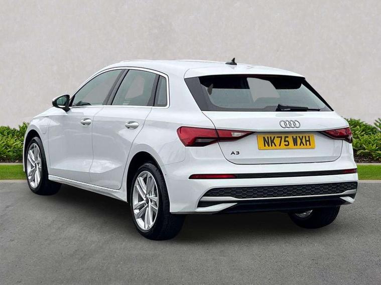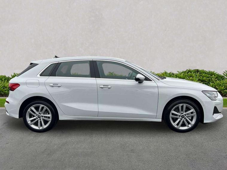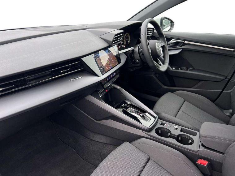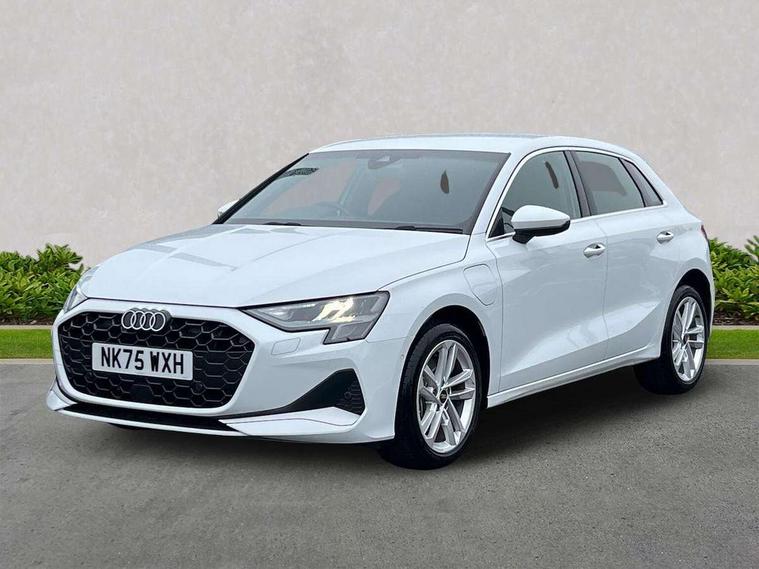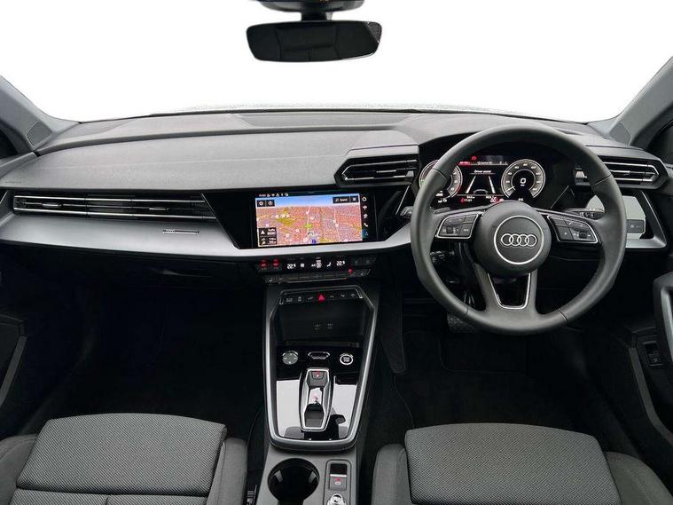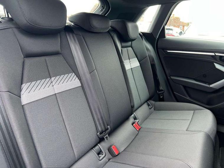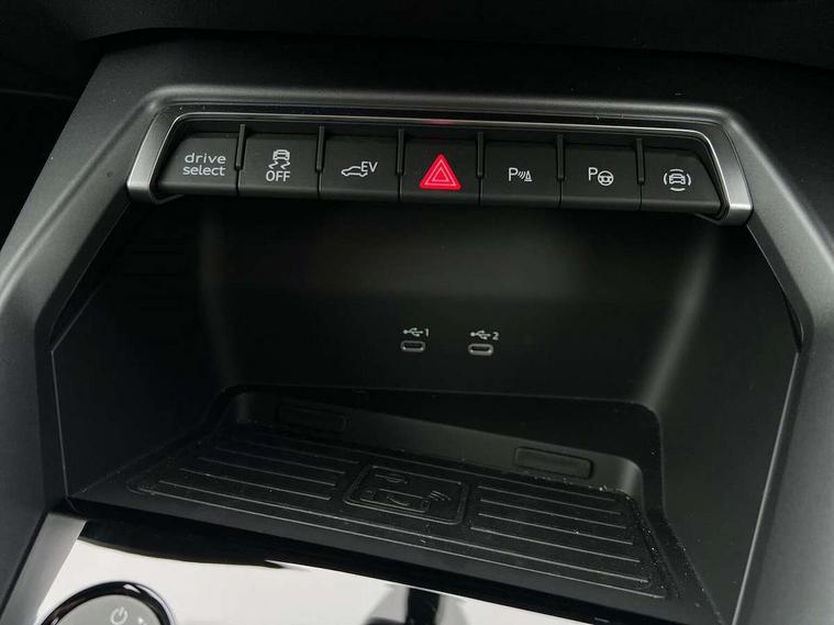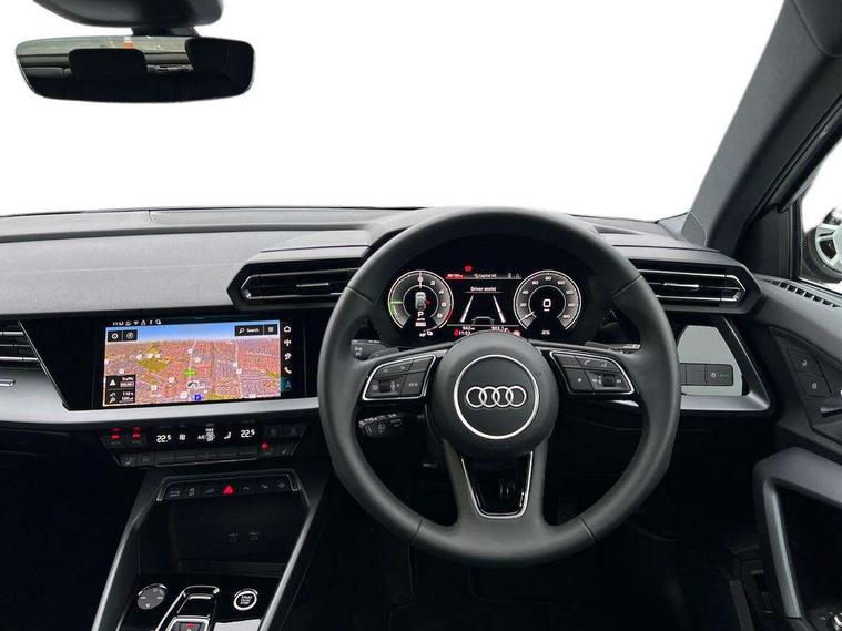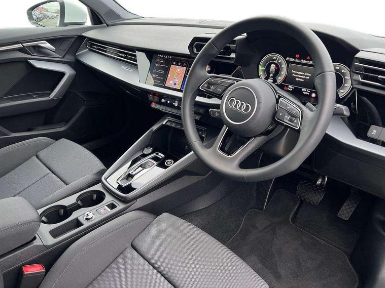 Adjustable speed limiter, Audi drive select, Audi smartphone interface with app store includes wireless Apple carplay, Android auto and Amazon alexa integration, Audi virtual cockpit plus - 12.3" full HD resolution dynamic digital instrument cluster, Automatic start/stop system with recuperation, Bluetooth interface, Camera based traffic sign recognition, Collision avoidance assistant, Cruise control, Distraction and Fatigue warning, e-Call (emergency call), Electromechanical power speed sensitive steering, Emergency assist, Lane departure warning system, MMI Navigation Plus with high resolution 10.1" colour touch screen display, Park Assist with parking system Plus, Service indicator, Trip computer, Voice control system with natural language interaction, 3 pin 10 amp domestic charging cable, CCS socket for DC charging, Charging cable for public charging, mode 3 (type 2), 32 A, Compact charging system, Industrial connector CEE 32 A, 230 V, length 1.6 m, Standard suspension, Type 2 socket for AC charging, Audi Phonebox light with wireless charging, Audi sound system - 10 loudspeakers including centre loudspeaker and subwoofer, DAB Digital radio, USB ports with charging function in the rear, 3rd brake light, Acoustic glass windscreen, Aluminium window trim, Auto dimming frameless rear view mirror, Body colour exterior mirrors, Body colour roof spoiler, Dipped beam, main beam, position light and turning light, Electrically adjustable/heated/folding/auto dimming door mirrors with integrated LED indications + kerb view function for passenger side, Exterior model badging, Front electric windows, Front radiator grill in high gloss dark chrome, Front side air inlets in grained matt black with silver frame, Heat insulating glass windscreen, LED daytime running lights, LED headlights and halogen rear lights, Light and rain sensors, Rear diffuser and grill in grained matt black with silver frame, Rear electric windows, Rear side wing doors, Rear window, rear door windows and rear side windows in clear glass, Rear wiper, 12V socket and storage compartment in front centre console, 3 seat bench in 2nd row, 3 spoke leather multifunction steering wheel with gear shift paddles, 3-zone deluxe automatic air conditioning, 4 way electrically adjustable lumbar support for driver and front passenger, 60/40 split folding rear seat bench, Black front and rear floor mats, Convenience auxiliary air conditioning, Front and rear headrests, Front centre armrest, Front door sill trims with aluminium inlay, Heated front seats, Height and reach adjustable steering wheel, Manual boot compartment lid, Manually adjustable front seats, Routine cloth upholstery with front sports seats, Seat side bolsters, Single front passenger seat, Steel grey cloth headlining, Aluminium interior elements pack - A3, LED interior lighting pack -A3, 3x3 point rear seat belts, Acoustic vehicle alerting system, Driver and front passenger airbag with passenger airbag deactivation, Electronic Stabilisation Control (ESC) including ABS, ASR and EDL, First aid kit with warning triangle and 2 safety vests, Front side airbags with head airbags and interaction airbag, Hill hold assist, Pre-sense front with pedestrian and cyclist detection, Seatbelt monitoring, Tyre pressure loss indicator, Anti theft alarm, Anti-theft wheel bolts, Electronically operated child locks, Immobiliser, Remote central locking with safelock, Black dashboard, Inlays in volcano grey fine paint finish, Tyre repair kit,