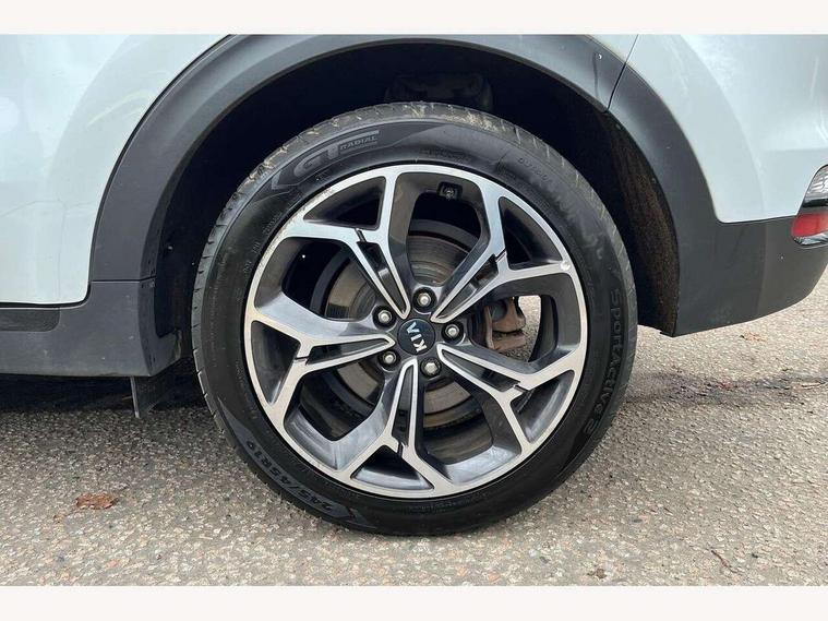 4.2" supervision colour cluster display, 8" touchscreen satellite navigation with European mapping and traffic messaging channel, Android auto with voice control, Apple car play with voice control, Cruise control + speed limiter, Drive mode selector, Driver attention warning, E-call, Emergency stop signalling system, Front parking sensor, Kia Connect (UVO), Kia connected services featuring TomTom live, Lane keep assist, Rear parking sensor, Reversing camera, Speed limit information, Speed sensitive power steering, Trip computer, Windscreen washer level indicator, Intelligent Stop and Go, 6 speaker audio system, Bluetooth audio streaming, DAB Radio with MP3, Rear USB port, Steering wheel mounted audio controls, USB port for connection of a media device, All round electric windows with drivers auto up/down function, Auto dimming rear view mirror, Automatic lighting control, Automatic window defogger, Black wheel arch body mouldings and side sills with dark chrome insert, Body colour door handles with chrome inserts, Body colour door mirrors, Chrome window surround, Dark chrome front bumper insert, Dark chrome front grille surround, Electrically adjustable/heated/folding door mirrors with LED indicators, Front wiper de-icer, High beam assist, High gloss black blade mesh radiator grille, LED Bi-Function headlights, LED daytime running lights, LED ice cube front fog lights, LED rear lights, LED third brake light, Premium paint, Privacy glass - Rear windows and tailgate, Rain sensing front wipers, Rear side wing doors, Rear spoiler, Rear wiper, Roof rails, Shark fin antenna, Silver painted front and rear skid plates, Tinted glass, Trailer stability assist, Welcome and follow-me home light functionality, Wide view drivers door mirror, 12V power in front and rear centre console, 3 seat bench in 2nd row, 3 x passenger assist grips, 60/40 split folding rear seat, Air filter, All-round height adjustable headrests, Aluminium door scuff plates, Aluminium pedals, Black headlining, Centre cabin light, Centre console storage box, Chrome boot sill guard, D-Shaped sports leather steering wheel and perforated inserts with GT-Line logo, Driver and front passenger side sunvisors with illuminated vanity mirrors, Driver's seat manual height adjust, Drivers seat power lumbar support, Dual zone automatic air conditioning, Front and rear door storage, Front cabin LED map light with sunglasses case, Front door courtesy reflectors, Front seat and rear pockets, Front/rear centre armrests, Gear shift indicator, Glovebox illumination, Heated front and outer rear seats, Interior door lock/unlock function, ISOFIX Child seat top tethers and anchor fixings outer rear seats, Leather trimmed door armrests, Leather trimmed gearshift, Luggage area light, Luggage area load cover, Luggage net with hooks, Paddle shift controls, Rear centre armrest with cupholder, Rear coat hooks, Satin chrome interior door handles, Single front passenger seat, Tilt/telescopic adjustable steering wheel, Two tone leather upholstery, Ventilation ducts to rear compartment, Active front headrests, All round 3-point seatbelts, Anti-lock braking system with electronic brakeforce distribution, Dual front side airbags, Electronic parking brake, Electronic stability control with downhill brake control, Front passenger airbag cut-off switch, Front seatbelt pretensioners + load limiters, Height adjustable front seatbelts, Hill start assist control (HAC), Impact sensing auto door unlocking, Rear door child safety locks, Traction control, Twin curtain airbags with roll over sensor, Twin front airbags, Tyre pressure monitoring system, Advanced anti-theft system including immobiliser and alarm, Door deadlocks, Engine Start/Stop Button with Smart Entry System, Locking wheel nuts, Speed sensitive auto door locking, Visible vehicle identification number, High gloss black centre fascia, 19" alloy Wheels B-type, Tyre mobility kit,