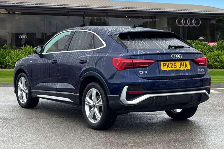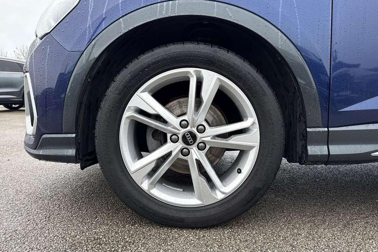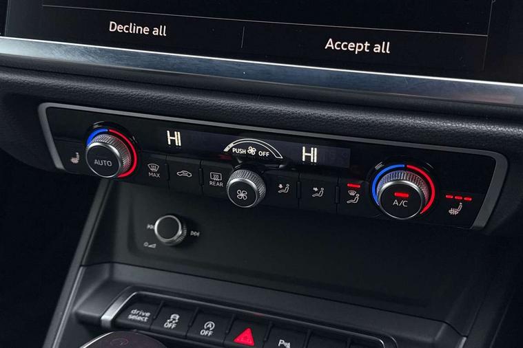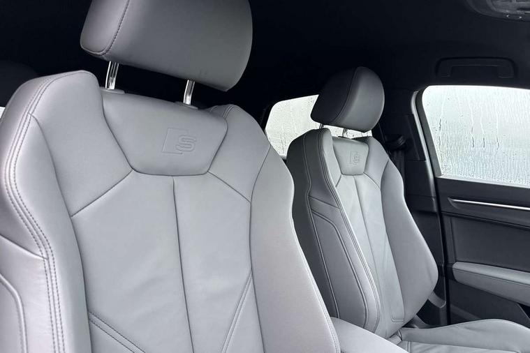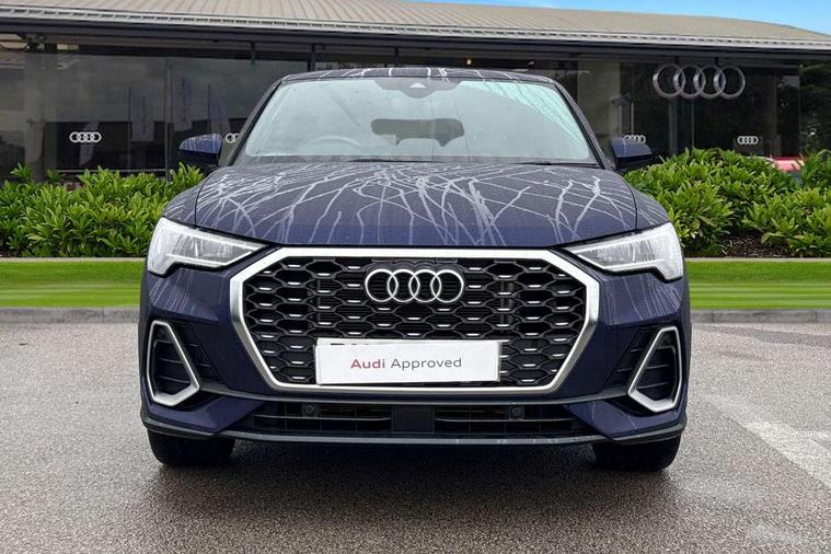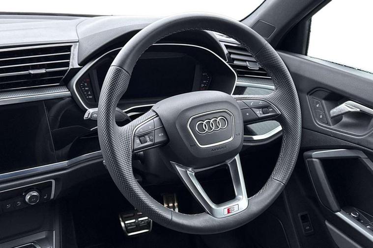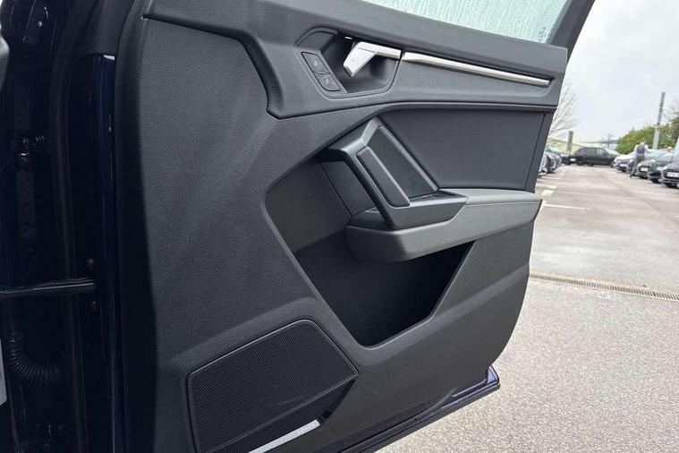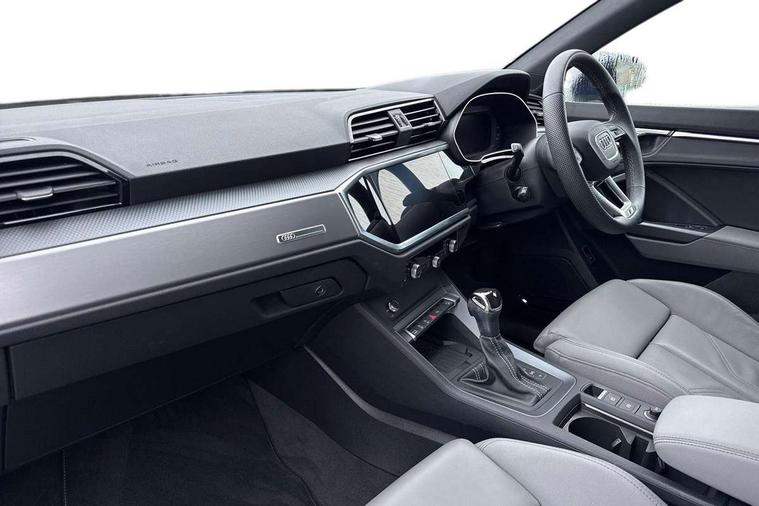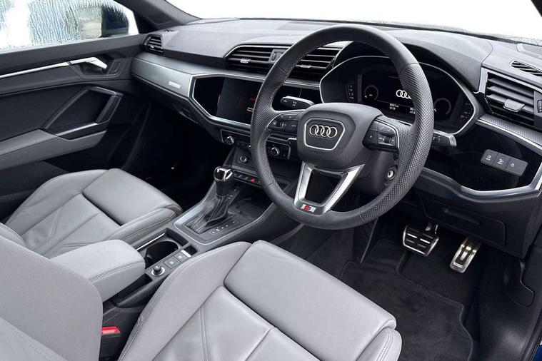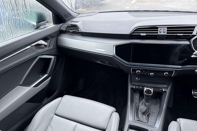Audi connect safety and service, Audi drive select, Audi lane departure warning, Audi Virtual Cockpit - 10.25" display, Bluetooth interface, Camera based traffic sign recognition, Distraction and Fatigue warning, Legal emergency call, MMI Navigation Plus with high resolution 10.1 inch touchscreen colour display, Power operated tailgate, Progressive steering, Service interval indicator, Smartphone interface includes wireless Apple carplay/Android Auto, Start stop system with recuperation, Voice control system with natural language interaction, Sports suspension, 2 USB-C ports with charge and data functions, 6 passive loudspeakers, DAB digital radio module, Acoustic windscreen, Aluminium window trim, Auto dimming door mirrors, Auto dimming frameless rear view mirror, Diffuser grille in grained matt black, Diffuser trim in selenite silver, Electrically folding, adjustable and heated door mirrors with integrated LED side indicators and kerb view function for passenger side, Front and rear electric windows, Front fog lights, Front side air inlets in selenite silver, Front underbody protection in manhattan grey paint finish, Grille surround in aluminium silver matt, High gloss black finish B and C pillars, LED Dynamic rear indicators, LED headlights with LED daytime running lights, LED rear lights, LED third brake light, Privacy glass dark tinted rear and rear-side windows (from B-pillar backwards), Radiator grille in anthracite black with inlay in matt aluminium silver, Rain and light sensors, Rear side wing doors, Rear underbody protection in matt black, Rear wiper, S line badges on front wings, S line front and rear bumpers and side skirts in contrasting Manhattan grey paint finish, Side skirt insert in matt Platinium grey, Variable front intermittent wipers, 12V socket in rear centre console, 3 seat bench in 2nd row, 3 spoke leather multifunction steering wheel features S badging and grips in perforated leather with contrast stitching, 40:20:40 folding with manual adjustment for 60:40 forwards/backwards position and backrest angle, Adjustable rear seat bench/backrest with centre armrest and cupholder, Black cloth headlining, Dual zone electronic climate control, Electric lumbar support, Front and rear black floor mats with contrast stitching, Front and rear headrests, Front centre armrest, Height and reach adjustable steering wheel, Illuminated door sill trims with S logo, ISOFIX child seat mounting for front passenger with airbag deactivation and outer rear seat including top tether attachment point for outer rear seats, Luggage compartment sill protection in stainless steel, Manual front seats with height adjustment, Perforated leather gearknob, Single front passenger seat, Stainless steel pedals, Twin leather upholstery with front sport seats + S embossing, Non smoking pack - Q3, 3x3 point rear seatbelts, 6 airbags - Driver, front passenger, curtain and side windows, Audi pre-sense front with pedestrain and cyclist recognition, Electrically operated child locks on rear doors, Electromechanical parking brake, Electronic stabilisation control including ABS, ASR and EDL, Front seatbelt reminder, Hill descent control, Hill hold assist, Pre sense basic, Seatbelt monitoring, Tyre pressure warning, Warning triangle and first aid kit, Anti theft wheel bolts, Immobiliser, Remote central locking, Thatcham approved category 1 anti theft alarm, Aluminium look interior elements, Dark matt brushed aluminium inlay, Detail dashboard around MMI touch colour display in glass look, black with surround in aluminium look, Leatherette door armrest,