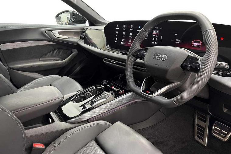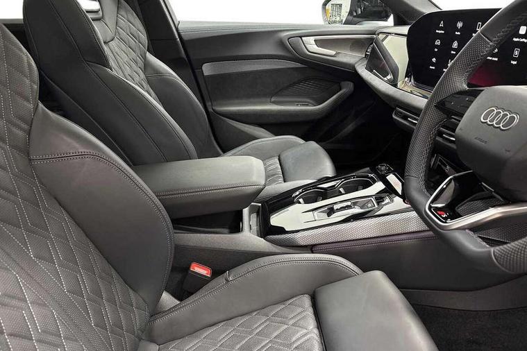 Adaptive cruise assist plus with steering intervention, Advanced driver attention and fatigue montior, Audi application store, Audi assistant, Audi connect emergency call and service, Audi drive select, Audi smartphone interface, Audi virtual cockpit plus with 11.9" OLED colour display, Automatic start/stop system with coasting functionality, Camera based traffic sign recognition, Garage door opener, Intersection assist, Lane change assistant with exit warning system, rear cross traffic alert and rear turn assist, Lane departure warning with emergency assist, MMI 10.9" front passenger touch display, MMI navigation plus with high resolution 14.5" OLED touchscreen colour display, Park assist plus, Parking system plus with 360 display, Progressive steering with servotronic, Swerve assist and turn assist, Top view camera, Traffic sign based speed limiter, Quattro with sport differential, S sports suspension with damper control lowered by 20mm, 2 USB-C ports in both the front and rear, DAB digital radio reception, Smartphone compartment with wireless charging, Aluminium window trims, Auto dimming rear view mirror, Black door handles, Black roof rails, Dark chrome-plated tailpipe trims, Digital OLED tail lights including communication light, Door mirrors - electrically adjustable, heated, folding and auto dimming on both sides, Front and rear electric windows, Front door sill trims with aluminium inlays, illuminated with 'S' logo, Headlight cleaning system, High beam assist, LED daytime running lights, LED third brake light, Matrix LED headlights with eight light signatures selectable via the MMI or the myAudi app, Panoramic glass roof with switchable transparency, Privacy glass, Rear and side windows with heat insulating glass, Rear side wing doors, Rear wash/wipe, Red S rhombus badging with S lettering on rear, S bumpers, radiator grille and diffuser in titanium matt black and diffuser insert in matt silver, White rhombus logo projection light in exterior mirrors, Windscreen with acoustic glazing, 3 rear headrests, 3 seat rear bench, 3 spoke leather steering wheel with multi-function buttons with touch control, flattened on top and bottom, with S badging and contrast stitching, 3-zone automatic climate control, 40:20:40 split folding rear seat bench with centre armrest and cup holders, Comfort front centre armrest, Electric steering wheel adjustment, Electrically adjustable front seats, Front and rear floor mats, Front sport seats plus with integrated headrest and S embossed logo, Headlining in black cloth, Heated front and outer rear seats, Heated steering wheel, i-Size child seat mounting on the front passenger side and outer rear seats, i-Size and top tether on the outer rear seats, Luggage compartment lid, electrically opening and closing, Memory function for driver seat, Pearl Nappa leather upholstery, Pneumatically adjustable lumbar support, Single front passenger seat, Stainless steel pedals and footrest, Steering wheel grips in perforated leather and shift paddles, Ventilation seat and massage function for the driver and front passenger, Black styling package plus - A5, Sound and vision pack - A5, 3x3 point rear seat belts, Acoustic vehicle alerting system, Convenience key with safelock, Driver airbag, Electric child safety locks, First aid kit with warning triangle and vests, Front emergency brake assist, Front passenger airbag, Front passenger airbag deactivation, Hill hold assist, Occupant detection in rear seat area, Proactive passenger protection system for front, sides and rear, Red brake calipers, Seat belt monitoring with rear seat occupant reminder, Side airbags in front and rear with head airbag system and front interaction airbag, Tyre pressure loss indicator, Anti theft alarm, Anti-theft wheel bolts, Keyless Go, Accent surfaces and control buttons in gloss black, Black dashboard with contrast stitching, Softwrap in Dinamica with contrast stitching, Upper and lower interior elements in dinamica microfiber, 20" 5 twin spoke design Audi Sport alloy wheels in metallic black and gloss turned finish, Tyre repair kit,