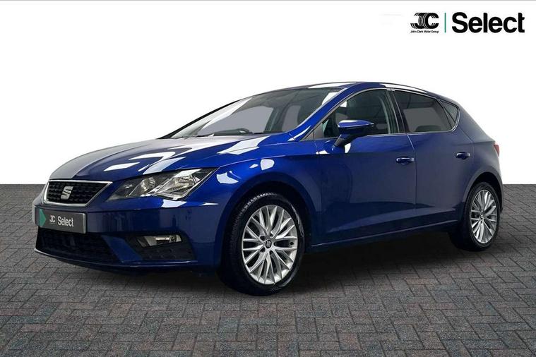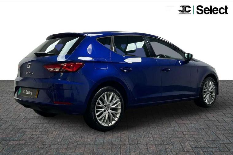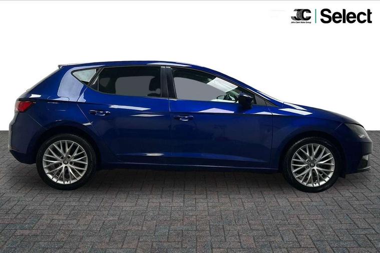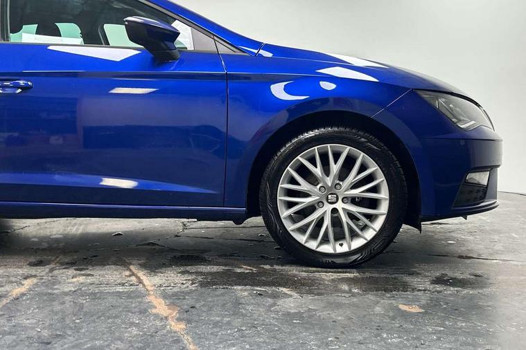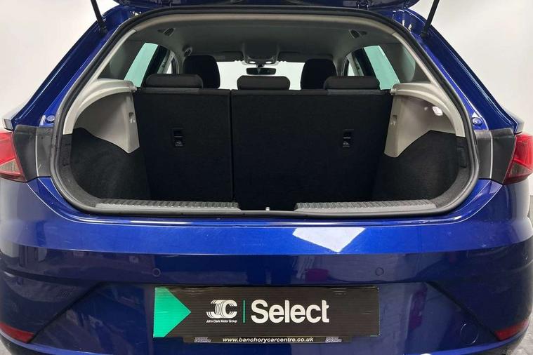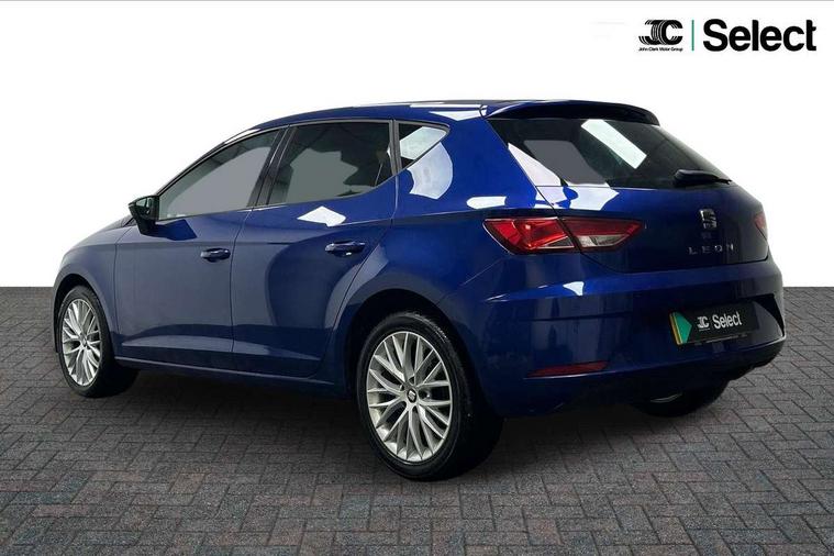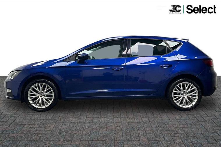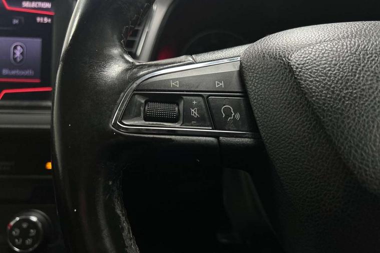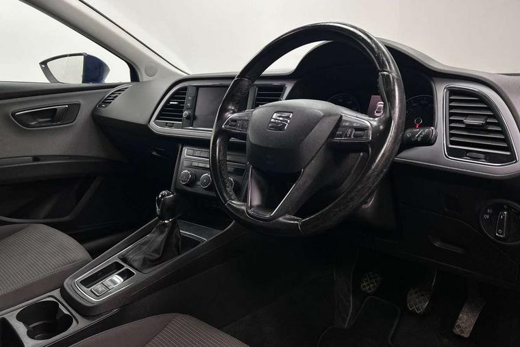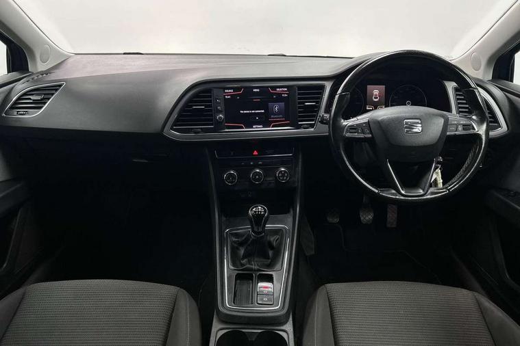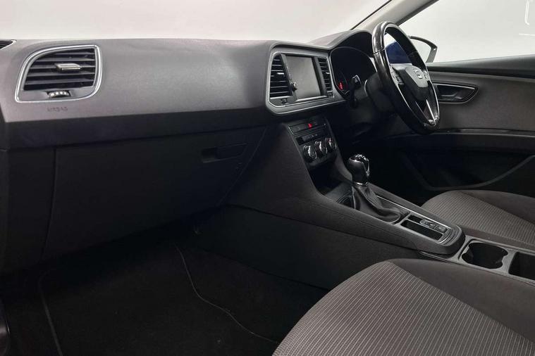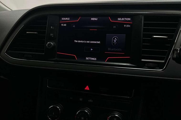 'Lights On' Reminder warning buzzer, 8" touch screen, Bluetooth Handsfree Phone Connection, Electro-mechanical PAS, Low fuel warning light, Outside temperature gauge, Rear parking sensors, Remote fuel flap release, SEAT logo boot release, Service interval indicator, Trip computer, Voice control system, Comfort suspension, XDS electronic differential lock, 2 USB ports, 2 USB sockets in rear, 2x SD card slot, Auxiliary input socket, Bluetooth audio streaming, DAB Digital radio, Radio/CD + MP3, Steering wheel mounted audio/phone controls, Black grille with chrome surround, Body colour door handles, Body coloured bumpers, Body coloured door mirrors, Dark tinted rear windows, Electric front/rear windows with one touch/auto up/down, Electric headlamp adjustment, Electrically adjustable door mirrors, Heated door mirrors, High gloss black finish B and C pillars, LED daytime running lights, LED indicators in door mirrors, Rear wash/wipe, 12v power point in centre console, 3 height adjustable rear headrests, 60/40 split folding rear seat, Active head restraints, Additional heating and ventilation outlet in rear of centre console, Boot net, Cloth upholstery, Driver seat height adjust, Driver seat lumbar adjustment, Dust/pollen filter, Front armrest with storage box, Front comfort seats, Front cupholders x 2, Front seat and rear pockets, Front/rear floor mats, Height/reach adjust steering wheel, Instrument lighting with brightness control, Leather handbrake, Leather steering wheel and gear knob, Luggage tie-down hooks, Passenger seat height adjuster, Rear top tether child seat ISOFIX attachment, Storage box under drivers seat, Seat navigation pack - Leon, 3 point seatbelts on all rear seats, ABS + traction control, Active pedestrian safety system, Child proof door locks, Collision mitigation braking system, Curtain airbags, Driver/Front Passenger airbags, Drivers knee airbag, Electronic parking brake with auto hold, ESP+EBA, Front assist including city emergency braking, Front seatbelt pretensioners, Front Seatbelt warning, Front side airbags, Hill hold control, Manual passenger airbag deactivation function, Tyre pressure monitoring system, 2 folding remote keys with window open/close function, Engine immobiliser, Locking wheel bolts, Remote central locking + deadlocks, Volumetric alarm with back up horn, Chrome interior trim, 17" Dynamic alloy wheels 30/3,