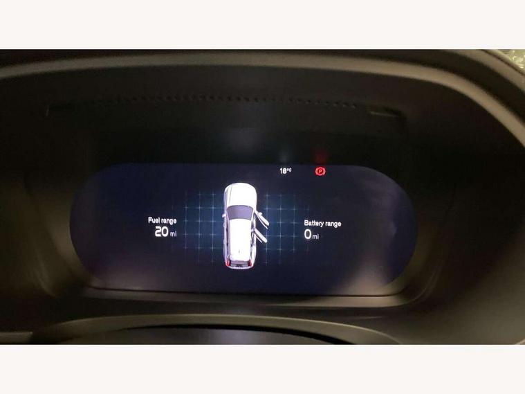 12.3" Progressive Driver Display, 360 degree surround view parking camera with side proximity sensors, 9" centre console touch screen, Adjustable steering wheel force, Apple carplay (wired), Bluetooth handsfree system, Drive mode settings, Driver alert control with lane keeping aid, Driver assistance (pilot assist and adaptive cruise control), Driver awareness - Blind spot system + steer assist, cross traffic alert with autobrake, rear collision warning and mitigation, E-call, Emergency assist, Front and rear park assist, Google automotive services - Enabled entertainment apps, navigation with google maps, voice recognition with google assistant, Handsfree bootlid opening/closing, Oncoming Lane Mitigation, Power operated tailgate/boot lid, Speed limiter, Speed sensitive steering, Volvo on call app, 3.7 kW monophase on board charger, 6m 3 phase 16amp Type 2 / mode 3 charge cable, 7m 10amp charge cable with 3 pin plug, 8 speed automatic transmission with start/stop + manual change functions, Dynamic chassis, Electric rear axle drive, Lithium-Ion Battery 18.8kWh, On board charger - 6.4 kW 2 phase/3.7kW single phase, Recharging port located in nearside front wing, DAB Radio (Digital Audio Broadcasting), Low speed exterior sound speaker, Premium Sound by Harman Kardon, dirac unison, dolby pro logic II surround sound, 13 speakers/600W output and fresh air subwoofer, Steering wheel remote infotainment controls, Adaptive brake lights with high level LED brake lights, Auto dimming interior + exterior mirrors, Automatic headlight levelling system, Automatic LED Headlights + Active high beam incorporating daytime running lights, Chrome window surround, Colour coordinated auto folding and heated power door mirrors, Front and rear power windows, Heated windscreen, High gloss black door mirrors and window surround, High gloss black front and rear bumper decoratives, High gloss black mesh front grille and surround, Home safe and approach lighting, Integrated roof rails in high gloss black, Puddle lights, Rain sensor with automatic windscreen wiper activation, Rear LED lights with sequential indicators, Rear side wing doors, Rear wiper, Roof antenna, Roof spoiler, Variable front intermittent wipers, Visible VIN plate, 2 zone electronic climate control with Clean zone air quality system + pollen filter, 3 seat bench in 2nd row, 3 Spoke tailored steering wheel with chrome trim, A-pillar parking ticket holder, Air purifier particulate matter (PM) 2.5 filter, Ambient door and instrument panel lighting, B Pillar ventilation, Boot lid/tailgate illumination, Bright metal luggage compartment threshold, Cargo divider with grocery bag holder, Centre console cupholder and storage, Charcoal carpets and floor mats, Driver and front passenger seat power height adjustment, Extended front seat cushions, Front 12V socket tunnel console and cargo area, Front and rear footwell and side step illumination, Front and rear reading lights and centre armrest Storage Illumination, Front headrests, Front/rear door pockets and front cupholder illumination, Glovebox compartment with illumination, Heated front seats, Heated steering wheel, Height/reach adjustable steering column, Illuminated luggage compartment, Illuminated recharge aluminium tread plates, Illuminated vanity mirrors + ticket holder, Integrated sun curtains in rear doors, ISOFIX attachment on outer rear seats, Leather upholstery, Load cover, Load protection net, Multi directional lumbar support, Power driver seat with memory for seat and exterior mirrors, Power folding rear headrests, Rear armrest with cupholder, Single front passenger seat, Underfloor cargo storage, Versatile split folding rear seat - 60/40, 3x3 point rear seatbelts, Active bonnet, City safety with steering support with Pedestrian + cyclist + front collision warning with full auto brake and rear auto brake, Drivers knee airbag, Dual stage driver/passenger airbags, Front seats SIPS airbags, Hill start assist, IC (Inflatable Curtains) - Full Length, Passenger airbag cut-off switch, Power child locks on rear doors, Power parking brake with auto hold function, Road sign information display, Run off Road Mitigation, Run off Road Protection, Seatbelt reminder and pretensioners for all seats, SIPS (Side Impact Protection System), Slippery road and hazard light alert, Stability and Traction Control with Spin control, Engine Drag Control and Corner Traction Control, Tyre pressure monitoring system, Vehicle deceleration control with Anti-lock Brake System, Electronic Brake Distribution and Emergency Brake Assist, Warning triangle and first aid kit, WHIPS whiplash protection system - front, 2x Key integrated remote control central locking + fuel flap with deadlocking system and auto open/close power windows, Anti-theft alarm including immobiliser/volume sensor + level sensor, Care key with user defined top speed, Keyless drive includes keyless entry and keyless start, Locking wheel nuts, Private locking for tailgate, Tailored Instrument Panel and Door Tops with Contrast Stitching, 19'' 8 spoke diamond cut black alloy wheels, Tyre sealant kit and compressor,