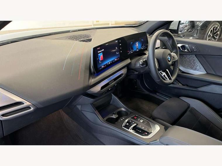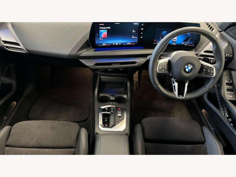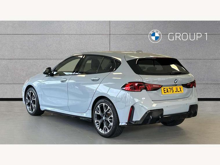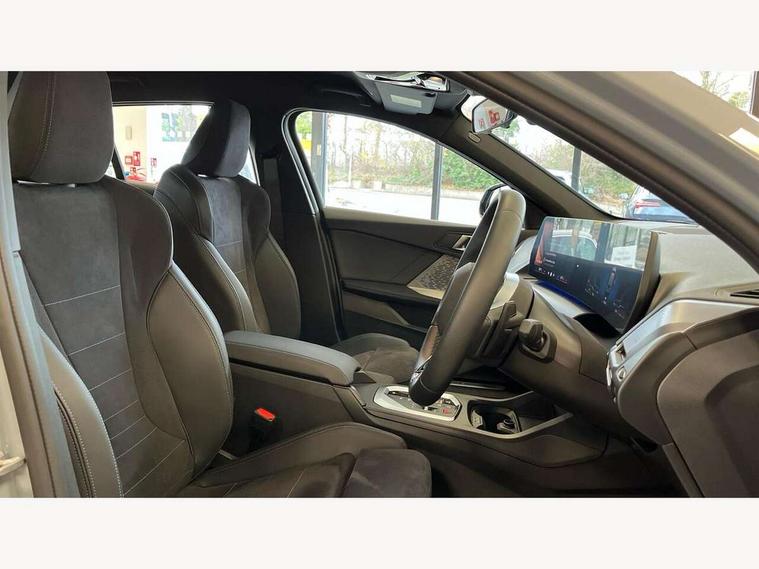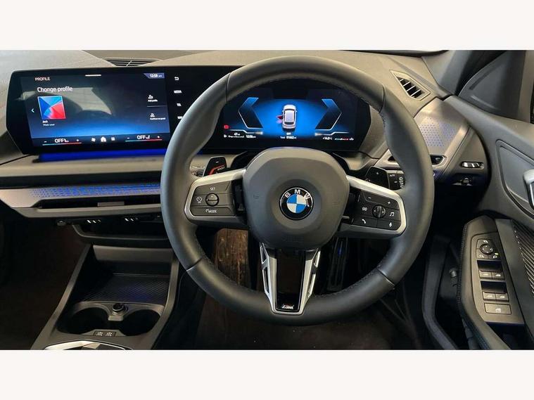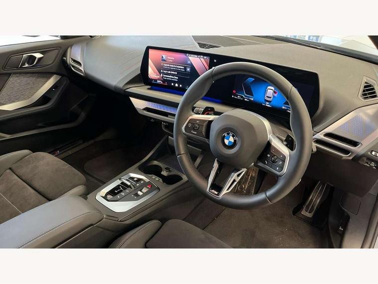 Active guard plus, Attentiveness assist, Bluetooth / WiFi interface for wireless connection of mobile terminal devices and audio streaming, BMW ConnectedDrive online services, BMW Live cockpit plus, BMW Teleservices, Check Control warning system for monitoring of lights and door/luggage compartment open warning, Eco pro mode, Electric power steering with Servotronic steering optimised at all speed ranges, Evasion assistant, Flat airvents in instrument panel with adjustable slats, Front and rear parking sensors, Front axle single joint with specific axle kinematics to minimise drive influences on steering + provide increased rigidity agile driving behaviour, Gearshift time display in manual mode, Integrated owners handbook, Left turn warning with brake function, My modes (Personal / Efficient / Sport), Oil sensor for level and grade, On board computer, Optimum shift indicator, Park assist including reversing assistant, lateral parking aid and reversing assist camera, Personal e-SIM, Personal Profile, Pull away assistant, Rigidly mounted rear subframe - Multi link construction with separate spring / damper configuration and excellent driving characteristics, Speed limit Info including no-overtaking indicator, Speed limiter, 49 litre fuel tank, Aluminium lightweight construction, Anti roll bar front and rear, Balancer shaft, Double VANOS twin scroll turbocharging system, Drive Performance Control, Electronic differential lock, Electronic selector lever, High precision injection, M Adaptive suspension, Petrol Particulate Filter, Steptronic transmission with double clutch, Twin tube gas filled shock absorbers with degressive characteristic curve, VALVETRONIC engine management, DAB Digital radio, Auto dimming rear view mirror, Automatic windscreen wipers and automatic headlight, Body colour door handles, Body colour roof trims, Chrome 'M' logo side designation, Chrome exhaust twin tailpipes round 90mm in left, Chrome kidney grille frame with Satin Aluminium struts, Direction indicator side lights in exterior mirrors, Electrically adjustable exterior mirror with mirror adjustment switch on drivers armrest and aspheric on driver side, convex on passenger side, Exterior M sport design elements, Fading support, Folding side mirrors with auto dimming/folding wing mirrors with auto dimming, Follow me home headlights, Front and rear bumper system with replaceable deformation elements, Front and rear electric windows with open and close fingertip control, anti trap facility and comfort closing, Front bumper panel with M specific design in vehicle colour with inserts in black high gloss, Front door sill finishers in black plastic with M designation in metallic look, Green tinted heat protection glazing, Heated rear window, High gloss black exterior mirrors, High gloss shadowline window frame, Recess cover mirror frames and B/C pillar embelisher trim, High level third brake light, Integrated front windscreen with washer jets, LED daytime running lights, LED eyebrow turn indicators, LED front fog lights, LED Headlights, Lightweight engineering, Matt black air guide grilles, Matt black wheel arch trim, Model badge on tailgate right, Nearside reverse light in rear light cluster, Preparation for high beam assistant, Rain sensor, Rear bumper panel with M-specific design in vehicle colour with inserts in black high gloss, Rear fog lights, Rear side wing doors, Rear window wiper, Shark fin antenna, Side sill covers with M specific design in body colour, Trailer stabilisation logic, Visible VIN plate, Welcome lighting, 12V power socket in front centre console with blanking plug, 3 rear seat head restraints, 3 seat bench in 2nd row, 3 spoke sports leather steering wheel with black leather and stitching, pearl chrome decorative finish, specific M Badge, Anthracite front and rear floor mats, Anthracite headlining, Black boot net with lashing eyes, Cargo function on 2nd seat row, Child seat ISOFIX attachment for two outer rear seats and front passenger seat with anchorage points, Conditioned based service, Driver and front passenger backrest net on rear, Driver and front passenger seat heating, Driver side folding compartment in instrument panel, Folding rear clothes hook, Footrest and pedals in black plastic, Four grab handles integrated in roof lining, Front and rear door pockets with bottle holders, Front and rear side armrest integrated into door trim, Front armrest with storage compartment, Gearshift paddles on steering wheel, Glove compartment, Height adjustable front head restraints, Luggage compartment for bag hooks on left and right, foldable luggage compartment liner and four lashing eyelets, Manual adjust steering wheel, Multi-function controls for steering wheel, Rear seat backrest with manual 60:40 split folding with 3 top tether clips integrated on rear of seat panels, Single front passenger seat, Storage compartment in centre console, Storage compartment in luggage compartment, Stowage of the parcel shelf in luggage compartment trim, Sun visors with vanity mirrors and insert tab, Two front centre console cupholders, Type C two USB ports in rear centre console, Upper retaining strap integrated into backrest rear panels, Connected pack professional - 1 Series, Interior lights pack - 1 Series, M Sport exterior styling aerodynamics pack - 1 Series, 2 tone horn, 3 point seatbelts on all seats, front pyrotechnic belt tensioners, stopper and belt force limiters, rear coded belt buckles, Airbags - Front driver/passenger, front and rear curtain head protection, front side, manual deactivation of front passenger airbag, Anti lock braking system (ABS) with brake assist, BMW emergency call, Brake drying, Braking readiness, Child proof locking system in rear door, Comfort modes, Cornering brake control, Crash sensor activating of airbags, Unlocking doors, hazard warning lights, interior light, safety battery terminal, Driver and front passenger seat belt security check, Dynamic stability control + (DSC+), Dynamic