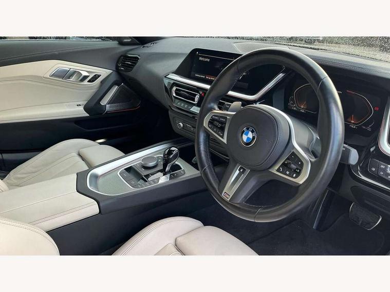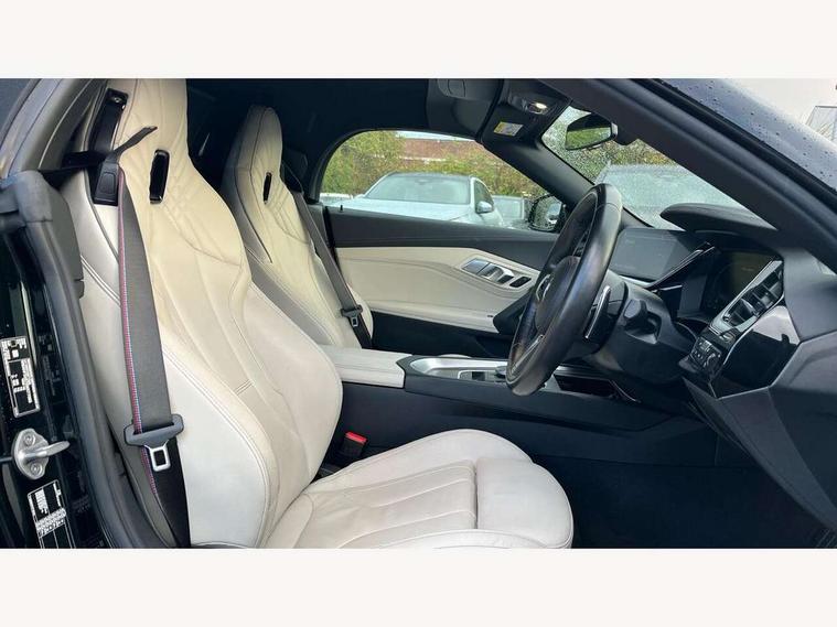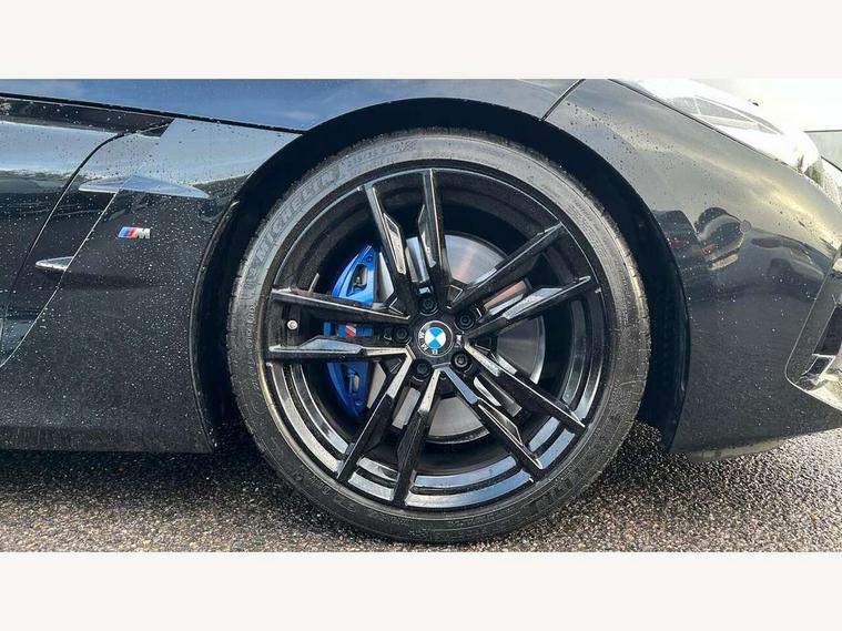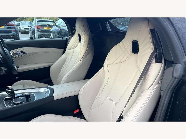Active guard plus incl speed limit assist, lane departure warning with steering impulse and front collision warning with brake intervention, Auto start-stop, BMW ConnectedDrive online services, BMW Live Cockpit Professional with 10.25" high resolution instrument and control display, BMW Teleservices, Condition based service, Electric power steering, Fuel gauge, IDrive, Instrument cluster, Language version English, Oil sensor for level and grade, warning by check control system, Oil temperature gauge, Optimum shift indicator, Pull away assistant, Run flat indicator, Smartphone integration, Speed limiter, Speedometer with mph readout, Tachometer, Variable sport steering, Adaptive M suspension, Double joint spring, Double VANOS, Drive performance control with ECO PRO comfort + sport mode, Eight speed steptronic sport transmission, with gearshift paddles, Fuel tank breather system, High precision injection, M Sport differential, 2x USB Type C ports in front centre console for charging and data transfer, 2x USB Type C ports in rear centre console for charging, DAB tuner, USB connection, 3rd brake light, Automatic headlight beam throw control with load dependent regulating reaction, dynamic compensation of braking dive and acceleration squat, Cerium grey exterior mirror housing, Door sill finishers with M designation, Door sill strips, Dynamic braking lights comprising activated hazard warning flashers and third brake lights, Electric heated rear window, Exhaust tailpipe - split left and right, Exterior mirrors - electrically folding with anti-dazzle, Fingertip control / anti-trap function on electric window, Follow me home headlight function, Front and rear bumper system with replaceable deformation elements, Green tinted heat protection glazing, Heated windscreen washer jets, High gloss black window recess finisher, High gloss shadow line, Interior rear view electrochromatic mirror with automatic anti dazzle function, Kidney grille in mesh design, LED daytime driving lights, LED Indicators, LED rear lights, Lightweight engineering, Model logo, Rain sensor, Rear boot, Tailgate release handle, Two stage brake force display, Visible VIN plate, Welcome lighting, Windscreen wipers with adjustable interval, 12V power socket in front storage compartment, Activation of interior lighting, Additional storage compartment - 4 lashing eyes, strap and storage net, Ambient lighting, Battery in luggage compartment, BMW ID, Child seat ISOFIX attachments for passenger seat, Cupholder, Driver and front passenger heated seats, Driver and front passenger lumbar support, Electrically adjustable front driver and passenger seats with memory, Front and rear armrests integrated in door trim + centre console includes storage compartment and rear centre armrest includes 2 cupholders, Front and rear velour floor mats, Front headrests, Height adjustable mechanically and infinitely variable steering column, Illuminated glovebox, Luggage compartment light, M sport leather steering wheel, M Sport seats for driver and passenger, Microfilter and active carbon filter, Multifunction steering wheel, Single front passenger seat, Sunvisors with vanity mirrors and ticket pocket, Two zone automatic air conditioning, Vernasca leather upholstery, Connected package professional - Z4, 3 point front seat belts, Airbags - Front driver and passenger, front and side impact protection, Anti lock braking system (ABS) with brake assist, Automatic Stability Control (ASC), BMW emergency call, Brake energy regeneration, Braking readiness, Cornering brake control (CBC), Crash sensor activating central locking release, hazard warning lights, fuel cut off, interior lighting, safety battery terminal clamp and airbags, Deactivation of fuel pump in the event of a crash, Dry braking, Dynamic brake control, Dynamic stability control + (DSC+), Dynamic Traction Control - DTC, Electromechanical parking brake with automatic drive away release and auto hold function, Front and rear brake discs with interior ventilation, Head airbags, M Sport brakes with blue calipers M designation in front, M sport seatbelt, Plastic fuel tank, Pyrotechnic seat belt tensioners, Roll over protection, Seat belt force limiter, Seat belt stopper, Seat occupancy protection, Two tone horn, Tyre pressure monitoring with three level warning strategy, Warning triangle, Centre lock switch, Closing system with central locking, Electronic vehicle immobiliser, Start/stop button with Comfort Go keyless engine start and auto Start/stop deactivation button, Thatcham cat 1 remote alarm, Sensatec dashboard, 19" Double spoke M light alloy wheels in bicolour cerium grey - style 800M, Reduced rolling resistance tyres, Tool kit, Tyre repair kit,