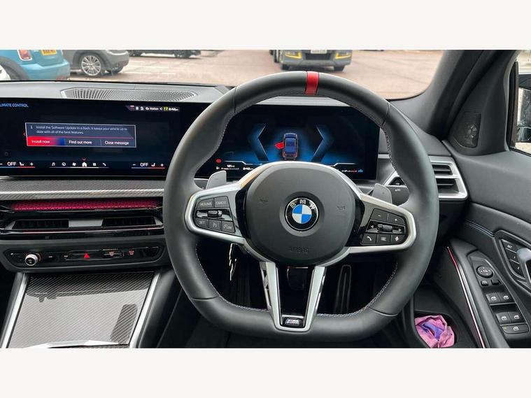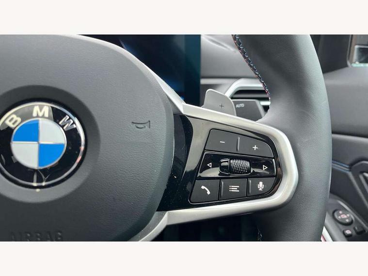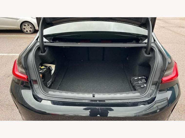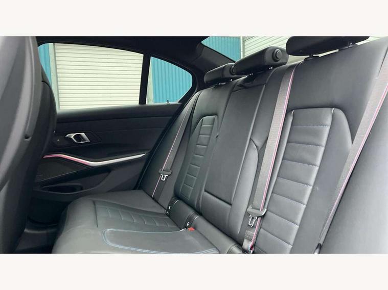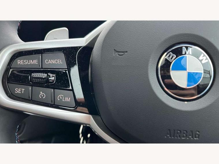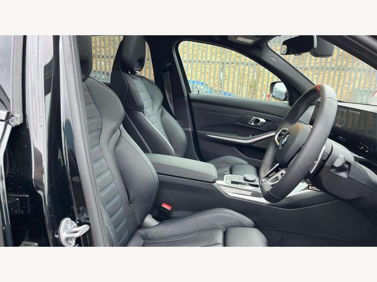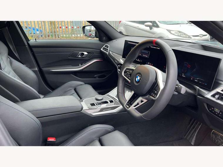 Active guard plus, Attentiveness assist, Automatic Start/stop button, Bluetooth Wi-Fi interface, BMW iDrive, BMW Teleservices, ConnectedDrive Services - last state call, Oil sensor for level and grade, Personal e-SIM, Shifting point display, Variable sport steering, 48V Mild hybrid technology, Double joint spring strut front axle, Fuel tank breather system, M Sport differential, Steptronic Sport automatic transmission with steering wheel mounted gearshift paddles launch control and xtreme drive lever control, DAB tuner, 3rd brake light, Auto dimming rear view mirror, Automatic headlight beam throw control with load dependent regulating reaction, dynamic compensation of braking dive and acceleration squat, Bi-LED Low and high beam headlights, BMW emblem, engine compartment lid and tailgate, Body colour roof fin, Door sill strips, Electric windows - front and rear, with open/close fingertip control, anti-trap facility and comfort closing, Fading support, Folding wing mirror with auto dimming, Follow me home headlight function, Front and rear bumper system with replaceable deformation elements, Front apron plastic in body colour, Fuel filler flap - right rear in body colour, Heat protection glazing on front windows and windscreen, Heated washer jets, LED daytime running lights, LED rear lights, LED turn indicator, Licence plate panel integrated into front bumper and tailgate, M high gloss shadow line exterior trim, Matt black B-pillar finsher, Matt black window recess cover, Model designation on right side of tailgate, One piece front bumper cover including towing eye cover in body colour, Rain sensor with automatic headlight activation, Rear boot, Rear side wing doors, Reversing lights, Side frame decorative moulding black matt, Sun and heat protection glass dark tinted on rear windows and windscreen, Trailer stabilisation logic, Welcome lights in interior and door handle area, 12V power socket in front storage compartment, 2 front cupholder in centre console with clamping elements and matt black inlay, 3 seat bench in 2nd row, 3 spoke M Sport multifunction flat bottom leather steering wheel, 3 zone automatic air conditioning, 40:20:40 split folding rear seat with loading system, Ambient inside door handle light, Ambient light design projected onto the left and right entering and exiting area, Ambient lighting front and rear with 9 selectable colours, Ambient storage compartment lighting in the centre console, Anthracite headlining, Armrest integrated in front and rear door trim + front centre console armrest, BMW ID, Contour lighting in instrument panel and door trim panel, Cruise control operation in steering wheel, Driving experience mode switch, Dynamic ambient lighting for welcome, goodbye, open doors, phone call, Electric memory seats, Folding rear centre armrest with 2 cupholders, Front ambient footwell lighting, Front and rear headrests, Front and rear velour floor mats, Front reading light, Heated front seats, Height adjustable mechanically and infinitely variable steering column, Illuminated armrest storage compartment, Illuminated glove compartment, Illuminated luggage compartment, Lashing eyelets in luggage compartment, Single front passenger seat, Sunvisors with illuminated vanity mirrors and ticket pocket, Toolkit located in luggage compartment, Connected pack professional - 3 Series Saloon/Touring, Interior and exterior mirror pack - 3 Series Touring/Saloon, M sport exterior styling pack - 3 Series Saloon/Touring, 3x3 point rear seatbelts, BMW emergency call, Child locks on rear doors, Crash sensor activating of airbags, Unlocking doors, hazard warning lights, interior light, safety battery terminal, Drive-off assistant, Driver and front passenger with seat occupancy detection for driver's and passenger side, Driver and passenger side airbags, body protection at side and airbags deploy from seat backrests, Dry braking, Dynamic brake control, Dynamic stability control + (DSC+) - Anti-lock Braking System (ABS) with brake assist and cornering brake control + Automatic Stability Control (ASC), Dynamic Traction Control - DTC, Electric parking brake including automatic hold function and automatic release of the parking brake when driving off, Electronic differential lock control (EDLC), Front airbag deactivation, Front airbags for driver and front passenger, Head airbags in 1st and 2nd row, head protection at side, curtain airbags open from headliner above 1st and 2nd row, Plastic fuel tank, Side impact protection, Tyre pressure sensors, Ventilated front and rear disc brakes, Warning triangle and first aid kit, Alarm system, Centre lock switch, Closing system with central locking, Electronic vehicle immobiliser, Locking wheel bolts, Tyre repair kit,