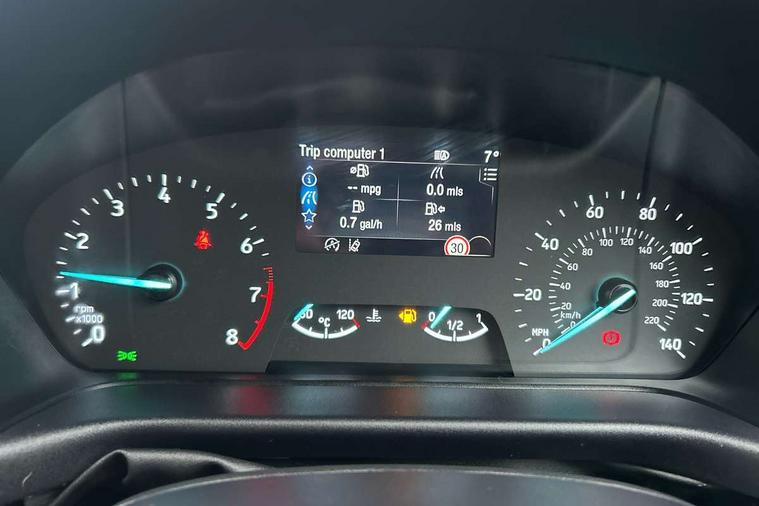 4.2" Colour TFT Ice blue illumination analogue cluster, Driver alert system, Electric power steering, Ford easy fuel, Lane keep assist, Lane keeping aid, Rear parking distance sensors, Selectable drive modes (Normal, Sport, Track), Trip computer, Standard suspension, 3rd brake light, Auto high beam, Automatic headlights, Body colour bumpers, Body coloured electrically operated with side indicators, Electric front windows/one touch facility, Electric rear windows, High gloss chrome surround with satin grille insert, Quickclear heated windscreen, Rain sensing wipers and auto dimming rear view mirror, Rear privacy glass, Rear side wing doors, Rear wiper, 3 rear headrests, 3 seat bench in 2nd row, Adjustable head restraints, Centre console with opening armrest, 2x cupholders, 12v and USB, Cloth upholstery with metal grey stitching, Leather gear knob, Manual 2 way passenger seat adjust, Manual 4-way driver seat adjust, Manual air conditioning, Premium floor mats, Sensico wrapped steering wheel, Single front passenger seat, 3 point seatbelts on all rear seats, Electronic stability control with hill start assist, Front and rear seat belt warning, Manual child lock in rear doors, Tyre pressure monitoring system, Keyless start with 'Ford Power' starter button, MyKey system, Remote central locking, Thatcham alarm with power door dead locks,