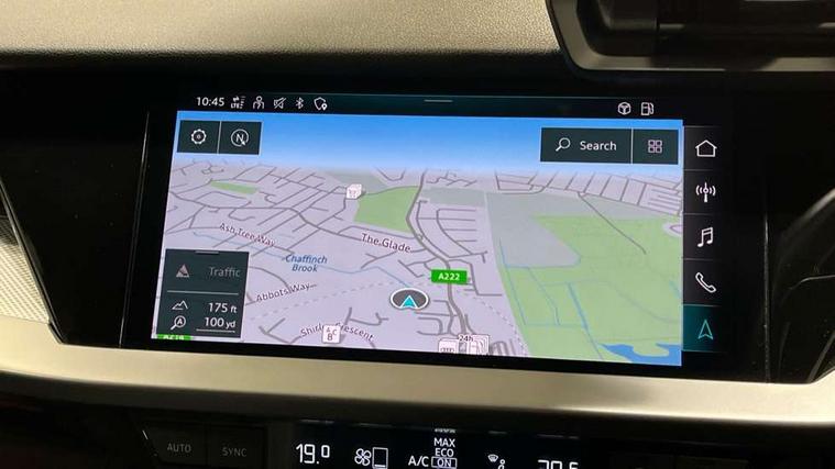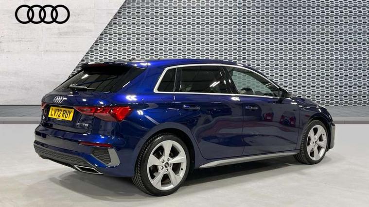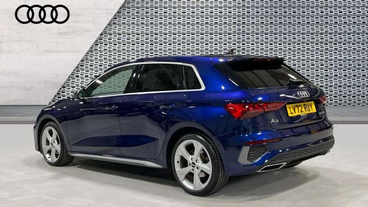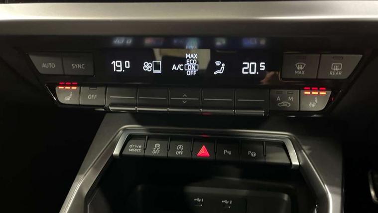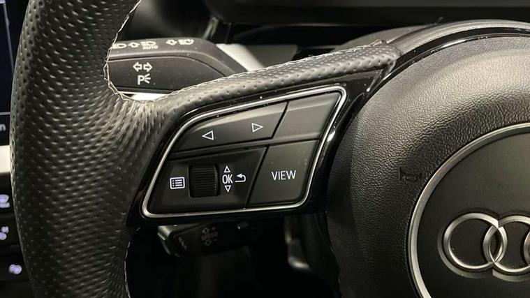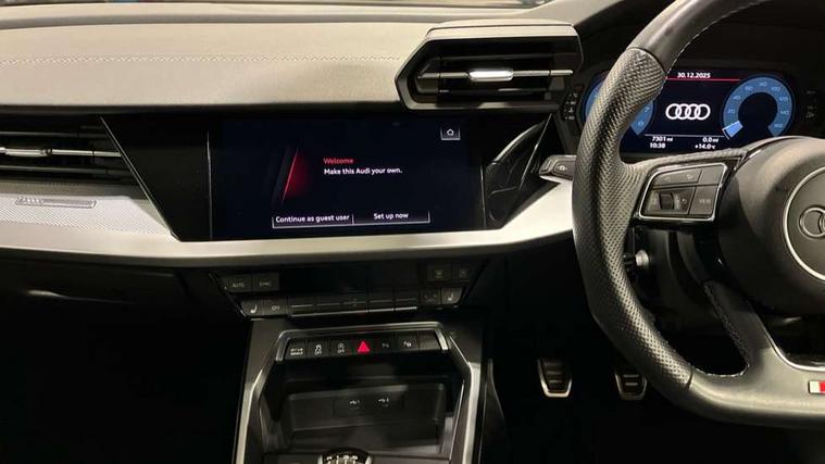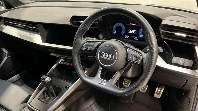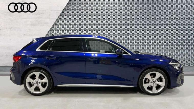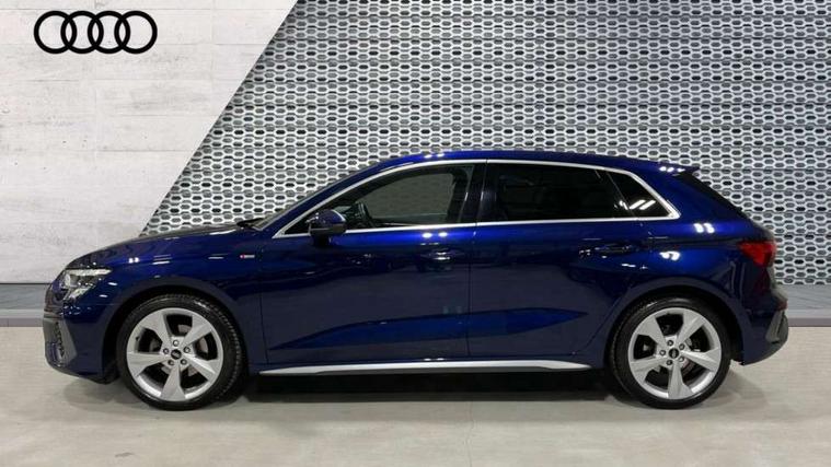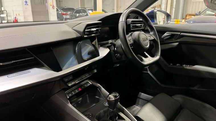 Audi drive select (Auto, Comfort, Dynamic and Individual), Audi smartphone interface, Audi Virtual Cockpit - 10.25" digital and colour instrument cluster, Automatic start/stop system with recuperation, Bluetooth interface, Collision avoidance assistant, Cruise control, e-Call (emergency call), Electromechanical power speed sensitive steering, Lane departure warning system, MMI Navigation Plus with high resolution 10.1" colour touch screen display, Rear parking sensors, Service indicator, Trip computer, Voice control system with natural language interaction, 2xUSB-C connection with data and charging functions, 6 passive loudspeakers, DAB Digital radio, 3rd brake light, Acoustic glass windscreen, Aluminium window trim, Auto dimming frameless rear view mirror, Electrically adjustable/heated/folding/auto dimming door mirrors with integrated LED indications + kerb view function for passenger side, Front electric windows, Illuminated aluminium inserts front door sills with S logo, LED daytime running lights, LED headlights with LED rear lights and dynamic rear indicators, Light and rain sensors, Privacy glass - dark tinted rear window, rear door and side windows, Rear electric windows, Rear side air outlets in grained matt black, Rear side wing doors, Rear wiper, S line bumpers, S roof spoiler, 12V socket and storage compartment in front centre console, 3 seat bench in 2nd row, 40/20/40 split folding rear seat bench with cupholder, Black cloth headlining, Dual zone electronic climate control, Front and rear centre armrest in leather, Front and rear headrests, Front/rear floor mats, Height and reach adjustable steering wheel, Illuminated vanity mirror, Interior lighting - glove compartment light and right hand side, Luggage compartment floor covering, Manual boot compartment lid, Manually adjustable front seats, Seat side bolsters, Single front passenger seat, Stainless steel pedals and front footrest in black, Twin leather upholstery with front sports seats S embossed logo, Aluminium interior elements pack - A3 Sportback, LED interior lighting pack - A3 Sportback, S line styling pack - A3 Sportback, 3x3 point rear seat belts, Audi pre sense front, Driver and front passenger airbag with passenger airbag deactivation, Electronic Stabilisation Control (ESC) including ABS, ASR and EDL, First aid kit with warning triangle and 2 safety vests, Front side airbags with head airbags and interaction airbag, Pre-sense front with pedestrian and cyclist detection, Seatbelt monitoring, Tyre pressure loss indicator, Anti theft alarm, Anti-theft wheel bolts, Electronically operated child lock, Immobiliser, Remote control central locking, Accent surfaces in the dashboard and centre console in platinum grey silk effect paint finish, Dark spectrum aluminium inlays,