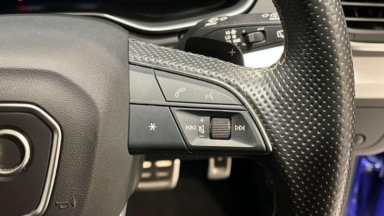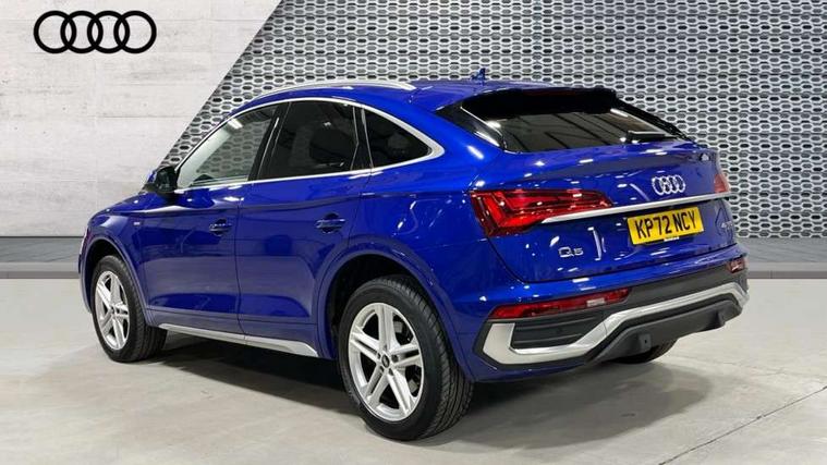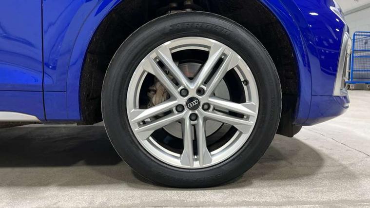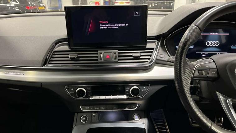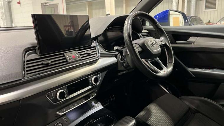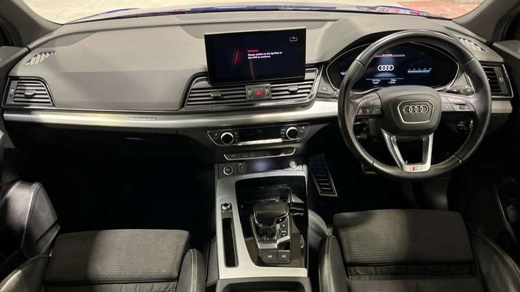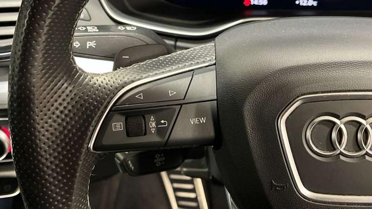 Audi connect safety and service (e-call), Audi connect with Amazon Alexa Integration, Audi drive select, Audi virtual cockpit plus with 12.3" screen and three different layout designs, Audi wireless smartphone interface, Automatic start-stop system with coasting functionality and efficiency programme, Bluetooth interface, Electro - mechanical power assisted steering, MMI navigation plus with 10.1" touch screen, Power tailgate, Reversing camera, Service interval indicator, Voice control system with Audi hotword activation "Hey Audi", Quattro on demand, S line sports suspension, DAB Digital radio, Acoustic windscreen, Aluminium roof rails, Audi matrix LED headlights with dynamic front and rear indicators, Auto dimming door mirrors, Auto dimming rear view mirror, Automatic headlight adjustment, Automatic headlights and windscreen wipers, Body colour door mirrors, Body colour rear diffuser with matt aluminium silver surrounds, Body colour underbody protection, Chrome plated exhaust trims, Daytime running lights, Door sills in Selenite silver, Electric adjustable/heated/folding door mirrors, Front air inlet surrounds in aluminium, Front and rear electric windows, Front radiator grille in honeycomb design, Headlight washers, High level LED brake light, Lower bumpers painted in contrast Manhattan grey, Rear chrome trim strip below lights, Rear privacy glass and rear side windows, Rear side wing doors, Rear wiper, Roof bars, S Line badges on the front wings, S Line front and rear bumpers, S Line rear spoiler, S Line side skirts, 2 x USB charging port with aux input socket, 3 rear headrests, 40:20:40 split folding 3 rear bench seat in 2nd row with rear centre armrest, Black cloth headlining, Comfort front centre armrest, Contrast stitching on seats, steering wheel and gear lever gaiter, Deluxe 3 zone electronic climate control, Front head restraints, Front/rear floor mats, Gear lever in black leather, Heated front seats, Height/reach adjustable steering column, Illuminated door sill trims with S logo, ISOFIX child seat mounting and top tether, Manual seat adjustment with 4-way electric lumbar support, Removable luggage compartment floor, Single front passenger seat, Stainless steel pedals, Sunvisors with vanity mirrors, Trunk roller cover, High gloss pack - Q5, LED interior light pack - Q5, 3 point seatbelts on all seats, 6 airbags - Driver, front passenger, curtain and side airbags, Electrically operated child locks on rear doors, Electromechanical parking brake, Electronic stabilisation control including ABS, ASR and EDL, Front passenger airbag deactivation, Hill descent control, Hill hold assist, Multi collision brake assist, Pop-up bonnet for pedestrian protection, Pre sense city, Seat belt force limiter, Seatbelt monitoring, Tyre pressure warning, Warning triangle and first aid kit, Anti theft alarm, Anti-theft wheel bolts, Keyless Go access/ignition system, Remote central locking, Matt brushed aluminium inlays,