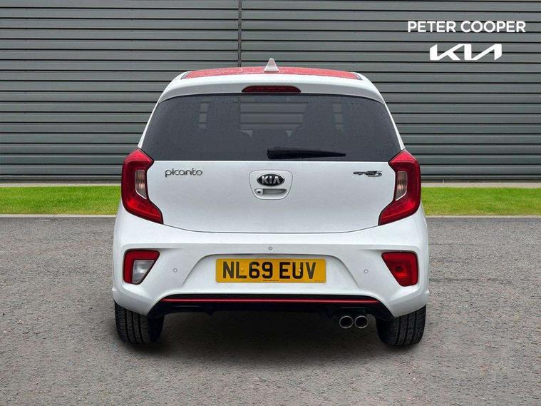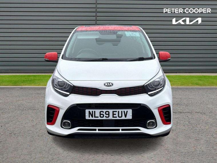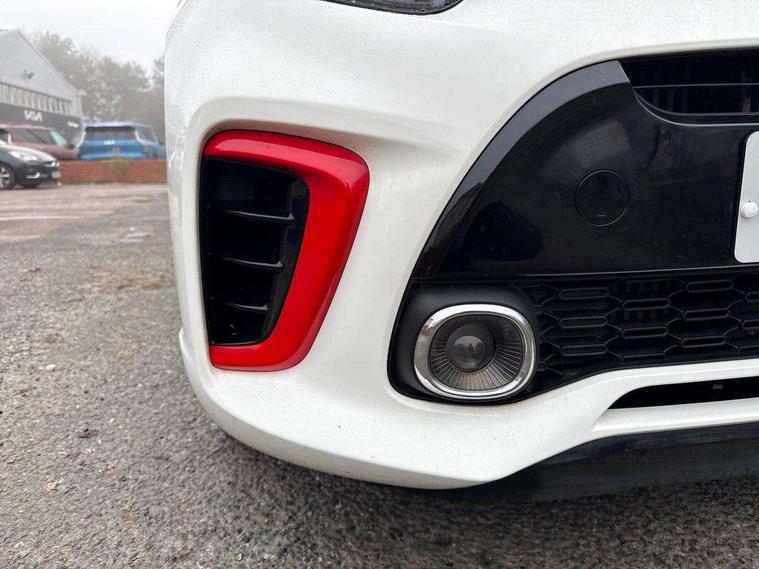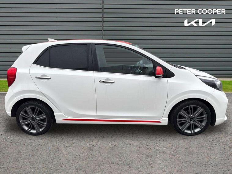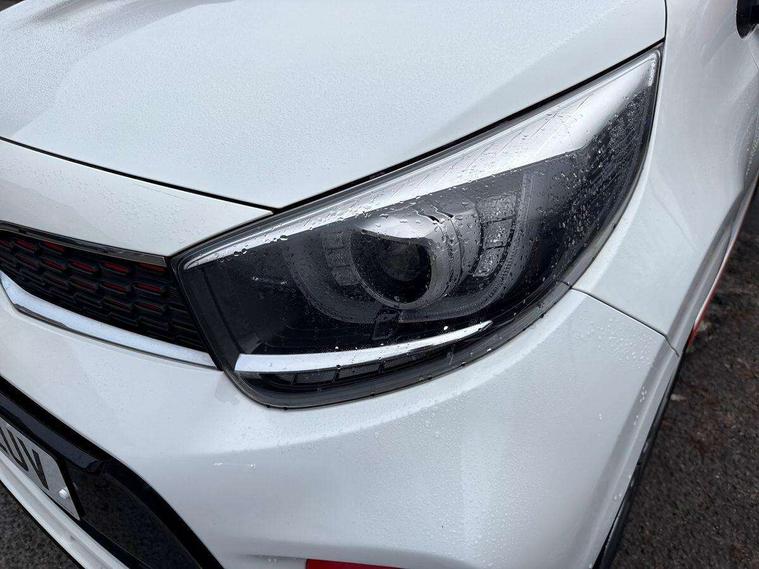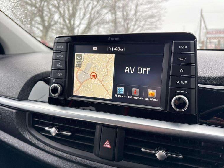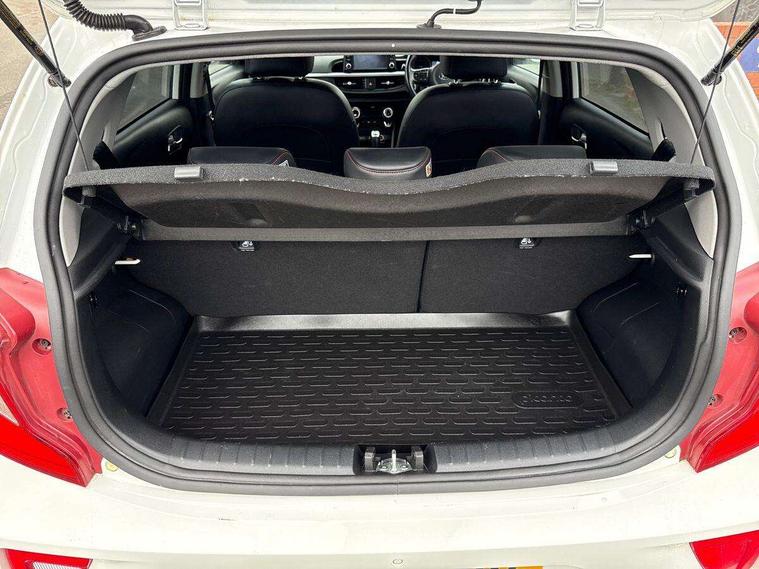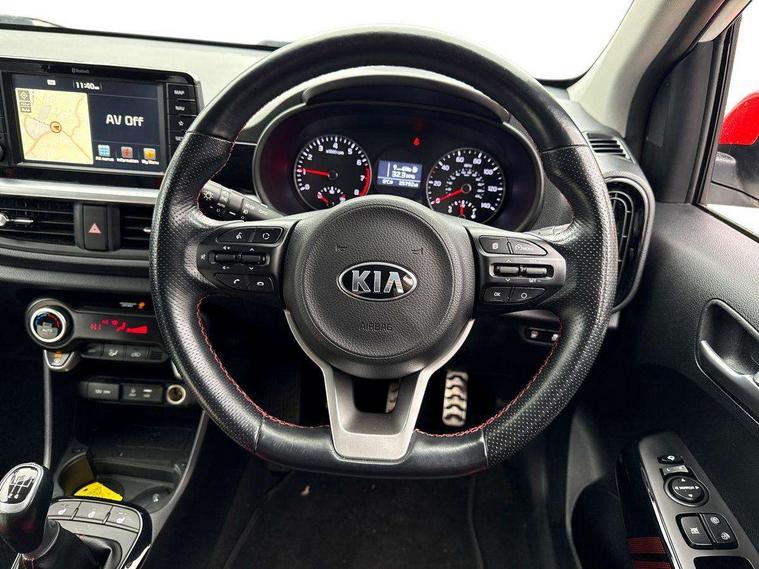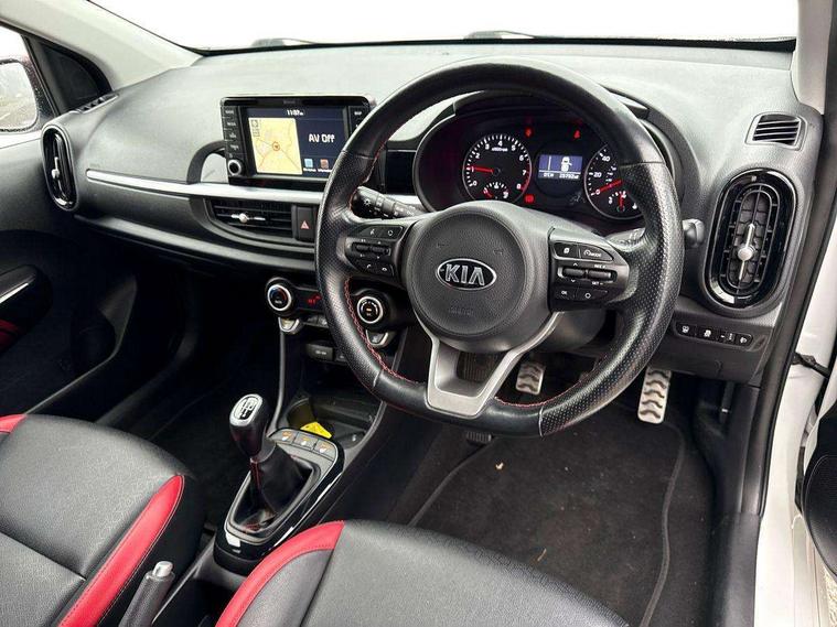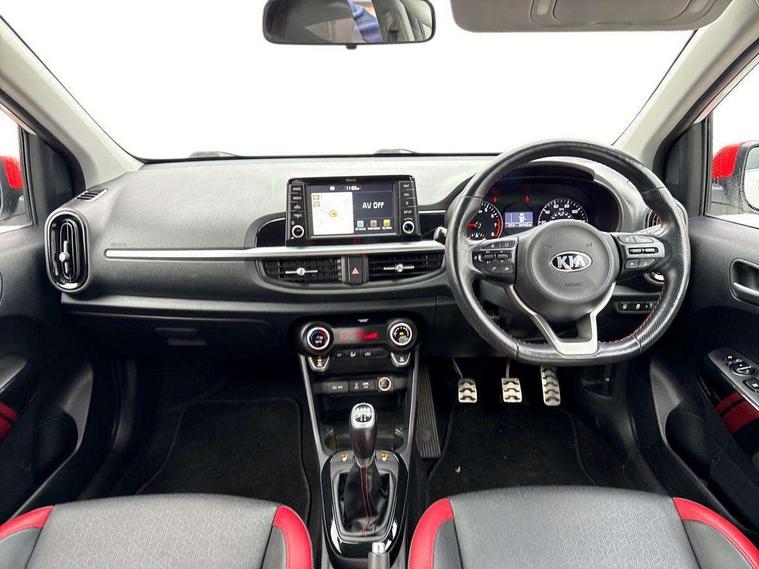 7" Touch screen satellite naviagtion with RDS and DAB, Apple car play/Android Auto with voice control, Cruise control + speed limiter, Digital clock, Emergency stop signalling system, External temperature gauge, Kia connected services, Motor driven power steering, Rear parking sensors, Reversing camera system with dynamic guidelines (Integrated into centre fascia screen), Tachometer, Trip computer, Wireless Smartphone charger, 6 speaker audio system, Bluetooth with music streaming, Steering wheel mounted controls, USB and auxiliary socket, Automatic headlights, Bi-function projection headlights, Black radiator grille with chrome surround, Body colour bumpers, Body colour side sill mouldings, Body coloured mirrors and chrome exterior handles, Chrome side window trim, Day/night rear view mirror, Electric adjustable/heated/folding door mirrors with LED indicators lights, Electric sunroof, Front and rear electric windows with drivers's auto up/down function, Front fog lights, Headlamp levelling, Heated rear window, High mount brake light, LED daytime running lights, LED rear lights, Privacy glass - Rear windows and tailgate, Rear fog lights, Rear wash/wipe, Sports front and rear bumpers with twin exhaust, Tinted glass, Variable front intermittent wipers, Visible VIN plate, Welcome and follow-me home light functionality, 12V power point front, 3 x passenger assist grips, 60/40 split/folding 2nd row of seats, All round height adjustable headrests, Aluminium pedals, Automatic air conditioning, Black and red accents front door armrest, Centre Console with Storage Box and Sliding Armrest, Coat hooks, Cupholders in centre console, Driver and front passenger sunvisors with driver's side illuminated vanity mirrors, Driver seat height adjust, Dual Height Luggage Area Floor, Faux leather upholstery, Front cabin lights, Glovebox, Heated front seats, Heated steering wheel, High gloss lower centre fascia trim, door armrest and air vents, ISOFIX Child seat top tethers and anchor fixings, Leather trimmed steering wheel and gearshift, Luggage area light, Luggage area parcel shelf, Luggage net with hooks, Passenger front seatback pockets, Satin chrome interior door handles, Slide/reclining front seats, Tilt adjustable steering wheel, Advanced Driver Assistance Pack - Picanto, 3x3 point rear seatbelts, ABS/EBD, Automatic unlocking of doors in case of impact, Dual front airbags, ESC + BAS + VSM + HAC, Front seatbelt height adjusters, Front seatbelt pretensioners + load limiters, Passenger airbag deactivate switch, Rear child proof door locks, Seatbelt warning, Side impact protection, Traction control, Twin curtain airbags, Twin front side airbags, Tyre pressure monitoring system, Anti theft alarm, Engine immobiliser, Locking wheel nuts, Smart key with engine start/stop button, High gloss black centre fascia, 16" alloy wheels, Tyre mobility kit,
