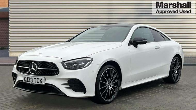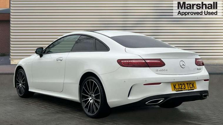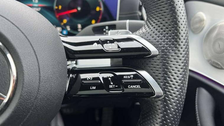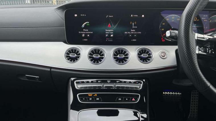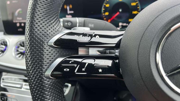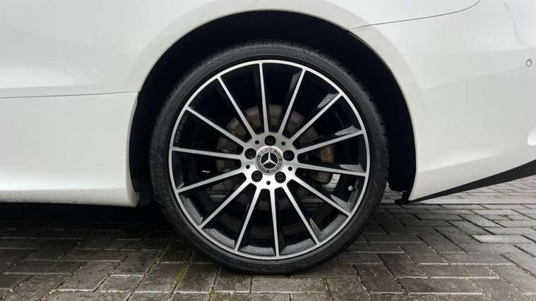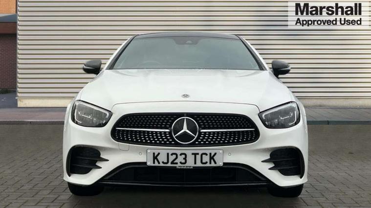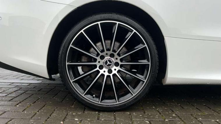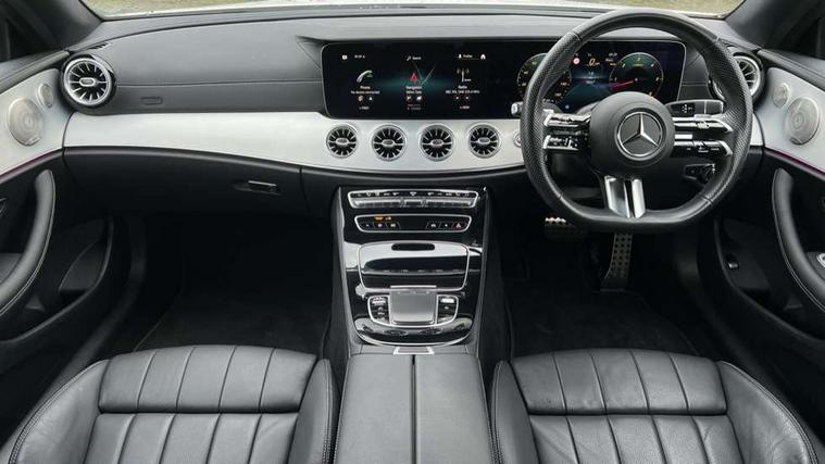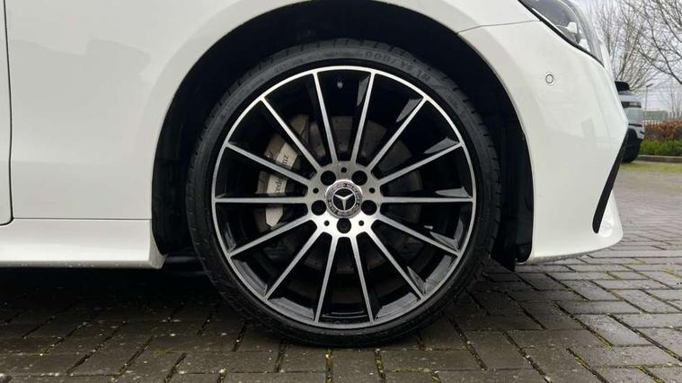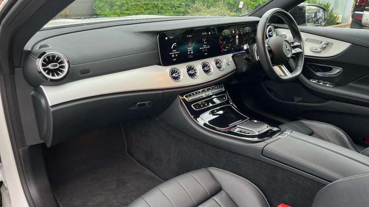 360 degree parking camera, Active parking assist including front and rear parking sensors, Analogue clock, Attention assist, Brake wear warning display, Cockpit display 12.3" widescreen digital instrument cluster, Collision prevention assist plus, Direct steer speed sensitive steering, DYNAMIC SELECT with a choice of driving modes (ECO, Comfort, Sport, Sport+ and Individual), E-call, ECO start/stop function, High resolution 12.3" multimedia colour display, MBUX voice control activated by keywords "Hey Mercedes", Mercedes connect me, Outside temperature display, Pre-installation for Vehicle Monitoring, Pre-installation for Vehicle Setup, Remote boot release, Service indicator (ASSYST), Status display for rear seat belts in instrument cluster, Touchpad without controller, Traffic sign assist, Trip computer in multifunction display showing current fuel consumption, Wireless charging, 25 litre AdBlue tank, 66 litre fuel tank, 9G TRONIC 9 speed automatic transmission, Agility control sports suspension with selective damping system, Diesel particulate filter, Incorrect fuelling protection, 2 USB ports in centre console, 2 USB ports in the rear, Burmester surround sound system with 13 speakers and a 9 channel amplifier with total output of 590 watts, MBUX multimedia system with DAB digital radio and touchpad including satellite navigation, Smartphone integration via Android Auto/Apple CarPlay, Media Interface, USB and Bluetooth interface and touchpad with control wheel, Adaptive brake lights, Adaptive high beam assist, AMG bodystyling front and rear aprons in polished aluminium, Body colour door handles, Body coloured bumpers, Electric windows with one touch opening/closing and obstruction sensors, Exterior mirrors heated and electronically adjustable, High gloss black exterior mirror housing, High gloss black front apron, High gloss black rear bumper with chrome trim, Illuminated front door sill panels with Mercedes-Benz lettering, LED 3rd brake light, LED daytime running lights, LED high performance headlamps, Magic Vision Control heated windscreen wiper system, Panoramic electric glass sunroof, Pre-installation for roof rail systems, Privacy glass Includes rear side windows and rear windscreen, Radiator grille with integral star and 2 louvres in matt iridium silver with chrome trim, Radio aerial integrated into rear window, Rain sensing windscreen wipers, Rear boot, Rear LED lights, Top surround of side windows in polished aluminium, Visible twin pipe exhaust system integrated into bumper, Waistline strips in high gloss black, 2 seat bench in 2nd row, 3-spoke flat bottom multifunction AMG steering wheel with Touch Control buttons, trimmed in black nappa leather, 40:20:40 split folding rear seats, Artico man-made leather upper dashboard and beltlines with contrast stitching, Automatic child seat recognition sensor, Belt feeder driver and front passenger seat belt automatically positioned within easier reach, Black door pins, Black roof lining, Central stowage compartment with 12 V socket in centre console, Central stowage compartment with USB socket for use with Android Auto and Apple CarPlay, Centre armrest and door handle illumination, Centre console in grey open-pore ash wood, Floor mats with AMG lettering, Front and rear door pockets, Front centre armrest with stowage compartment, Front footwell lights, Glasses compartment in overhead control panel, Glove compartment - lockable, air conditioned and illuminated, Head restraints for driver and front passenger (four-way adjustability) and in rear (two-way), Heated front seats with partial electric adjustment and electro-pneumatic four-way lumbar support, Interior lighting - 64 colour Ambient lighting, Interior rear light/integral reading lights, Isofix rear child seat fastenings, Multi contour front sports seats, Seat occupancy sensor for front passenger seat, Single front passenger seat, Sports pedals in brushed stainless steel with black rubber studs, Steering column electrically adjustable for height and reach, Steering wheel gearshift paddles, Sunvisors with illuminated vanity mirrors, THERMOTRONIC automatic climate control system with 3 climate zones, Memory pack - E Class, Mirror pack - E Class, Night package - E Class, Stowage pack - E Class, 2 x 3-point rear seatbelts, Active bonnet pedestrian safety measure which detects an impact and raises bonnet, Adaptive brake system with HOLD function and brake drying in the wet, Adaptive driver and front passenger airbags, Airbags - sidebag for driver and front passenger with combined thorax/pelvis bag, Anti-lock braking system (ABS), Drivers knee airbag, Electric parking brake, Electronic Stability Programme, Front and rear window airbags, Head airbags, Hill hold function, Perforated front brake discs with "Mercedes-Benz" lettering, Seatbelt warning, Tyre pressure monitoring system, Warning triangle and first aid kit, Alarm system/interior protection/immobiliser, Central locking with interior switch, automatic locking and crash sensor with emergency opening function, Chrome surround electric key, Keyless Go entry and starting function, Open-pore grey ash wood trim, 20" AMG multi spoke design alloy wheels painted in high gloss black with high sheen finish, Run flat tyres, Summer tyres,