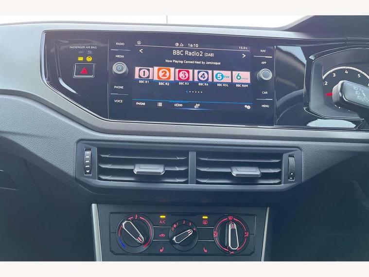 Digital clock, Driver alert system, Emergency call service, Multifunction computer plus, Power assisted speed sensitive steering, Speedo and rev counter, electronic odometer, trip, service interval display and fuel gauge, Start/stop system, Volkswagen connect, Warning buzzer and light for front seatbelts unfastened, Wireless app connect, Battery regeneration during braking, Galvanished body, DAB digital audio broadcast, Diversity antenna for FM reception, Black grille with chrome surround, Black radiator grille with chrome louvres, Body colour bumpers, Body colour door handles, Body colour rear spoiler, Body coloured side sills, Electric front windows, Front windscreen washers and wipers with 4 speed intermittent delay, Heated rear window with auto timer, High level 3rd brake light, Internally adjustable door mirrors, LED daytime running lights, LED rear number plate lights, Rear electric windows, Rear windscreen washer and wiper with interval delay, reverse activated, 2 bag hooks in luggage compartment, 2 front and 2 rear reading lights, 2 front cupholders and 12 V socket with cover, 3 rear head restraints, 4 grab handles, 60/40 split folding rear seat, Centre console storage with open storage compartment, Chrome interior door handles, Driver and front passenger seat height adjustment, Driver and front passenger sunvisors with illuminated vanity mirrors, Dust/pollen filter, Folding rear seat backrest, Front head restraints, Front seat backrest storage pockets, Gear lever gaiter in black trim surround, Glovebox, Handbrake grip button in chrome effect, Height/reach adjustable steering column, Instrument lighting, adjustable panel illumination, Interior light with delay, Isofix Preparation 2 Rear child seats, Leather gear knob and handbrake grip, Leather multifunction steering wheel, Luggage compartment cover, removable, Luggage compartment lighting, Luggage compartment with variable load floor, Storage compartment in front doors, Storage compartment in rear doors, Storage compartment under front seats, Sunglasses holder, 3 point height adj front seatbelts + pretensioners, 3x3 point rear seatbelts, ABS, Automatic post collision braking, Driver/front passenger airbag, Drivers and front passengers safety optimised head restraints, ESP with EDL + ASR, Front and rear passenger curtain airbags, Front disc brakes and rear drum brakes, Front passenger airbag deactivation, Front seat side impact airbags, HBA (Hydraulic Brake Assist), Hill hold control, Single tone horn, Tyre pressure monitoring system, Alarm with interior protection and deactivation via infotainment system, Electronic engine immobiliser, Remote central locking with 2 remote folding keys, Air vents in High gloss black, Limestone grey decorative inserts,