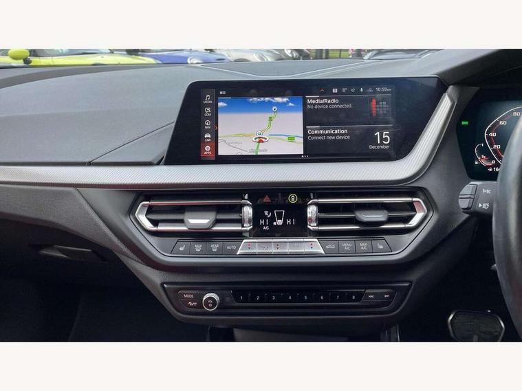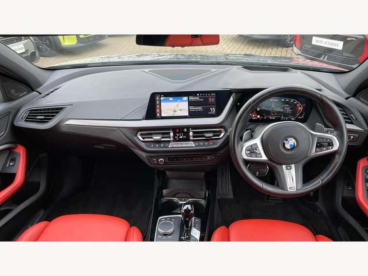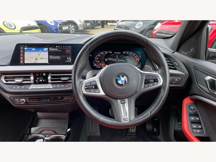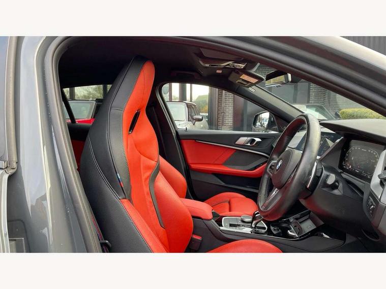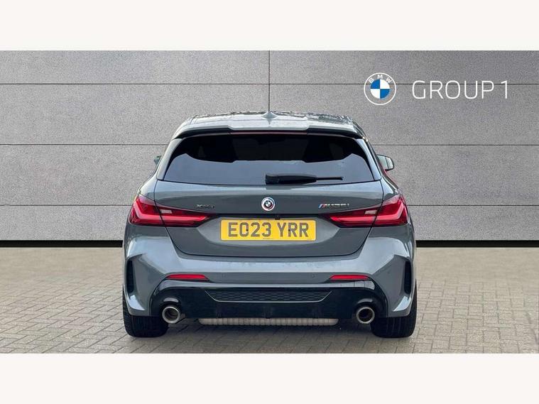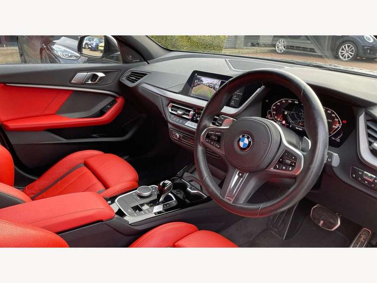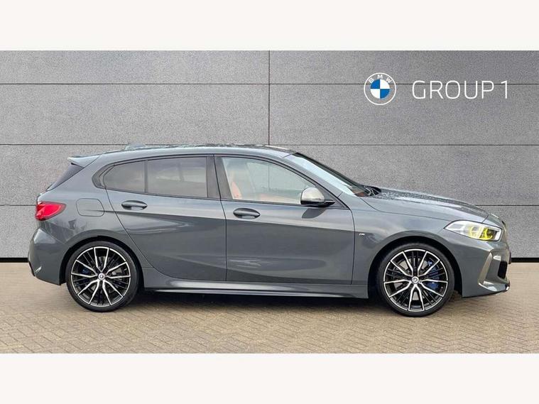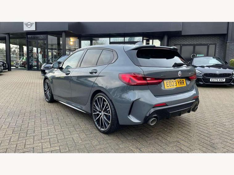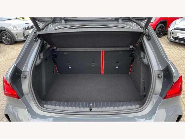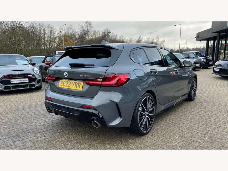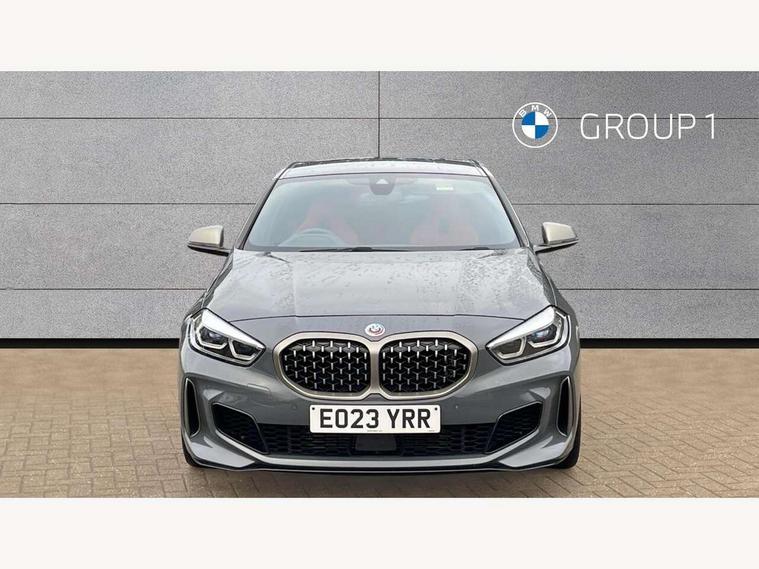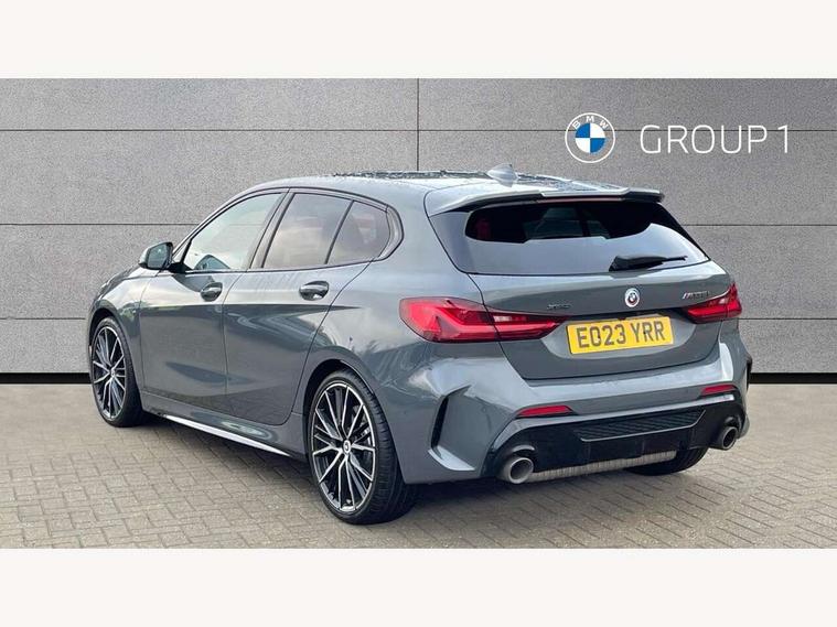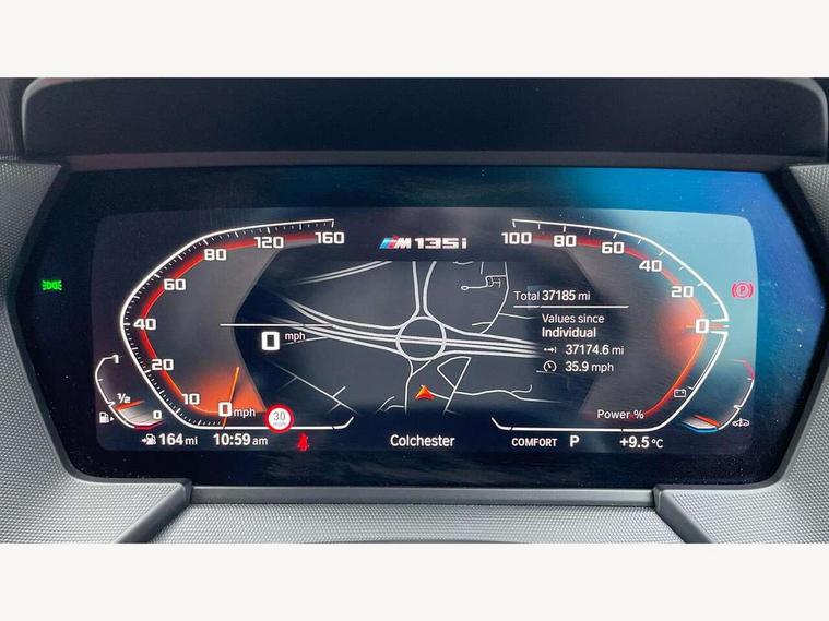 Active guard plus, Attentiveness assist, BMW ConnectedDrive online services, BMW Teleservices, Check Control warning system for monitoring of lights and door/luggage compartment open warning, Cruise control with speed limiter, Eco pro mode, Electric power steering, Electro hydraulically controlled multi-plate clutch transfers drive to rear axle and with power take-off device located on the front differential., Energy efficient operating strategy, Front axle single joint with specific axle kinematics to minimise drive influences on steering + provide increased rigidity agile driving behaviour, Gearshift time display in manual mode, Integrated owners handbook, Lane departure warning system, M Sports steering with M135i xDrive specific settings, Oil sensor for level and grade, On board computer, Optimum shift indicator, Personal Profile, Pull away assistant, Rigidly mounted rear subframe - Multi link construction with separate spring / damper configuration and excellent driving characteristics, Speed limit Info including no-overtaking indicator, Sporty fast gear shifting in sport mode, Aluminium lightweight construction, Anti roll bar front and rear, Balancer shaft, Double VANOS, Drive Performance Control, Eight speed sport automatic transmission with gearshift paddle switches, Electronic differential lock, Electronic selector lever, Engine cover with M performance designation, High precision injection, Larger fuel tank capacity (50 litres), Launch control, M135i specific heavily de-throttled engine intake air guide, M135i specific high-performance cooling package, M135i specific larger turbocharger with integrated divert-air valve, Petrol Particulate Filter, Twin tube gas filled shock absorbers with degressive characteristic curve, VALVETRONIC engine management, Variable, stepless and infinitely adjustable distribution of drive torque between the front and rear axles, xDrive intelligent all wheel drive with M135i specific reinforced components, DAB Digital radio, Auto dimming rear view mirror, Automatic headlight beam throw control, Automatic windscreen wipers and automatic headlight, Body colour door handles, Body colour roof trims, Cerium grey exterior mirror caps, Direction indicator side lights in exterior mirrors, Electrically adjustable exterior mirror with mirror adjustment switch on drivers armrest and aspheric on driver side, convex on passenger side, Exhaust tailpipe, Cerium Grey with bevelled finish - twin, round 100mm, left and right split, Fading support, Folding side mirrors with auto dimming/folding wing mirrors with auto dimming, Follow me home headlights, Front and rear bumper system with replaceable deformation elements, Front and rear electric windows with open and close fingertip control, anti trap facility and comfort closing, Front door sill finishers with M135i designation, Green tinted heat protection glazing, High gloss shadowline window frame, Recess cover mirror frames and B/C pillar embelisher trim, High level third brake light, Integrated front windscreen with washer jets, Kidney grille frame in Cerium Grey with Mesh design, LED daytime running lights, LED eyebrow turn indicators, Lightweight engineering, M logo designation side in cerium grey, M Performance exhaust system with valve control and minimised exhaust back pressure, M Performance specific setup, M Sport spoiler, Matt black air guide grilles, Matt black wheel arch trim, Model designation on electric bootlid includes xDrive designation for M135i xDrive, Nearside reverse light in rear light cluster, Preparation for high beam assistant, Rear fog lights, Rear side wing doors, Rear window wiper, Reinforced crank drive, new pistons and adapted con rods, Shark fin antenna, Trailer stabilisation logic, Visible VIN plate, Welcome lighting, 12V power socket in front centre console with blanking plug, 3 rear seat head restraints, 3 seat bench in 2nd row, 3 spoke sports leather steering wheel with black leather and stitching, pearl chrome decorative finish, specific M Badge, Anthracite headlining, Black boot net with lashing eyes, Cargo function on 2nd seat row, Child seat ISOFIX attachment for two outer rear seats and front passenger seat with anchorage points, Conditioned based service, Driver and front passenger backrest net on rear, Driver and front passenger seat heating, Driver side folding compartment in instrument panel, Folding rear clothes hook, Four grab handles integrated in roof lining, Front and rear door pockets with bottle holders, Front and rear side armrest integrated into door trim, Front armrest, Front M sports seats, Glove compartment, Height adjustable front head restraints, Luggage compartment for bag hooks on left and right, foldable luggage compartment liner and four lashing eyelets, Manual adjust steering wheel, Multi-function controls for steering wheel, Single front passenger seat, Storage compartment in centre console, Storage compartment in luggage compartment, Stowage of the parcel shelf in luggage compartment trim, Sun visors with vanity mirrors and insert tab, Two front centre console cupholders, Two zone automatic air conditioning, Type C two USB ports in rear centre console, Velour floor mats, Additional interior lighting pack - 1 Series M135i, BMW live cockpit professional pack- 1 Series, Connected pack professional - 1 Series, Interior lights pack - 1 Series, M Sport exterior styling aerodynamics pack - 1 Series 135i, 2 tone horn, 3 point seatbelts on all seats, front pyrotechnic belt tensioners, stopper and belt force limiters, rear coded belt buckles, Airbags - Front driver/passenger, front and rear curtain head protection, front side, manual deactivation of front passenger airbag, Anti lock braking system (ABS) with brake assist, BMW emergency call, Brake drying, Braking readiness, Child proof locking system in rear door, City braking function, Comfort modes, Cornering brake control, Crash sensor activating of airbags, Unlocking doors, hazard warning lights, interior light