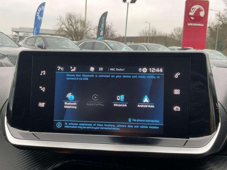 Bluetooth telephone facility, Driver attention warning, Emergency call service, Exterior temperature indicator with ice warning, Lane keep assist, Mirror screen with mirror link, apple carplay and android auto, Multi function trip computer, PEUGEOT i-Cockpit with 3.5" instrument panel display, PEUGEOT i-Cockpit with compact steering wheel, Programmable cruise control and speed limiter, Push button start, Rear parking sensors, Smart phone docking station, Speed limit recognition and recommendation, Start/stop system, 1x USB socket in front, 6 speakers radio with mp3 compatible, DAB Digital radio, Voice recognition for radio, navigation and telephony features, 2 X Rear number plate lights, Automatic hazard light activation upon heavy brake application, Automatic lights, Automatic windscreen wipers, Body coloured exterior door handles, Dark tinted rear side and tailgate windows, Diamond black rear spoiler (roof), Eco LED headlights, Electric front windows + one touch + anti-pinch, Electric rear windows with one touch/anti-pinch, Electrically adjustable, heated and power folding door mirrors, Electrochrome rear view mirror, Follow me home headlights, Gloss black rear cluster connecting strip, Headlights left on audible warning, LED daytime running lights with distinctive tooth design, LED third brake light, Model designation badges front and rear, Nera black door mirror shells, Radiator grille chrome chequered, Rear reversing lights, Rear side wing doors, Rear windscreen wiper triggered automatically in reverse gear, Roof mounted aerial, Roof spoiler, Single exhaust tailpipe, Tailgate with heated rear windscreen and wiper blade, Variable front intermittent wipers, 1/3 to 2/3 split folding rear seats, 12V socket, 3 seat bench in 2nd row, Automatic air conditioning, Driver and front passenger comfort seats, Driver and front passenger seat manual adjustment in longitudinal and back rest angle, Driver seat mechanical height adjustment, Electric power steering with reach and rake adjustable steering column, Front interior light with 2 reading spotlights, Gear shift indicator, Leather steering wheel, Low centre console, Map pockets on the backs of the front seats, Piano keys gloss black plated toggle switches to access main functions of the vehicle, Rear centre headrest, Roof lining - light grey, Seatbelt unfastened on the move audible and visual alert for front and rear seats, Single front passenger seat, Tri material cloth upholstery, 2x Isofix child seat fitting on outer rear seats, 3 rear 3 point seatbelts, ABS (Anti-lock Braking System) with EBD (Electronic Brakeforce Distribution) and EBA (Emergency Braking Assistance), Adaptive driver and front passenger airbags with passenger airbag deactivation function, Child locking functionality on rear doors, Driver/front passenger side airbags, ESP with Hill Assist, Front and rear curtain airbags, Front and rear disc brakes, Front optimised safety headrests and 3 x rear retractable headrests with height adjustable, Front three point retractable seatbelts with force limiters, Manual parking brake, Pedestrians active safety brake, Tyre pressure sensor, Acoustic vehicle alert system (AVAS), Automatic door locking when moving off, Deadlock, Electronic code immobiliser, Remote central locking, Thatcham cat. 1 alarm with anti lift sensor, Carbon effect Dashboard, front and rear door panel finish, 16" Soho diamond cut alloy wheels,