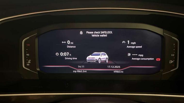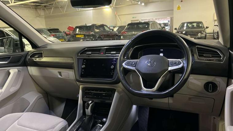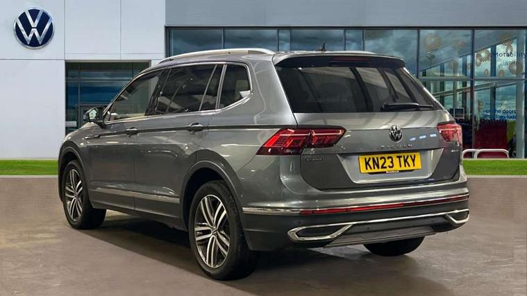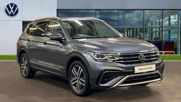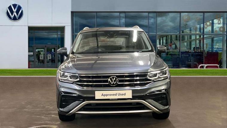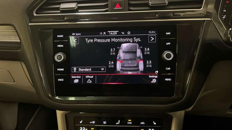 App-Connect, Adaptive cruise control, Digital cockpit pro, Driver alert system, Dynamic road sign display, eCall emergency call service, Electric boot lid, Lane change system side assist and rear traffic alert, Lane keeping system Lane Assist, Mobile phone interface comfort with inductive charging feature, Multifunction front facing camera, Power assisted speed sensitive steering, Speedo and rev counter, electronic odometer, trip, service interval display and exterior temperature gauge, Diesel particulate filter, Start-stop system with battery regeneration (recuperation - energy recovery during braking), 2 USB-C ports in the front, 1 USB-C charging socket on the center console in the rear, DAB Digital radio, Diversity antenna for FM reception, Auto dimming interior rear view mirror, Automatic headlight control system, Body coloured comfort bumpers, Chrome mouldings on side window, Coming/leaving home lighting function, Exterior badge deletion, Exterior mirror housings painted in silver, Heated windscreen washer jets, IQ light adv HBC, dyn light assist LED matrix headlamps, DH range, dark red LED rear combo light, poor weather, CL, LED headlamp with LED DRL and DCL - PXC, Privacy glass, Rain sensor, Rear fog light, Rear side wing doors, Rear wiper, Silver roof rails, Third brake light, Tilting and sliding panoramic sunroof, 12-volt outlet in centre console rear and luggage compartment, 12V socket in centre console, 3 head restraints in rear, 3 individual folding 2nd row seats, 3rd row 2 individual seats, Air Care Climatronic 3 zone automatic climate control with enhanced air filter and controls in the rear, Door and side trim panel, Drawers under front seats, Driver and front passenger seat height adjustment, Foldable front passenger seat backrest, Front + rear carpet mats, Front centre armrest, Front footwell illumination, Heated front seats, Illuminated scuff plates, ISOFIX anchorage points for mounting 2 child seats on rear seats and i-Size child seats, Leather gearshift handle, Leather-wrapped heated multi-function steering wheel with paddle shift, LED interior light with switch off delay/dimmer and 2 front/rear LED reading lights, Sun visors with illuminated vanity mirrors, Ambience pack - Tiguan Allspace, Driver assistance package - Tiguan Allspace, Easy open and close pack with safelock - Tiguan Allspace, 3 point seat belt for centre rear seat, 3 rear three point seatbelts, ABS+EBD+Brake assist, Driver and front passenger safety-optimised head restraints, Driver's and front passenger's airbag with front passenger's airbag deactivation switch, Electronic parking brake, Electronic Stability Control (ESC) inc EDL (Electronic Differential Lock) and ASR (Traction Control), Height adjustable front 3 point seatbelts + pretensioners, Manual rear child locks, Pedestrian monitoring, PreCrash preventive occupant protection Front and rear, Rear disc brakes, Side airbag in front and rear with curtain airbag, Two tone horn, Warning buzzer for seatbelts if unfastened, Anti theft alarm system with interior monitoring, backup horn and towing protection, Anti-theft wheel bolts, Electronic steering lock, Remote central locking with 2 remote folding keys, Chequered flag tinanium decorative inserts,
