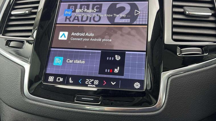12.3" Progressive Driver Display, 360 degree surround view parking camera with side proximity sensors, 9" centre console portrait touch screen, Adjustable steering wheel force, Bluetooth hands free telephone connection, Driver alert control with lane keeping aid, Driver assistance (pilot assist and adaptive cruise control), Driver awareness - Blind spot information system with steer assist, cross traffic alert with autobrake and rear collision warning and mitigation, Emergency call service, Front and rear park assist, Google Automotive Services - Navigation with Voice recoginition and google assistant, Handsfree power tailgate opening and closing, Oncoming Lane Mitigation, Power operated tailgate, Service interval indicator, Speed limiter, Speed sensitive steering, Trip computer, Volvo on call, Wireless Mobile Phone Charger, 8 speed automatic transmission with start/stop + manual change functions, Touring chassis, DAB Radio (Digital Audio Broadcasting), Premium Sound by Harman Kardon, dirac unison, dolby pro logic II surround sound, 13 speakers/600W output and fresh air subwoofer, Steering wheel remote infotainment controls, Active bending headlights with adaptive shadow technology, Adaptive brake lights with high level LED brake lights, Auto dimming interior + exterior mirrors, Auto folding and heated power door mirrors, Automatic headlight levelling system, Automatic LED Headlights + Active high beam incorporating daytime running lights, Body colour bumpers, Front and rear power windows, Headlight cleaning system, Heated front windscreen, High gloss black door mirrors and window surround, High gloss black front and rear bumper deco, High gloss black mesh front grille with surround, Home safe and approach lighting, Integrated roof rails in high gloss black, LED front fog lights with cornering light function, Power glass tilt and slide panoramic sunroof with sun curtain, Puddle lights, Rain sensor with automatic windscreen wiper activation, Rear side wing doors, Rear wash/wipe with intermittent wipe setting, Roof antenna, Roof spoiler, Visible VIN plate, 12V socket front tunnel console, rear passenger compartment and cargo area, 2 seat bench in 3rd row, 2nd Row centre armrest with and cupholders, 3 seat bench in 2nd row, 4 zone electronic climate control with Clean zone air quality system + pollen filter, A-pillar parking ticket holder, Advanced interior air cleaner PM2.5, Air conditioning for 3rd row of seats, Ambient door and instrument panel lighting, B Pillar ventilation, Bright metal luggage threshold, Centre console cupholders and storage, Floor mats, Front and rear door pocket and front cupholder illumination, Front and rear reading lights, Theatre lighting and centre armrest storage illumination, Front footwell and side step illumination, Front headrests, Front seat cushion extensions, Heated front seats, Heated rear seats, Heated steering wheel, Height/reach adjustable steering column, Illuminated front and rear tread plates, Illuminated luggage compartment, Illuminated tailgate, Illuminated vanity mirrors + ticket holder, Illumination lockable glovebox compartment, Integrated sun curtains in rear doors, Isofix outer rear child seat preparation in 2nd row, Load protection net, Luggage compartment divider with grocery bag holder, Outboard armrest with cupholder and storage for third row passengers, Power driver seat with multi directional lumbar support and memory for seat and exterior mirrors, Power folding 2nd row headrests, Power passenger seat with multi directional lumbar support and memory, Rear footwell and side step illumination, Rear headrests, Semi automatic load cover, Single front passenger seat, Underfloor luggage compartment storage, 7 three point seatbelts, City safety with steering support includes pedestrian, cyclist and large animal detection and front collision warning with full auto brake, Drivers knee airbag, Dual stage driver/passenger airbags, First aid kit, Front seats SIPS airbags, Hill descent control - off drive mode, Hill start assist, IC (Inflatable Curtains) - Full Length, Passenger airbag cut-off switch, Power child locks on rear doors, Power parking brake with auto hold function, Road sign information display, Run off Road Mitigation, Run off Road Protection, Seatbelt reminder and pretensioners for all seats, SIPS (Side Impact Protection System), Slippery road and hazard light alert, Stability and Traction Control with Spin control, Engine Drag Control and Corner Traction Control, Tyre pressure monitoring system, Vehicle deceleration control with Anti-lock Brake System, Electronic Brake Distribution and Emergency Brake Assist, Warning triangle, WHIPS whiplash protection system - front, Anti-theft alarm including immobiliser/volume sensor + level sensor, Care key with user defined top speed, Key integrated remote control central locking + fuel flap with deadlocking system and auto open/close power windows, Keyless drive includes keyless entry and keyless start, Locking wheel nuts, Private locking for glovebox and tailgate, Tailored Instrument Panel and Door Tops with Contrast Stitching, Tempa spare wheel and jack,