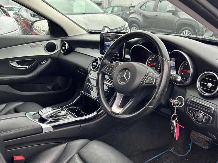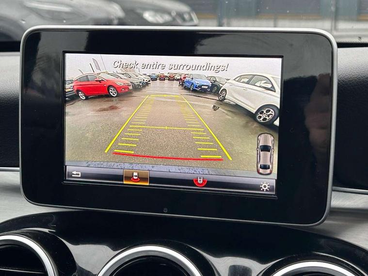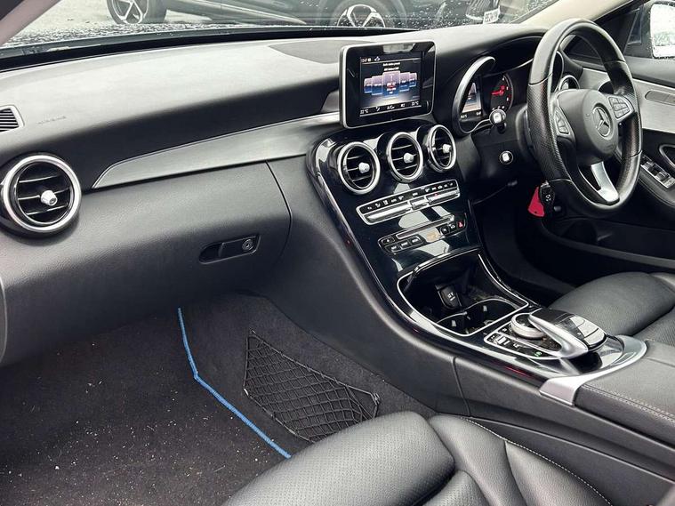 Active park assist with parktronic system, Attention assist, Collision prevention assist, DYNAMIC SELECT with a choice of driving modes (ECO, Comfort, Sport, Sport+ and Individual), Garmin Map Pilot navigation system with SD card, touchpad and voice control, Multi function trip computer, Outside temperature gauge, Remote boot release, Service indicator (ASSYST PLUS), Speed sensitive steering, Diesel particulate filter, DAB Digital radio, Frontbass loudspeakers, Mercedes Audio 20 radio/single CD + telephone keypad, USB connection, Adaptive brake lights, Body coloured bumpers, Electric windows one touch open/close, Electrically adjustable and heated door mirrors, Green tinted glass, Heated windscreen washers, LED daytime running lights, LED tail lights, Radiator grille with integral star and 2 louvres in matt iridium silver with chrome trim, Rain sensor windscreen wipers, 12V power socket in centre console, 2 cupholders in front centre console, 2 way rear head restraints, 3 spoke nappa leather steering wheel, 4 way adjustable front head restraints, 40:20:40 split folding rear seats, Aluminium door trim, Auto Mercedes-Benz child seat recognition sensor, Dual zone automatic climate control, Electric front seat height adjustment, Front centre armrest with storage compartment, Gearshift paddles, Heated front seats, Height/reach adjustable steering column, Illuminated glovebox, Multifunction steering wheel, Rear top tether child seat ISOFIX attachment, Sports seats, Sunvisors with illuminated vanity mirrors, Lighting pack - C class, Mirror pack - C Class, Seat comfort pack - C Class, Stowage space pack - C Class, 3 rear 3 point seatbelts, ABS with Brake Assist, Active bonnet, Adaptive brake system, Child proof door locks, Drivers knee airbag, Dual stage driver/passenger airbags, Electronic parking brake, ESP with ASR, Front passenger seat occupancy sensor, Front side airbags, Hill start assist, Pre-Safe anticipatory safety system, Tyre pressure monitoring system, Warning triangle and first aid kit, Window airbags, Alarm system/interior protection/immobiliser, Chrome surround in electric key, Remote central locking, Tyre inflation kit,