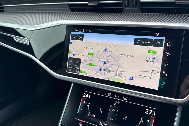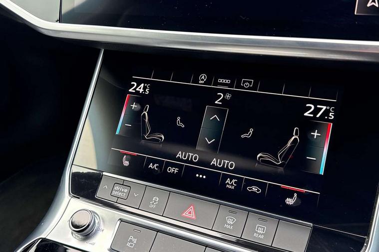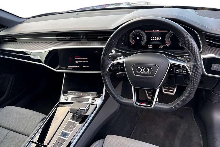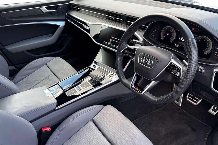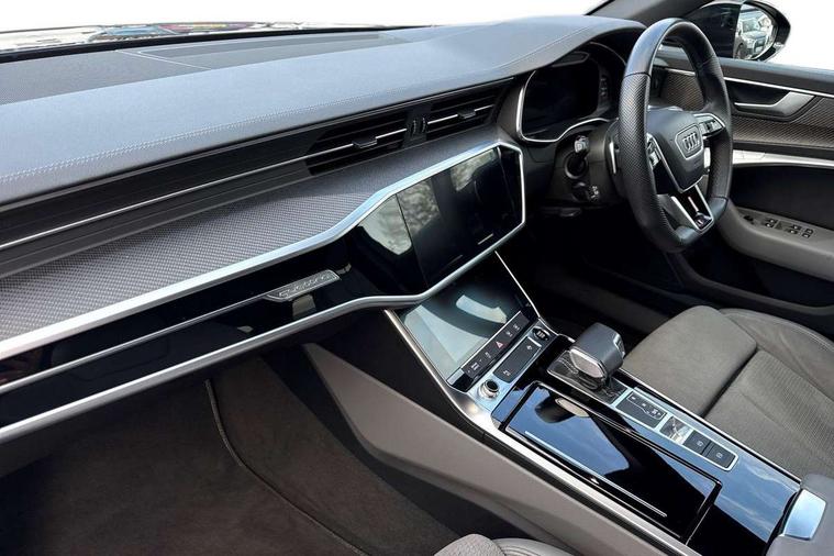 7" high resolution colour driver information display system, Audi connect safety and service (e-call), Audi drive select, Audi parking system plus - acoustic and visual park assist system for front and rear, Audi smartphone interface, Automatic start/stop system with coasting functionality, Bluetooth interface, Lane departure warning system, MMI navigation with MMI touch + twin touch screens 8.8" and 8.6" with haptic and acoustic feedback, Power operated tailgate, Progressive steering, Rear view camera, Service interval indicator, Voice control system, 12V Mild hybrid, Quattro on demand, Sports suspension, Audi music interface, Audi sound system, Auxiliary input socket, DAB Digital radio, USB connection, Black roof rails, Electric front/rear windows, Frameless auto dimming interior rear view mirror, Gloss black exterior mirror housings, Gloss black highlights on the exterior area of the Audi Single frame, Gloss black highlights on the front and rear bumpers, Gloss black highlights on the radiator grille, Gloss black highlights on the side windows trim strips, Headlight washers, Heat insulating glass in side and rear windows, Heat insulating glass in windshield, LED rear lights, LED signature front daytime running light, Matrix LED headlights with dynamic rear indicators, Matt black rear diffuser with diffuser strip and tailpipes in chrome, Matt black side air intake grille with inlay in matt aluminium, Privacy glass, Rain and light sensors, Rear roof spoiler, Signature rear LED light design, 2 zone deluxe electronic climate control, 4 way electric lumbar support for driver and front passenger, 40/20/40 split folding 3 rear seat bench in 3 parts with rear centre armrest, Black cloth headlining, Electrically adjustable front seats with driver memory, Front centre armrest, Front head restraints, Front/rear floor mats, Heated front seats, Height/reach adjust steering wheel, Illuminated door sill trims with S logo, Illuminated sun visors with vanity mirrors, ISOFIX child seat mounting and Top Tether with front passenger airbag deactivation, Leather gear knob, Luggage compartment system, Rear headrests, Stainless steel pedals and foot rest, Tool kit and car jack, LED Interior Ambient Lighting Pack - A6, Non smoking pack - A6, 3 point seatbelts on all seats, Airbags - Front side, front and rear including head, Audi pre-sense front, Black seatbelts, EBD - Electronic brakeforce distribution, Electromechanical parking brake, Electronic Stability Control (ESC) including ABS, ASR and EDL, Extended pedestrian protection measures, Seatbelt monitoring, Tyre pressure warning light, Warning triangle and first aid kit, Anti theft alarm with tow away protection, Anti-theft wheel bolts and wheel loosening detection, Immobiliser, Keyless Go, Remote central locking, Matt brushed aluminium dark inlays, 20" 5 V spoke star design Audi sport cast aluminium alloy wheels in matt titanium look,