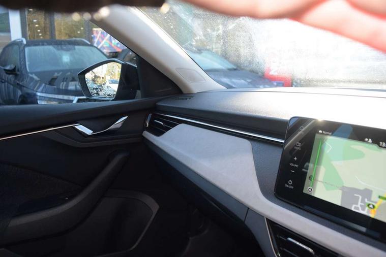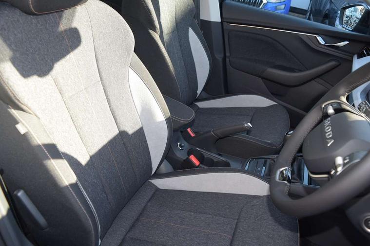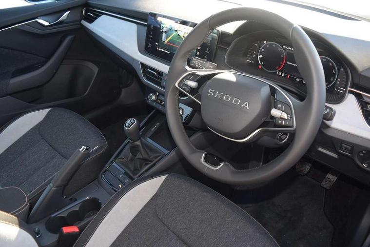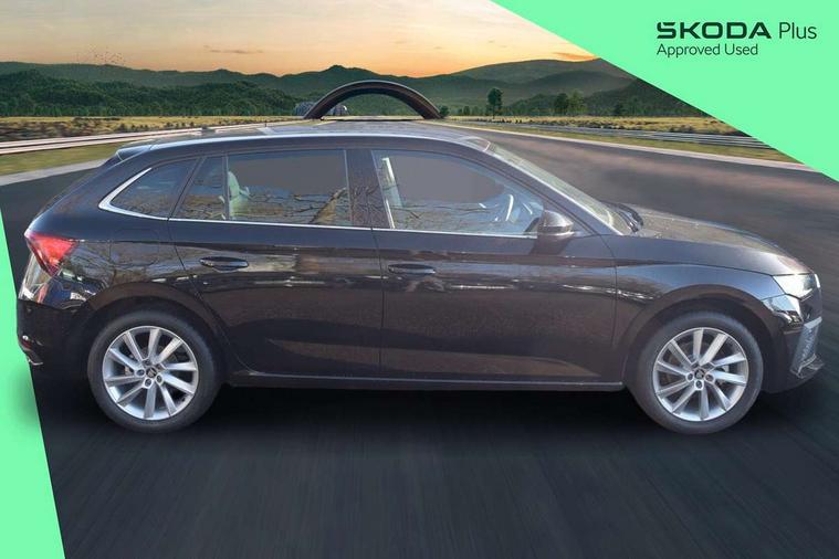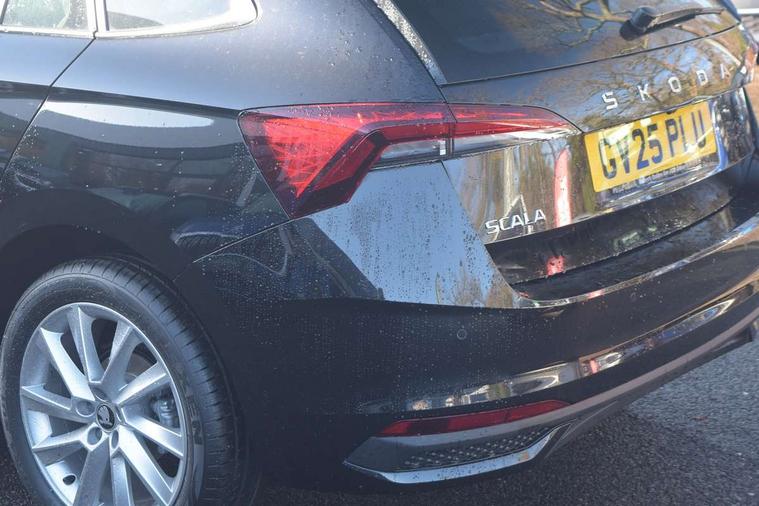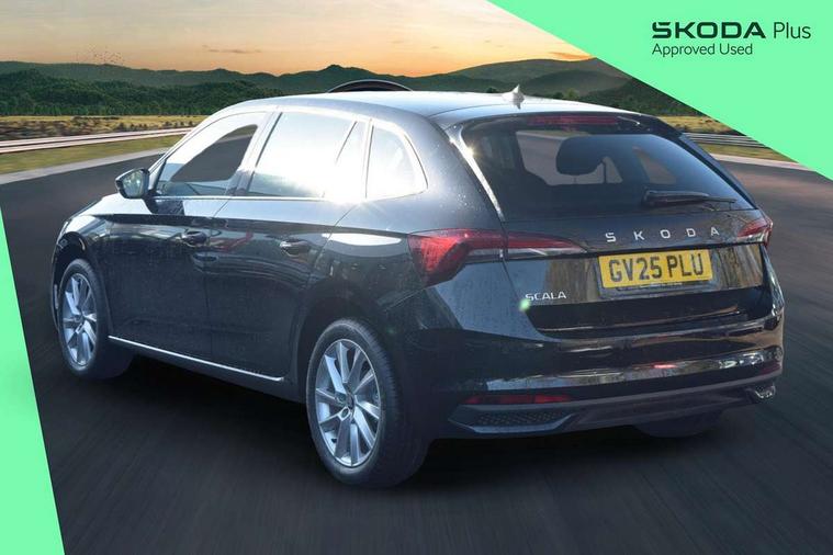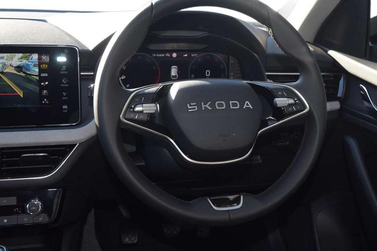 Advanced driver attention and drowsiness monitor, Bluetooth, e-Call (emergency call), Front assist system, PAS, Rear parking sensors, Rear view camera, Speed limiter, Tailgate, Traffic sign recognition, Virtual Cockpit - 10.25" digital display, Voice control system, Wireless smartlink, 4 USB C ports, 8 Speakers, 9.2" Skoda navigation display, DAB radio, Auto dimming rear view mirror, Automatic headlight control with manual coming and leaving home feature, Automatic intermittent wipers, Body colour bumpers, Body colour door mirrors and handles, Chrome moulding around grille, Chrome window frames, Front and rear electric windows, Heated rear window, LED 3rd brake light, LED daytime running lights, LED high beam, LED low beam, Light sensors, Privacy glass, Rear LED fog light, Rear side wing doors, Rear wiper, Tinted windows, Unique dark chrome design logo on alloy wheels, 12V socket in luggage compartment, 3 seat bench in 2nd row, Ambient lighting in white/red, Black / Copper armrest stitching, Cargo elements, Chrome inner door handles, Copper hotstamping, Door inserts in accent black, Driver and passenger sun visors with vanity mirror, Dual zone climate control, Front and rear roof lights, Front centre armrest, Front head restraints, Glasses storage in roof liner, Height adjustable driver seat, Height adjustable passenger seat, Ice scraper, Illuminated glove compartment, Inner circulation control with pollen filter, ISOFIX for front passenger seat, Isofix preparation for back seats, Leather gearknob and handbrake lever, Lodge cloth upholstery, Luggage net under rear parcel shelf, Manual lumbar support for front seats, Net package and top tether hooks in boot space, Pocket on the back of both front seats, incl. mobile phone pockets, Rear centre armrest, Single front passenger seat, Skoda lettering on steering wheel, Textile floor mats, Third rear headrest, Ticket holder, Top tether for front passenger seat, Umbrella in driver's door, Convenience pack without rear camera - Scala, 3x3 point rear seatbelts, ABS, Child locks, Curtain airbags and front side airbags, Disc brakes, Driver and front passenger airbags, ESP, Hill hold control, Manual leather parking brake, One tone horn, Passenger airbag switch off function, Seatbelt reminder for driver and front passenger, Tyre pressure monitoring system, Anti theft alarm system with interior monitoring, backup horn and towing protection, Anti-theft wheel bolts, Remote central locking with 2 remote folding keys, SAFE function for remote central locking, Decorative inserts,