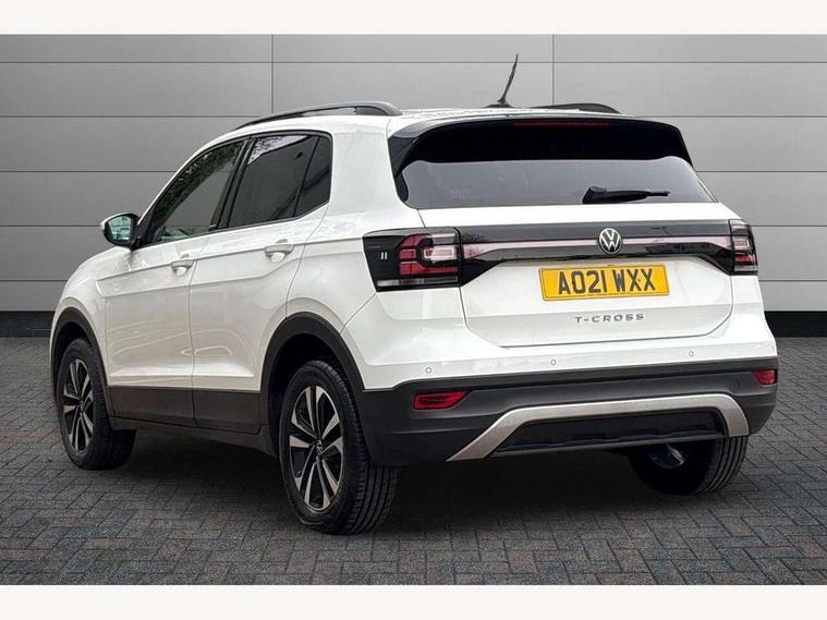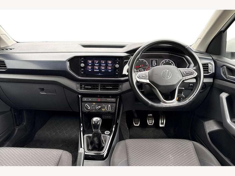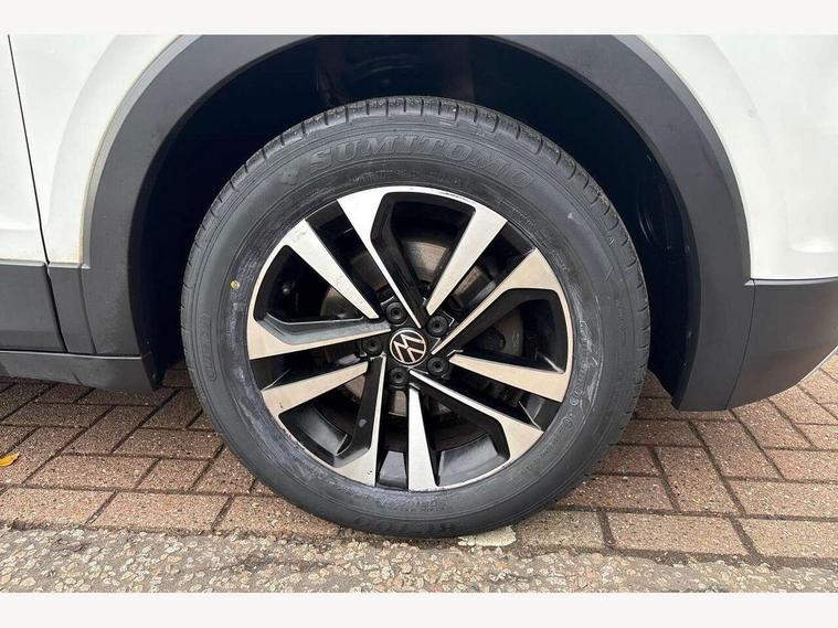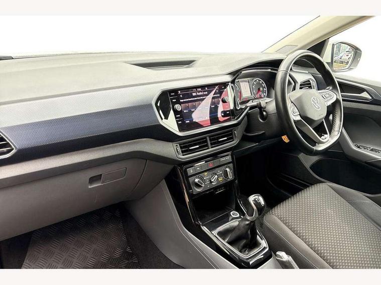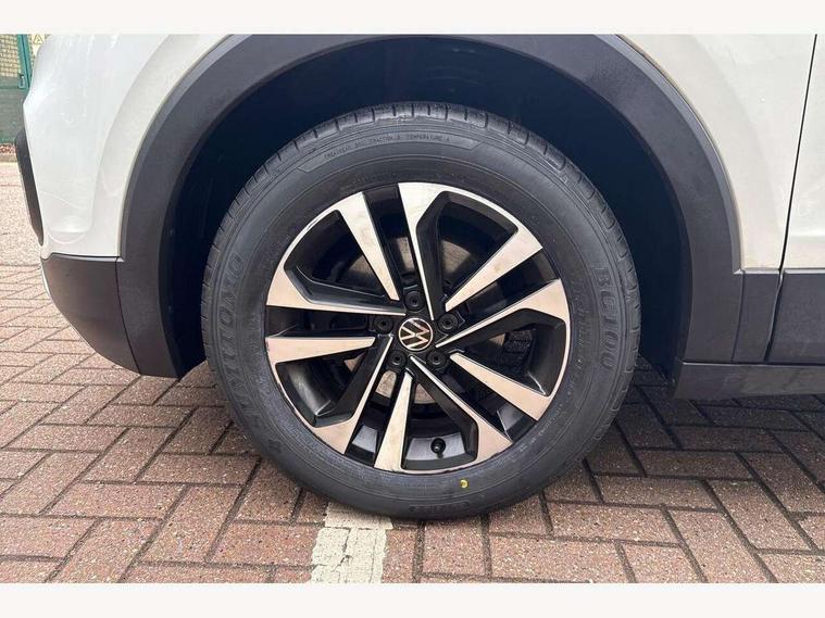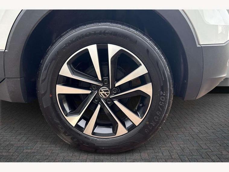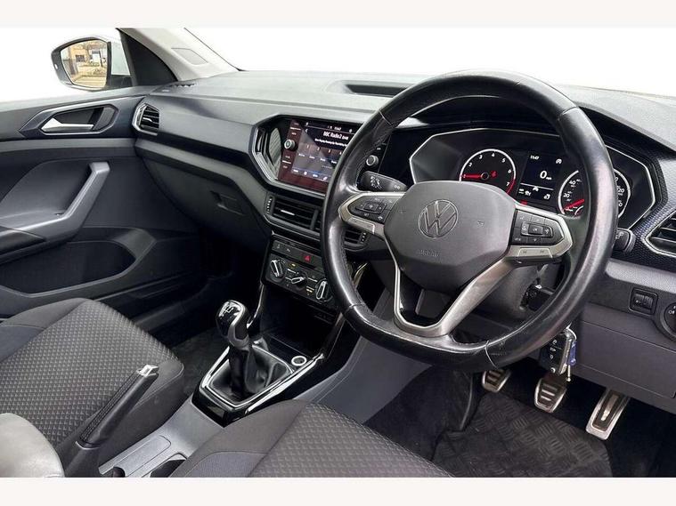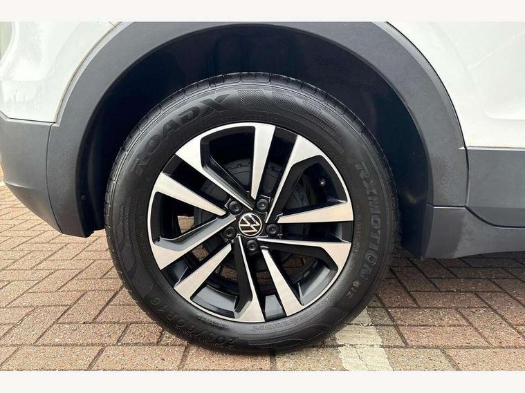 'Lights On' Reminder warning buzzer, Adaptive cruise control including front assist, forward collision warning, autonomous emergency braking, speed limiter, Bluetooth telephone and audio connection for compatible devices, Car information display, Driver alert system, eCall emergency call system, Front and rear parking sensor with ultrasonic, audible with audio volume reduction when activated and optical parking display via vehicle audio system, Lane assist, Multifunction computer with visual gear change recommendation for fuel consumption, Power assisted speed sensitive steering, Ready 2 Discover system with 8" display including streaming and internet, Speedo, rev counter, electronic odometer, trip, service interval display, exterior temperature and fuel gauge, Stop/start system, Voice activation, Warning sound and light for doors and tailgate open, Warning sound and light for front seatbelts unfastened, We Connect Go Dongle, Wireless Car net app connect with Apple CarPlay, combined functionality of Apple CarPlay/Android Auto and MirrorLink, Battery regeneration during braking, Misfuel prevention device, 2x USB connection with USB charging sockets and in rear centre console, DAB Digital radio receiver, Diversity antenna for FM reception, Front and rear 6 speakers, Multi device interface (MDI) with USB connection, Music playback - MP3, WMA and AAC files, Premium USB cable for Apple or Android smartphone compatibility, Simultaneous pairing of 2 compatible mobile devices, Title and cover art display, Automatic dimming interior rear view mirror, Automatic hazard lights activation under emergency braking, Black non metallic door mirror housings, Black roof rails, Body colour door handles, Body coloured bumpers, Chrome plated radiator grille inserts, air vent surrounds and light switch surrounds, Dusk sensor + automatic driving lights, Electric adjustable/heated door mirrors, Front and rear electric windows, Front fog lights with static cornering function, Galvanised body, Halogen clear headlights range adjustable via infotainment system with automatic headlight activation and separate LED daytime running lights, Heated rear window, High level 3rd brake light, Lower door sills and door pillars in black, Manual coming/automatic leaving home lighting function, Rain sensor, Rear lights incorporating LED technology, Rear tinted glass 65% approx light absorbing from B pillar backwards, Rear window aerial, Rear windscreen washer and wiper with interval delay, Reflectors in all doors, Tailgate with integrated roof spoiler, United badge on B-pillar, United door sill protector, Windscreen wipers/ intermittent wipe + 4 position delay, 12V Accessory socket in centre console, 2 Front and rear reading lights incorporating LED technology, 3 rear head restraints and 3 rear three point seat belts, 60/40 split folding rear seat backrest, Brushed stainless steel pedals, Drawer under drivers seat, Driver and front passenger sunvisor with vanity mirror, Driver's sunvisor with ticket holder, Dust and pollen filter, Front + rear carpet mats, Front centre armrest with storage compartment, Front footwell ambient lighting, Front seat back storage pockets, Front seats with adj lumbar support, Glovebox, Heating and fresh air system with 4 stage blower, Height/reach adjust steering wheel, Instrument lighting white adjustable panel illumination, Interior light with delay, Isofix child seat preparation for 2 rear child seats, Luggage compartment cover, Luggage compartment lighting, Manual air conditioning, Manual front seats with height adjustment, Moveable and foldable Rear bench seat, Storage compartment in drivers and front passengers door, Three spoke multi-function leather trimmed steering wheel and gearknob, Variable boot floor, Waveform cloth upholstery, White ambient lighting, Winter pack - T-cross, Anti-lock Braking System (ABS) with Hydraulic Brake Assist (HBA), Automatic post collision braking system, Driver and front passenger safety-optimised head restraints, Drivers and Front Passengers airbags with front passengers airbag deactivation switch, ESC with EDL, ASR, EDTC and trailer stabilisation function, Extended and proactive pedestrian protection, Front and rear curtain airbags, Front disc brakes and rear drum brakes, Front seat side impact airbags, Height adjustable 3 point automatic front seatbelts with pretensioners, Hill start assist, Pre crash preventive occupant protection, Rigid safety cell with front and rear crumple zones, Tyre pressure loss indicator, Volkswagen roadside assistance, Alarm with interior protection and deactivation via infotainment system, Child security locks in rear doors, Electronic engine immobiliser, Remote central locking with 2 remote folding keys, Remote tailgate unlocking using key fob, Atlantic Blue inserts in dash and doors, 16" Dublin black diamond turned alloy wheels + anti theft wheel bolts, Tyre mobility kit and compressor,