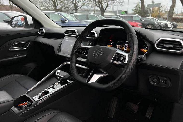 'Lights On' Reminder warning buzzer, 12.3" colour touchscreen, 3 driving modes Normal, Eco, Sport, 3 Energy regeneration modes (1, 2, 3), 360 degree camera with rear sensor, 7" Driver display, Adaptive cruise control, Android Auto, Apple CarPlay, Blind zone detection with lane change assist, Bluetooth connectivity, eCall emergency call system, Forward collision warning, Intelligent speed limit assist, iSmartphone connectivity, Lane keep assist with lane departure warning system, PAS, Rear cross traffic alert, Rear parking sensors, Satellite navigation with speed limit recognition, Traffic jam assist, Trip computer, Unsteady driving warning, 1x USB port at rear (power only) type A, 2x USB ports at Front (1x data and power type A, x1 power only type C) and 1x rearview mirror USB power only - type A, 6 speaker audio system, DAB audio, Radio/MP3 player, USB/aux input socket, Auto headlights, Body colour bumpers, Body colour door handles, Body colour electric adjustable folding heated door mirrors, Chrome side window trim, Follow me home headlights, Front and rear aero wiper, Front and rear electric windows with driver's one-touch up/down, Heated rear window, Intelligent headlamp control, LED centre brake light, LED daytime running lights, LED projector headlights, LED rear lights, Rain sensing wipers, Rear privacy glass, Rear side wing doors, Rear spoiler, Rear wiper, Silver roof rails, 12V power sockets, 2nd row 60/40 split/fold, 3 rear headrests, 3 seat bench in 2nd row, 4 way manually adjustable passenger seat, 6 way electric adjustable drivers seat, Adjustable dual height boot floor, Adjustable rear headrests, Automatic air conditioning, Boot light, Driver's footrest, Front centre armrest with storage, Front cupholders, Front grab handles, Front headrests, Front interior courtesy light with time delay and reading lights, Front reading lights, Front seat back map pockets, Front sun visors with driver and passenger mirrors, Glovebox, Heated front seats, Heated steering wheel, Illuminated switches and controls, Internal chrome door handles, Leather style upholstery, Manual lumbar support on driver seat, Multifunctional steering wheel, Rear grab handle, Single front passenger seat, Tilt adjustable steering column, 3x3 point rear seatbelts, ABS/EBD, Active emergency braking with pedestrian/Bicycle detection, Anti rolling protection, Automatic unlocking of doors in case of impact, Dual front airbags, EBA, Electric parking brake with auto hold function, ESP, Front passenger airbag deactivation switch, Front seatbelts (3-point + pretensioner + load limiter), Front side airbags, Fuel cut off safety device, Hill start assist, Rear door child safety locks, Rear isofix x2, Rear passenger seatbelt alert, Seatbelt reminder for driver and front passenger, Side curtain airbags, Tyre pressure monitoring system, Alarm system and engine immobiliser, Automatic latching door, Keyless entry, Remote Central Locking with Fold-away Key, Speed sensing door locks, 18" Sabre alloy wheels, Tyre repair kit,