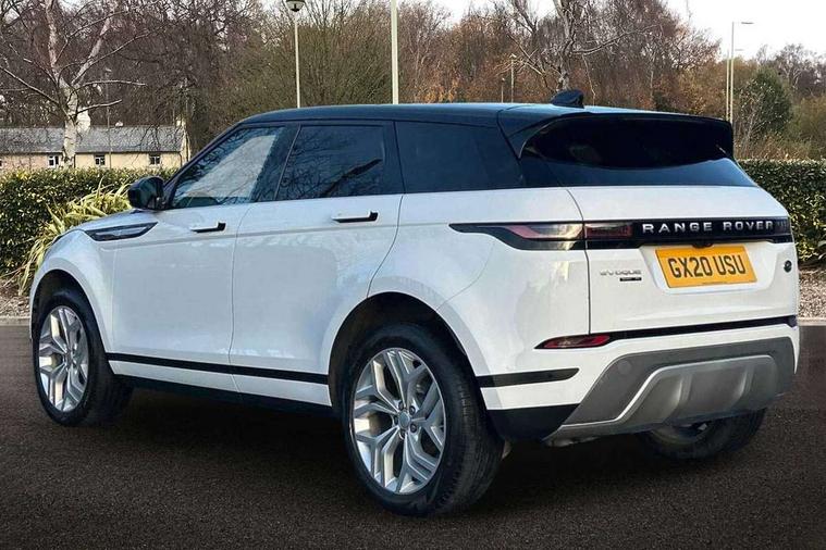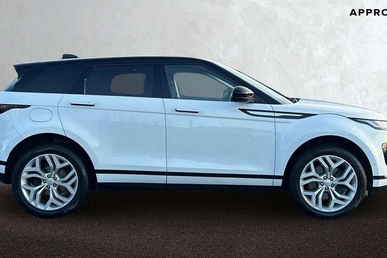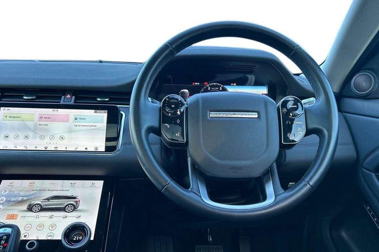 360 degree parking aid, Android Auto, Apple car play, Bluetooth connectivity, Brake pad wear indicator warning light, Clear exit monitor, Driver condition monitor, Duo touch pro, Electronic power assisted steering (EPAS), InControl remote, Interactive Driver display instrument cluster, Land Rover InControl apps, Lane keep assist, Navigation pro system, Park assist - Parallel, perpendicular and parking exit, Pro services and wifi hotspot, Push button starter, Rear traffic monitor, Smart settings, Traffic sign recognition with adaptive speed limiter, Voice control system, All terrain progress control, Efficient Driveline, Passive suspension, Terrain Response 2 Auto, Digital Audio Broadcast radio-DAB, Steering wheel mounted controls, Automatic headlight levelling, Electric windows with one touch open/close and anti trap, Evoque badge, Flush deployable exterior door handles, Heated rear window with timer, Heated washer jets, Heated windscreen, Power fold, auto-dimming, heated door mirrors with memory and approach lights, Rain sensing windscreen wipers, Rear fog lights, Tailgate spoiler, 40:20:40 split folding rear seats, Isofix system on outer rear seats, Overhead lighting console, Overhead stowage for sunglasses, Passive front head restraints, Rear air vents, Rear centre headrest, Sunvisors with illuminated vanity mirrors, Twin front cupholders with cover, Twin sliding front centre armrest, 3 rear 3 point seatbelts, Anti-lock braking system (ABS), Customer configurable autolock, DSC - Dynamic Stability Control, Electronic brake force distribution, Electronic parking brake, Electronic traction control, Front and rear seatbelt reminder, Hill descent control, Hill launch assist, Low traction launch, Power operated child locks, Roll stability control, Six airbags - Driver and passenger airbags/driver knee airbag/front side airbag and curtain airbags, Torque vectoring brake, Tyre pressure monitoring system, Alarm, Immobiliser, Intrusion sensor, Locking wheel nuts,