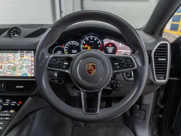 Auto start/stop function and coasting, Brake pad wear indicator, Central analogue rev counter with black dial face, power meter and pointers in acid green, Driver personalisation for climate, audio and communication, assistance systems and other customisable car systems, Instrument cluster with two high-resolution displays, Porsche Communication Management (PCM) including online navigation module, mobile phone preparation, audio interfaces and voice control system, Power Steering, Power tailgate, Vehicle electrical system recuperation, Warn and Brake Assist, 75 litre fuel tank, 8 Speed Tiptronic S, Aluminium cylinder heads and engine block, Charge port, Charging cable for household socket, Charging cable for industrial socket, Direct fuel injection (DFI), Front and rear aluminium multi link axles, Lightweight battery, Panoramic roof with fixed glass panel, Power electronics, battery manager and electrically powered auxiliary units, Supply cable for domestic electrical socket, Turbocharger with twin scroll turbine, VarioCam Plus, Water cooled with thermal management, Connect plus incl Apple CarPlay, 4G/LTE communication module with SIM card reader, wireless internet access and Porsche connect services, Digital radio, Two USB charge ports in rear compartment, Two USB charging and connectivity ports in the front centre console storage compartment, Active air intake flaps, Aerodynamic underbody panelling, Air intake slats with inlays in rhodium silver finish, Automatic headlight activation including welcome home functionality, Bumper system with high strength cross members and two deformation elements + Two receptacles with screw threads towing lug + onboard tool kit, Door handles painted in exterior colour, E-Hybrid logo on front wings with acid green border, Four point signature LED daytime running lights, Front end with integrated air intakes and airblades for the side air intakes, Front light modules including position lights and direction indicators in LED light guide technology, Front windscreen wipers with two speeds, intermittent wipe and rain sensor, Heated rear window with automatic switch off, High gloss silver model designation on tailgate with acid green border, LED High level third brake light, Porsche logo integrated into rear taillight strip, Thermally tinted insulated glass all round, Towbar preparation, Active carbon fine dust filter, B-pillar clothes hooks on driver and passenger's side, Charge air cooling, Driver/passenger sunvisors and illuminated vanity mirrors, Elevated centre console with handles, Front and rear bottle holders in door panels, Isofix fastening system for child seats on outer rear seats, LED interior light with switchoff delay function, footwell + glove compartment light, ashtray + ignition lock illumination, front + rear reading light, Manual height adjust for driver and front passenger seat belt, Mobile charger including transport case and basic wall mounting bracket and Cable connection between control unit and vehicle (4.5m), Parking pre-climatisation, Rear seat split folding design 40:20:40, Fold out centre armrest with integrated cup holder, manual fore/after adjust and backrest angle adjust, Retractable luggage compartment cover in removable cassette, Storage compartments - Cooled glove compartment, front centre console, door and map pockets on front seat backrests + side luggage compartment, Three 12V power sockets - front below the glove compartment, centre console and at side of luggage compartment, Two integrated cup holders in front and two cupholders in rear centre armrest, Sport chrono pack - Cayenne, 3x2 point automatic seatbelts with front and outer rear seats pretensioners and front force limiter with 3-point automatic seatbelt for rear centre se, 4 piston aluminium monobloc fixed caliper brakes at rear and internally vented brake discs, 6-piston aluminium monobloc fixed caliper brakes at front, internally vented brake discs, ABS, Active bonnet, Auto hold function, Brake discs with diameter 360 mm at front, 358 mm at rear, Curtain airbags along roof frame and side glazing, Electronic parking brake, Front and rear seat belt warning, Front passenger airbag deactivation function for front seat mounting of child seat, Front side airbags integrated into seat, Full size driver and front passenger airbags, Knee driver and passenger airbags, Multi-Collision braking, Porsche hill control (PHC), PTM(Porsche Traction Management) and All-wheel drive with map-controlled multi-plate clutch, Regenerative braking system, Rollover detection for activation of curtain airbags and seat belt pretensioners, Side impact protection in doors, Tyre pressure monitoring system, Vehicle stability system and Porsche stability management (PSM) including ASR, ABD, MSR, Trailer stability management and expanded PSM SPORT mode, Alarm system with ultrasonic interior sensor and two stage locking, Engine immobiliser with key transponder, Keyless Start, Porsche vehicle tracking system (PVTS Plus) subscription required, Remote central locking, Air curtains in wheel arch housings, Staggered tyre fitment with wider section rear tyres, Tyre sealing compound and electric inflator,