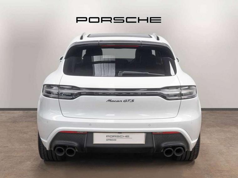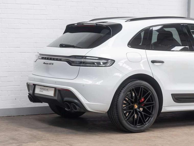 Analogue clock on dashboard, Automatic start/stop system, Digital boost pressure gauge on colour display of instrument cluster, Integrated cluster of three round instruments with black rev counter and GTS logo, Off-road button, On board computer, Porsche Communication Management (PCM) including online navigation module, mobile phone preparation, audio interfaces and voice control system, Power tailgate, Sports button in centre console, 7 Speed Porsche Doppelkupplung with manual controls on steering wheel and automatic mode, 75 litre fuel tank, Direct fuel injection (DFI), Gasoline particulate filter, Sport air suspension with ride-height adjustment including lowering of 10mm, VarioCam Plus variable valve timing and switchable valve lift, 2 USB sockets in rear centre console, Apple CarPlay with Siri voice recognition, Connect Plus including online navigation, LTE communication module with SIM card reader, wireless internet access, Porsche Car Connect services, DAB Digital radio, Porsche Vehicle Traking System Plus (PVTS Plus), Two USB C charging and connectivity ports in the front centre console storage compartment, Active radiator grille shutters, Automatic headlight activation including welcome home lighting, Bumper system with high strength cross members and two deformation elements + One threaded fixture point for towing eye contained in onboard tool kit, Dynamic cornering lights, speed-sensitive headlight and dynamic range control, adverse weather function, four-point LED daytime running lights, Electric front and rear windows with remote closing function + anti trap + one touch, Electrically adjustable, folding and heated exterior mirrors with aspherical on driver's side, Front apron middle section painted in black matt, Front light modules with LED position lights and direction indicators, Front windscreen wipers with two speeds, intermittent wipe and rain sensor, Front with integrated cooling air intakes, Fully galvanised body, Heated rear window with automatic switch off, High gloss black side window trims, High level 3rd LED brake light integrated into roof spoiler, Loading edge protection in aluminium, Porsche logo and model designation on tailgate in matt black, Rear window wiper with intermittent function and washer jet, Roof spoiler with fixed double wing design and fin like look in high gloss black, Side skirts in sport design, Switchable sports exhaust system, Tinted LED taillights including light strip, Towbar preparation, Twin sports tailpipes in black with sports exhaust, 3 adjustable rear headrests, 3 zone auto climate control separate temperature setting+air recirculation include quality sensor, airflow regulation+AC MAX button+humidity sensor, 4 way adjustable front head restraints, 40:20:40 split folding rear bench seat, Cloth hook b-pillar, Five seats rear seat system with two comfort outer seats and a central seat, Fold up centre console armrest with fore/aft adjustment, Front and rear bottle holders in door panels, Glove compartment, Isofix fastening system for child seats on outer rear seats, Luggage compartment cover, Particle/pollen filter with active carbon filter, Rear armrest with 2 cupholders, Storage bin in centre console, Storage compartment in side of luggage compartment and storage compartment in spare wheel recess, Storage pocket in front and rear doors, Two integrated cup holders in front with variable diameter, Two socket 12V power outlets in front console and luggage compartment, Uncovered storage compartment in centre console, Ambient comfort lighting pack - Macan, Lower exterior trim package in painted exterior colour - Macan, 3-point automatic seatbelts with front and outer rear seats pretensioners and force limiter + manually height adjustable seatbelt + reminder warning, 6-piston aluminium monobloc fixed caliper brakes at front, internally vented brake discs, Auto hold function, Brake calipers with red finish, Brake discs with diameter of 390mm at front and 356 mm at rear, Curtain airbags along entire roof frame and side windows from A pillar to the C pillar, Electronic parking brake, Front passenger airbag deactivation facility for installation of child seats indicator in overhead console, Front side airbags integrated into seat, Full size driver and passenger airbags, Multi-Collision braking, Porsche hill control (PHC), PTM(Porsche Traction Management) and All-wheel drive with map-controlled multi-plate clutch, Roll over sensor for curtain airbag and seatbelt pretensioners, Side impact protection in doors, Tyre pressure monitoring system, Vehicle stability system, Porsche stability management (PSM) including ABS, ASR, ABD, MSR and trailer stability management, Vented discs brake with combination floating calipers at rear, Alarm system with ultrasonic interior surveillance, Engine immobiliser with key transponder, Remote control central locking, Accent trims with silver coloured finish, Wheel centres with full colour Porsche crest,
