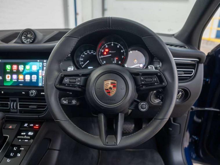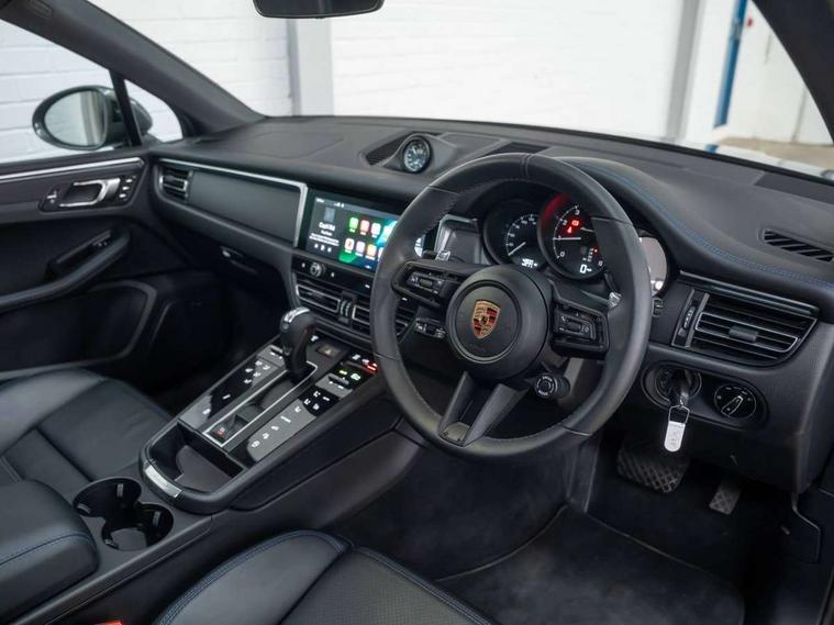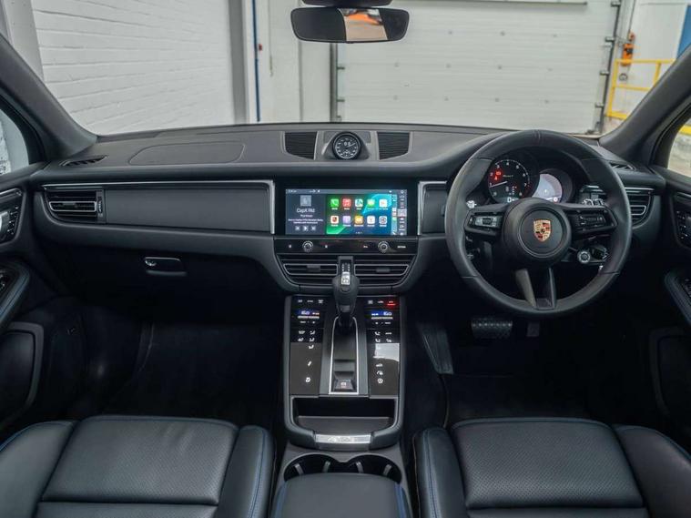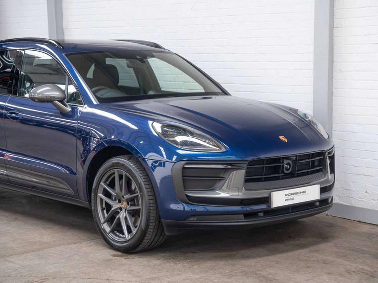 Analogue clock on dashboard, Automatic start/stop system, Automatic tailgate, eCall emergency call system, Instrument cluster with high resolution 4.8-inch TFT display, gear indicator for PDK, service interval display, external temperature indicator, fuel gauge, Off-road button, On board computer, Porsche Communication Management (PCM) including online navigation module, mobile phone preparation, audio interfaces and voice control system, 7-Speed Porsche Doppelkupplung (PDK) with automatic mode and manual controls (gearshift paddles) on steering wheel, Direct fuel injection (DFI), Gasoline particulate filter, VarioCam camshaft control for inlet and exhaust valves, 2 USB sockets in rear centre console, Apple CarPlay with Siri voice recognition, Connect Plus including online navigation, LTE communication module with SIM card reader, wireless internet access, Porsche Car Connect services, DAB Digital radio, Porsche Vehicle Traking System Plus (PVTS Plus), Smartphone compartment with wireless charging, Two USB C charging and connectivity ports in the front centre console storage compartment, Active radiator grille shutters, Automatic headlight activation including welcome home lighting, Bumper system with high strength cross members and two deformation elements + One threaded fixture point for towing eye contained in onboard tool kit, Dynamic cornering lights, speed-sensitive headlight and dynamic range control, adverse weather function, four-point LED daytime running lights, Electric front and rear windows with remote closing function + anti trap + one touch, Electrically folding and heated exterior mirrors, Front light modules with LED position lights and direction indicators, Front windscreen wipers with two speeds, intermittent wipe and rain sensor, Front with integrated cooling air intakes, Fully galvanised body, Heated rear window with automatic switch off, High gloss black side window trims, High level 3rd LED brake light integrated into roof spoiler, Loading edge protection in aluminium, Rear side wing doors, Rear window wiper with intermittent function and washer jet, Roof spoiler in agate grey metallic, Towbar preparation, 3 adjustable rear headrests, 3 rear seats, 3 zone auto climate control separate temperature setting+air recirculation include quality sensor, airflow regulation+AC MAX button+humidity sensor, 40:20:40 split folding rear bench seat, Cloth hook b-pillar, Floor mats with Porsche logo, Fold up centre console armrest with fore/aft adjustment, Front and rear bottle holders in door panels, Front headrests, Front passenger seat, Glove compartment, Isofix fastening system for child seats on outer rear seats, Luggage compartment cover, Particle/pollen filter with active carbon filter, Rear armrest with 2 cupholders, Storage bin in centre console, Storage compartment in side of luggage compartment and storage compartment in spare wheel recess, Storage pocket in front and rear doors, Two integrated cup holders in front with variable diameter, Two socket 12V power outlets in front console and luggage compartment, Uncovered storage compartment in centre console, Ambient comfort lighting pack - Macan, Lower exterior trim package in black - Macan, Sport chrono package including mode switch - Macan T, 3-point automatic seatbelts with front and outer rear seats pretensioners and force limiter + manually height adjustable seatbelt + reminder warning, Auto hold function, Black painted brake calipers, Child locks on rear doors, Curtain airbags along entire roof frame and side windows from A pillar to the C pillar, Electronic parking brake, Front passenger airbag deactivation facility for installation of child seats indicator in overhead console, Front side airbags integrated into seat, Full size driver and passenger airbags, Internally vented brake discs with diameter of 350mm at front and 330mm at rear, Multi-Collision braking, Porsche hill control (PHC), PTM(Porsche Traction Management) and All-wheel drive with map-controlled multi-plate clutch, Roll over sensor for curtain airbag and seatbelt pretensioners, Side impact protection in doors, Tyre pressure monitoring system, Vehicle stability system, Porsche stability management (PSM) including ABS, ASR, ABD, MSR and trailer stability management, Vented discs brake with 4 piston aluminium monobloc fixed caliper at front, Vented discs brake with combination floating calipers at rear, Alarm system with ultrasonic interior surveillance, Dashcam prep, Engine immobiliser with key transponder, Remote control central locking, Accent trims with silver coloured finish,