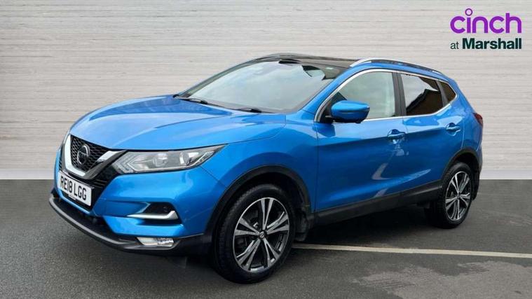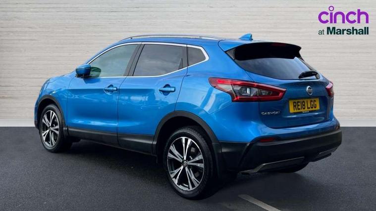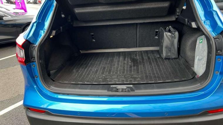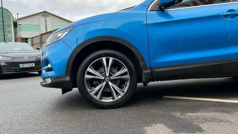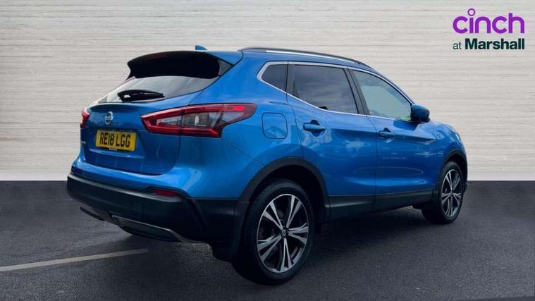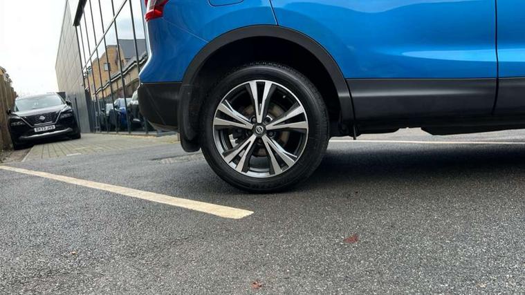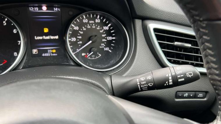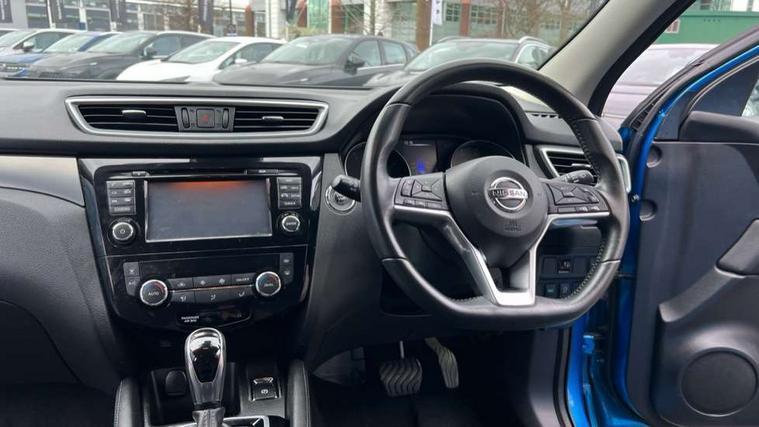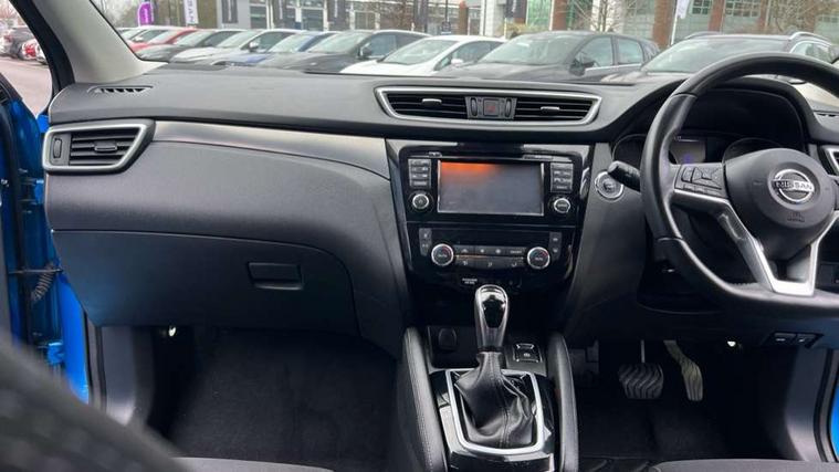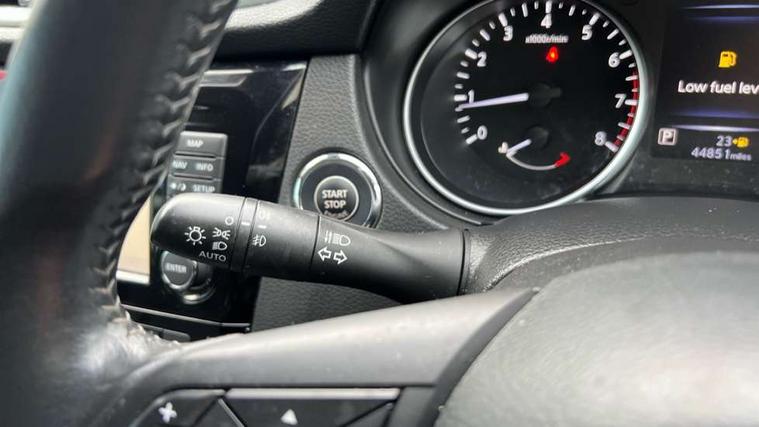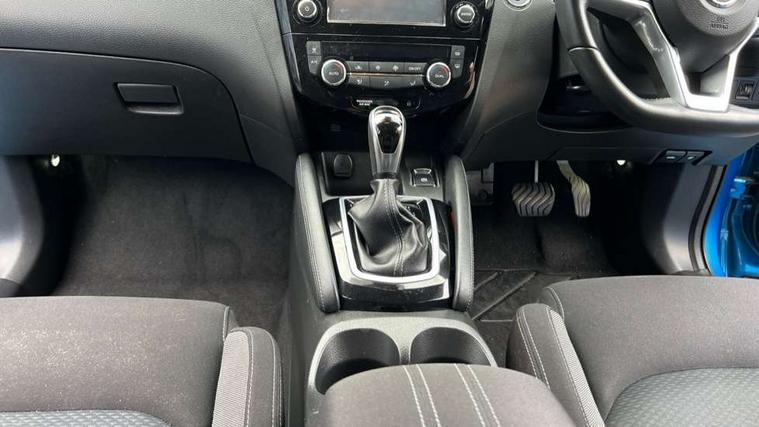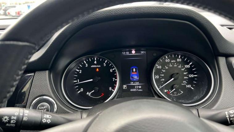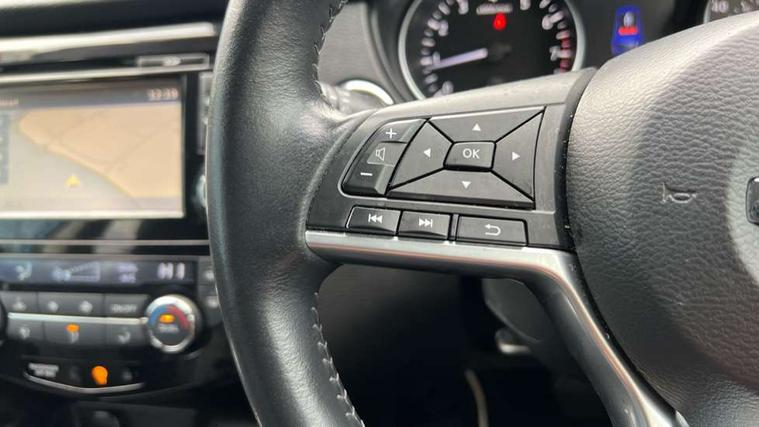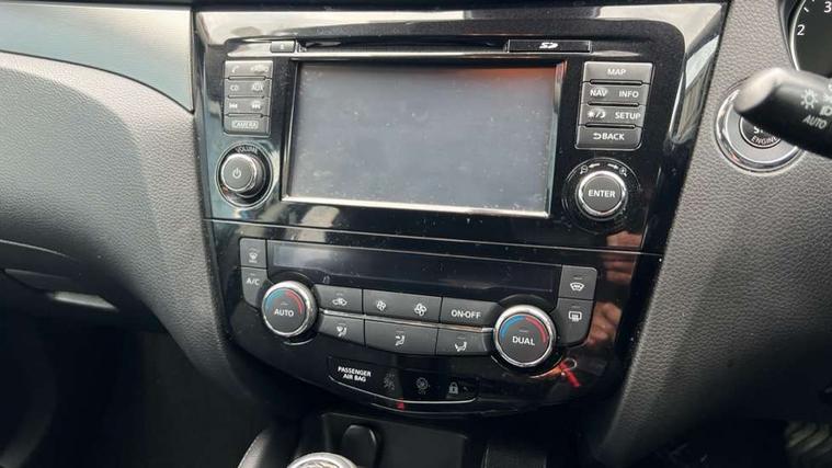 Piano black interior trim, 18" Bi-colour alloy wheels, Tyre puncture repair kit, Alarm, Immobiliser, Intelligent Key, Remote central locking, 'Shark fin' mobile antenna, 6 speakers, DAB Digital radio, Radio/CD, Smartphone apps, Steering wheel mounted audio controls, USB/aux input socket, ABS, brake assist and EBD, Child locks on rear doors, Curtain airbags, Driver/front passenger airbag, Electronic parking brake, ESP + traction control, Forward emergency braking, Front passenger airbag deactivation, Height adjustable front seatbelts, Hill start assist, Seatbelt warning, Side airbags, Three 3 point rear seatbelts, Tyre pressure monitoring system, Automatic headlamp activation, Body colour bumpers, Body colour door handles, Body colour door mirrors, Chrome window surround, Electric folding and heated door mirrors, Front fog lights, High beam assist, Interior mirror with auto anti dazzle, LED indicators in door mirrors, Matt silver roof rails, One touch electric front/rear windows, Privacy glass, Rain sensor windscreen wipers, Rear roof spoiler, Rear wiper, 2 X front 12v power sockets, 60/40 split folding rear seat, Ambient interior lighting, Centre console with armrest, Chrome interior door handles, Cloth upholstery, Configurable luggage board system, Driver + front passenger lumbar support, Dual zone climate control, Front and rear door pockets with bottle holders, Front headrests, Front seat belt pre-tensioners with load limiters, Height adjustable driver's seat, Height adjustable passenger seat, Illuminated electric window switch, Isofix child seat preparation, Leather gearknob, Leather interior door handles, Leather knee rest, Leather steering wheel, Luggage compartment lighting, Parcel shelf, Pollen filter, Rake/reach adjustable steering wheel, Rear armrest with 2 cupholders, Rear headrests, 5" TFT driver information centre, Around View Monitor, Bluetooth phone integration system, Cruise control, Electric speed sensitive power steering, Front and rear parking sensors, Lane departure warning system, Nissan connect sat nav system, Outside temperature display, Push button starter, Rear view camera, Service interval indicator, Speed limiter, Traffic sign recognition, Trip computer,
