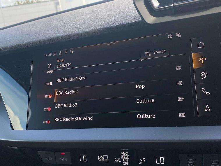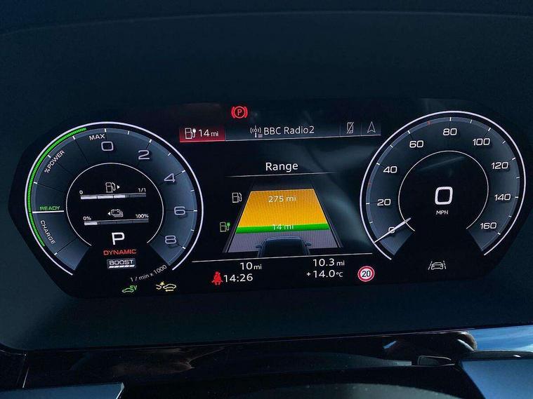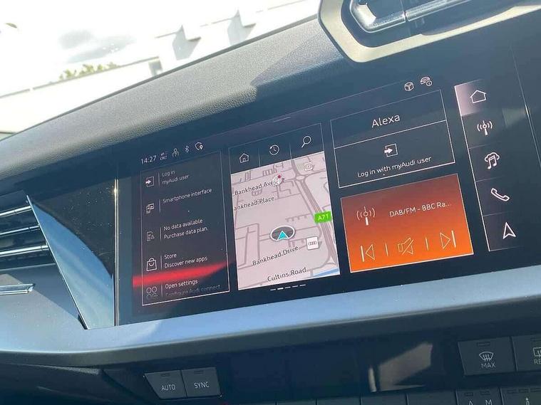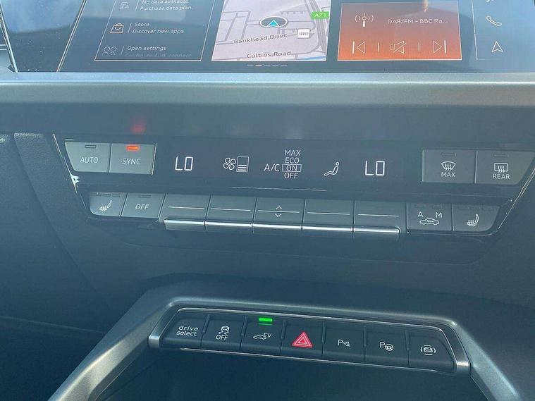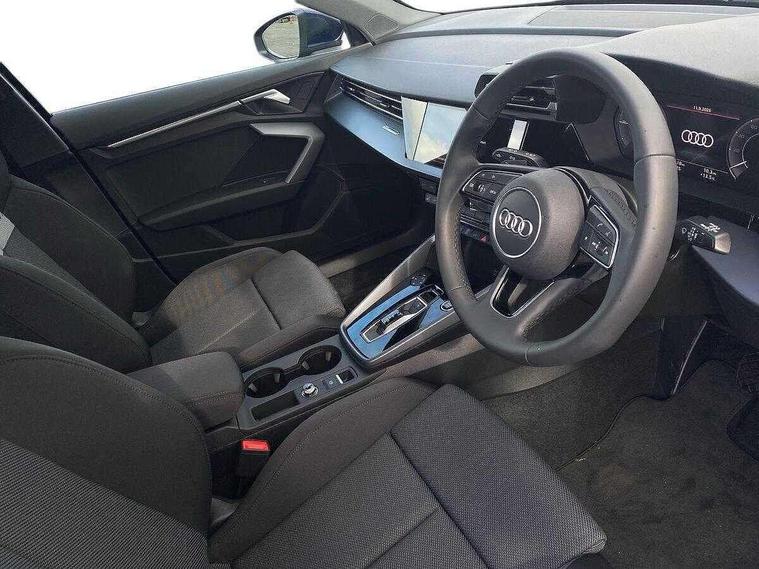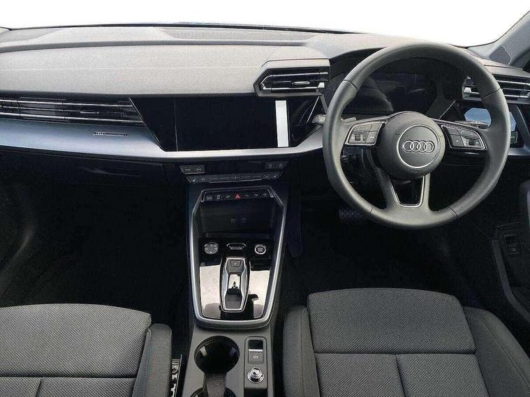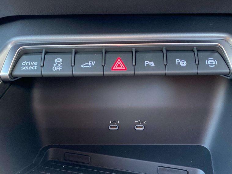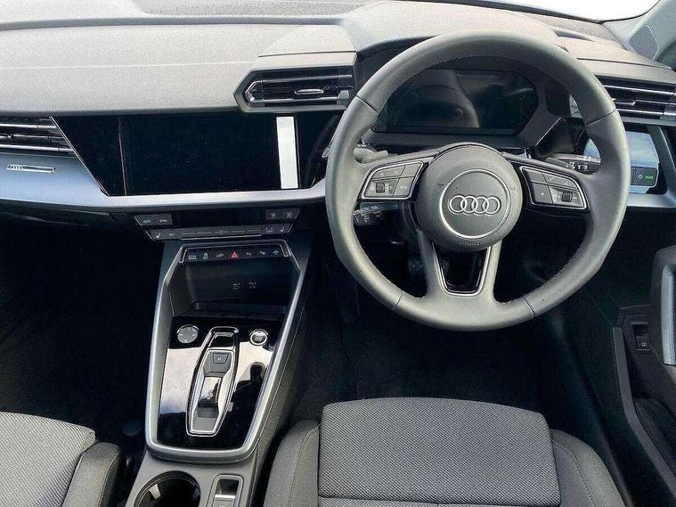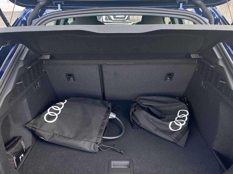 Adjustable speed limiter, Audi drive select, Audi smartphone interface with app store includes wireless Apple carplay, Android auto and Amazon alexa integration, Audi virtual cockpit plus - 12.3" full HD resolution dynamic digital instrument cluster, Automatic start/stop system with recuperation, Bluetooth interface, Camera based traffic sign recognition, Collision avoidance assistant, Cruise control, Distraction and Fatigue warning, e-Call (emergency call), Electromechanical power speed sensitive steering, Emergency assist, Lane departure warning system, MMI Navigation Plus with high resolution 10.1" colour touch screen display, Park Assist with parking system Plus, Service indicator, Trip computer, Voice control system with natural language interaction, 3 pin 10 amp domestic charging cable, CCS socket for DC charging, Charging cable for public charging, mode 3 (type 2), 32 A, Compact charging system, Industrial connector CEE 32 A, 230 V, length 1.6 m, Standard suspension, Type 2 socket for AC charging, Audi Phonebox light with wireless charging, Audi sound system - 10 loudspeakers including centre loudspeaker and subwoofer, DAB Digital radio, USB ports with charging function in the rear, 3rd brake light, Acoustic glass windscreen, Aluminium window trim, Auto dimming frameless rear view mirror, Body colour exterior mirrors, Body colour roof spoiler, Dipped beam, main beam, position light and turning light, Electrically adjustable/heated/folding/auto dimming door mirrors with integrated LED indications + kerb view function for passenger side, Exterior model badging, Front electric windows, Front radiator grill in high gloss dark chrome, Front side air inlets in grained matt black with silver frame, Heat insulating glass windscreen, LED daytime running lights, LED headlights and halogen rear lights, Light and rain sensors, Rear diffuser and grill in grained matt black with silver frame, Rear electric windows, Rear side wing doors, Rear window, rear door windows and rear side windows in clear glass, Rear wiper, 12V socket and storage compartment in front centre console, 3 seat bench in 2nd row, 3 spoke leather multifunction steering wheel with gear shift paddles, 3-zone deluxe automatic air conditioning, 4 way electrically adjustable lumbar support for driver and front passenger, 60/40 split folding rear seat bench, Black front and rear floor mats, Convenience auxiliary air conditioning, Front and rear headrests, Front centre armrest, Front door sill trims with aluminium inlay, Heated front seats, Height and reach adjustable steering wheel, Manual boot compartment lid, Manually adjustable front seats, Routine cloth upholstery with front sports seats, Seat side bolsters, Single front passenger seat, Steel grey cloth headlining, Aluminium interior elements pack - A3, LED interior lighting pack -A3, 3x3 point rear seat belts, Acoustic vehicle alerting system, Driver and front passenger airbag with passenger airbag deactivation, Electronic Stabilisation Control (ESC) including ABS, ASR and EDL, First aid kit with warning triangle and 2 safety vests, Front side airbags with head airbags and interaction airbag, Hill hold assist, Pre-sense front with pedestrian and cyclist detection, Seatbelt monitoring, Tyre pressure loss indicator, Anti theft alarm, Anti-theft wheel bolts, Electronically operated child locks, Immobiliser, Remote central locking with safelock, Black dashboard, Inlays in volcano grey fine paint finish, Tyre repair kit,
