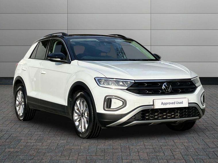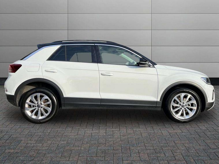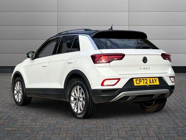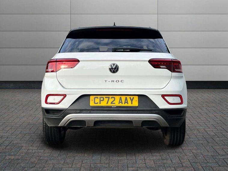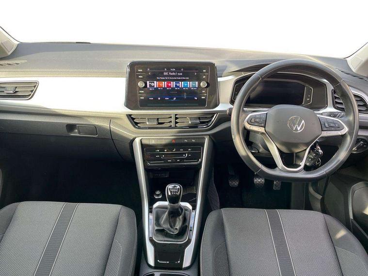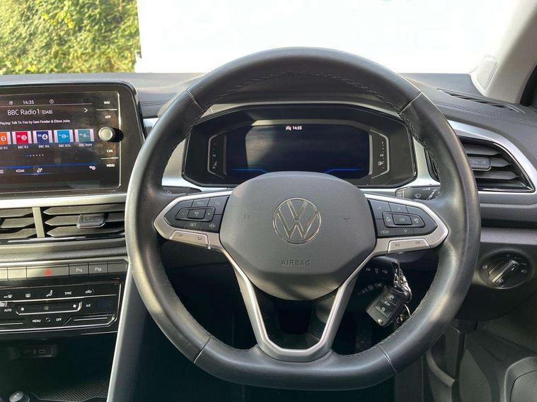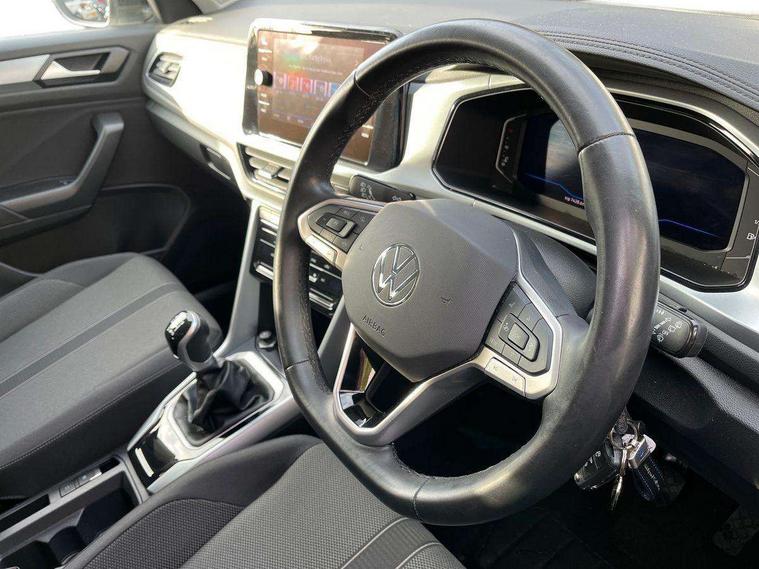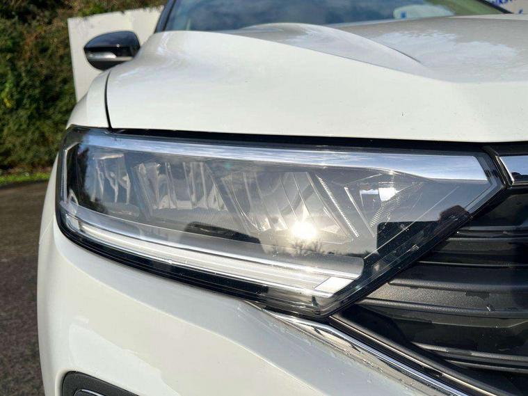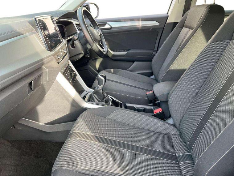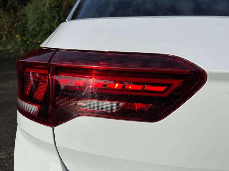 Bluetooth mobile phone interface, Driver alert system with fatigue detection, Driver tips and journey analysis, Emergency call service, Lane keeping system Lane Assist, Modified key software - reduce switch off time for key status change to Long no motion, Online services, Park assist including front and rear parking sensors, Power assisted speed sensitive steering, Service interval indicator, Tailgate/trunk lid release from outside, Think blue trainer driver tips and journey analysis, Warning sound and light for front seatbelts unfastened, Wireless app connect, Battery regeneration during braking, Front shock absorption, Rear shock absorption chassis with increased ride height, Start/stop function with battery regeneration, DAB Digital radio, Diversity antenna for FM reception, Front and rear 6 speakers, Music playback - MP3, WMA and AAC files, Premium USB cable in choice of either Apple or Android smartphone compatibility, SD card slot, Simultaneous pairing of 2 compatible mobile devices, Title and cover art display, We Connect and We Connect Plus functionality, 3rd brake light, Auto dimming interior rear view mirror, Automatic hazard lights activation under emergency braking, Automatic headlight control with LED separate daytime running lights with coming/leaving home function, Black roof rails, Body coloured bumpers and radiator grille with chrome trim and front fog lamps with chrome bezel, Body coloured exterior mirror housings and door handles, Extended roof spoiler, Exterior mirrors aspherical on driver side, convex on front passenger side, External USB type C socket and charging sockets, Front windscreen wiper with intermittent wipe and 4 position delay, Heated rear window, LED Headlights, LED rear combination lamps, LED rear number plate lights, LED tail lamp rear comination lamps, Power windows with comfort operation and circuit breaker, Rain sensor, Rear exhaust tailpipe, Rear fog light on one side and reversing lights on both sides, Rear side wing doors, Rear wash/wipe with intermittent wipe setting, Remote electrically foldable door mirrors, puddle lights and reverse activated passenger's door mirror, 12V power socket in centre console, 3 rear head restraints, 3 seat bench in 2nd row, 4 load lashing points in luggage compartment, Air care climatronic air conditoning system with active combination filter and 2-zone temperature control, Ambient lighting with mirror logo projection, Cloth upholstery, Door and side trim panel in cloth, Drawer under drivers seat, Driver/front passenger seat height adjustment, Front centre armrest, Front comfort sports seats, Front cupholders x 2, Front reading light, Instrument lighting, white adjustable panel illumination, Interior light delay, Isofix child seat preparation, Leather gearshift handle, Load-through provision with cup holder when folded down ('Unsplit rear seat bench, split folding backrest, with centre armrest), Luggage compartment lighting, Lumbar support for driver's and front passengers seat, Non-folding front passenger seat backrest, Single front passenger seat, Storage compartment in left and right luggage area, Storage compartment in rear doors, Storage compartments in driver and front passenger doors, Sunvisors with illuminated vanity mirrors, Variable boot floor, height adjustable and removable, Driver assistance pack without proactive passenger protection - T-Roc, 3 point height adj front seatbelts + pretensioners, 3 point seatbelts in outer rear with ECE label, ABS, Child locks on rear doors, Driver and front passenger airbag with front passenger airbag deactivation, Driver and front passenger safety-optimised head restraints, Drivers seatbelt reminder, Electronic parking brake, Electronic Stability Control (ESC) inc EDL (Electronic Differential Lock) and ASR (Traction Control), Front and rear passengers curtain airbag system including front side airbags, Front assist with city emergency braking and pedestrian monitoring, Front disc brakes, Front seat side impact airbags, Hill start assist, Predictive pedestrian protection, Rear disc brakes, Single tone horn, Tyre pressure loss indicator, Volkswagen roadside assistance, Alarm with interior protection, Anti-theft alarm system with interior monitoring, backup horn, and towing protection, Remote central locking with SAFELOCK, radio remote control with 2 remote control folding keys, Pewter matt decorative inserts for intrument panel, centre console and door panels at the front, Trims for alloy wheels,