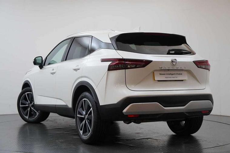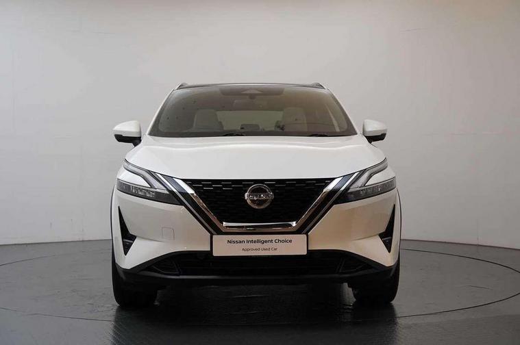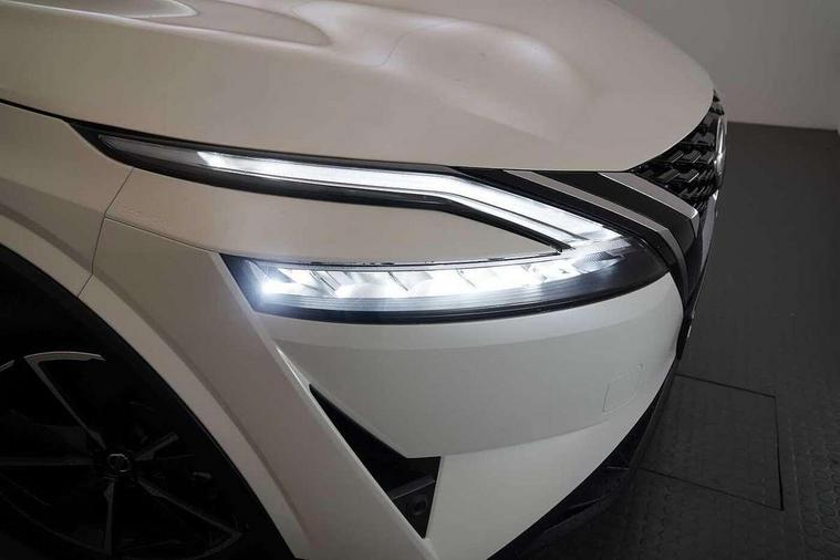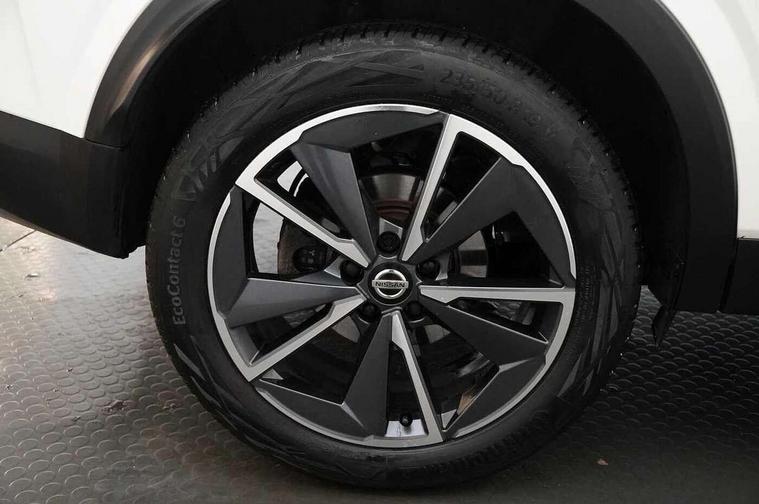 Blind spot warning, Drive modes (sport, normal, eco), Electric speed sensitive power steering, Emergency and breakdown call, Front and rear parking sensors, Full Digital 12.3" TFT Digital Combimeter, Google maps services - search, weather, 3D maps and Google street view, Hands free power tailgate, Idle stop/start system, Intelligent around view monitor, Intelligent Cruise control (ICC), Intelligent driver alert system, Intelligent forward collision warning, Intelligent lane intervention, Lane departure prevention, Lane departure warning system, Moving object detection, Nissan connect 9" touchscreen infotainment system, Nissan connect navigation, Push button starter, Rear cross traffic alert, Remote control services - door locks, lights, horn and car locator, Telematics - notifications and connectivity services, TomTom live traffic services, Traffic sign recognition with legal speed adjustment, Trip computer, Virtual personal assistant and firmware over the air capability, Wireless Apple CarPlay and wired Android Auto, Wireless charging pad, 6 speakers, AM/FM audio system with DAB, Bluetooth audio streaming, Front USB connections (Type-A and Type-C), Rear USB charging only ports (Type-A and Type-C), Auto dimming rear view mirror, Auto rear wiper when reversing, Body colour mirror caps, Body coloured door handles, Bodyside mouldings, Chrome side window finisher, Door handle with button, Dusk sensor, Electric auto folding door mirrors, Electrically adjustable and heated door mirrors with LED turn indicator, Fixed panoramic glass roof with electric sunshade, Follow me home headlights, Front and rear LED turning signals, Intelligent auto headlights, LED daytime running lights, LED rear lights, One touch front and rear electric windows with remote opening and closing, Partially body coloured bumpers, Privacy glass, Rear roof spoiler, Rear side wing doors, Rear styling plate, Roof rails, Shark fin antenna, Splash free rain sensing wipers, Super UV and infrared cut glass, Three blink turn signal, 12v power socket in dashboard and luggage, 2 way electrical driver lumbar adjustment, 2x Rear coat hooks, 3 bench rear seats in 2nd row, 3 rear headrests, 4 folding assist grip, 6 Luggage hooks - 4 on floor, 2 on side, 60/40 split folding rear seat bench, 8 way electric adjustable drivers seat, Ambient lighting around centre console, Ambient lighting in front doors, Centre console storage tray, Chrome interior door handles, Cloth/syntech leather monoform upholstery, Dark headlining, Driver and front passenger sunvisors with illuminated vanity mirrors, Driver seat back pocket, Dual zone automatic climate control with pollen filter, Front and rear door storage, Front cupholders x 2, Front door with bottle holders, Glovebox with light, Hard trunk cover, Height adjustable front headrests, Leather steering wheel, Luggage board system, Luggage space lighting, Manual lumbar support on passenger seat, Manually adjustable passenger (slide recline + lifter), Multifunction steering wheel, Passenger seat back pocket, PVC front centre console and armrest, Rear armrest with 2 cupholders, Rear door bottle holders, Single front passenger seat, Soft PVC kneepad, Steering wheel gearshift paddles, Steering wheel switches, Tilt/telescopic adjustable steering wheel, Two rear isofix child seat anchorage points with top tether, Welcome light and doors with console tray ambient lighting, Heat pack - Qashqai, Tech Pack (ProPILOT + HUD), 3x3 point rear seatbelt pretensioners + load limiters, ABS, ESP, EBD and brake assist, Active brake limited slip, Auto hold function, Child locks on rear doors, Curtain and front side, far side airbags, Driver and passenger airbags, Driver, passenger and 2nd row rear seat belt reminder, Electronic parking brake, Front seatbelt pretensioners + load limiters, Height adjustable front seatbelts, Hill start assist, Intelligent blind spot intervention, Intelligent front emergency braking with pedestrian, cyclist recognition and junction assist, Intelligent rear automatic braking, Tyre pressure monitoring system, Vehicle dynamic control, Capless fuel filler, Engine immobiliser, Nissan i-key, Rear bumper with silver insert, Remote central door locking with deadlocking, Thatcham Cat.1 alarm, 19" Alloy wheels,