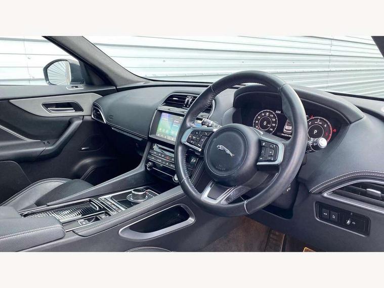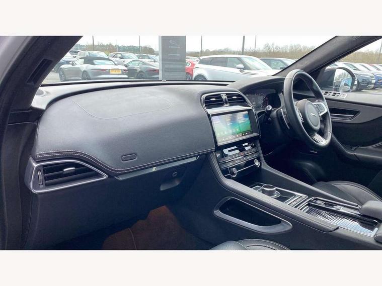Android Auto, Apple car play, Driver condition monitor, Eco driving style assistant, Electric power assisted steering, InControl remote premium, Interactive Driver display instrument cluster, JaguarDrive control, Lane departure warning system, Lane keep assist with driver alert control, Outside temperature gauge, Pro services and wifi hotspot, Push button starter, Rotary shifter, Service interval indicator, Speed proportional steering, Start up sequence with movement in dials and lighting, Traffic sign recognition, Trip computer, Voice control system, 8 speed automatic transmission, All terrain progress control, All Wheel Drive (AWD), Open differential with torque vectoring by braking, AM/FM radio, Bluetooth connectivity including audio streaming, CD/DVD player, DAB Radio (Digital Audio Broadcasting), Dynamic volume control, InControl apps, InControl protect, 3 flash lane change indicators, Antenna roof pod in gloss black, Approach Illumination, Auto dimming rear view mirror, Automatic headlights, Body colour door claddings with gloss black finish, Body colour door mirrors, Dual tailpipes with 75mm finishers, Electric front/rear windows with one touch/auto up/down, Front fog lights, Gloss black grille with gloss black surround, Gloss black roof rails, Gloss Black side vents with Limited Edition badge, Gloss black side window surrounds, Green tinted heat insulating glass, Headlight power wash, Heated front windscreen + heated washer jets, Heated rear window with timer, Jaguar script and leaper, LED tail lights, Metallic paint, Non acoustic front windscreen, R-sport body kit, R-Sport rear bumpers, Rain sensor windscreen wipers, Rear fog lights, Rear metal tread plates, Rear wiper, S front bumpers, Trailer stability assist, Variable front intermittent wipers, 12V power point front, 3 rear headrests, 40:20:40 split folding rear bench seat, Bright metal foot pedals, Centre armrest console, Centre console with side storage, Door sill tread plates, Fold flat front seats, Front centre armrest with storage compartment, Front headrests, Glovebox finisher with jaguar script, Heated steering wheel, Hooks in loadspace, Illuminated glovebox, Illuminated luggage compartment, Interior front door handles with separate locking switches, ISOFIX on outer rear seats, Jaguar sense, Luggage tie downs in loadspace, Multifunction steering wheel, Overhead lighting console, Passive front head restraints, Perforated grained leather upholstery with contrast stitching, Premium carpet mats, Rear air vents, Rear armrest with twin cupholders, Rear centre headrest, Reversible boot floor, Satin chrome gearshift paddles, Soft grain leather sport steering wheel, Sunvisors with illuminated vanity mirrors, Twin front cupholders with cover, 3x3 point rear seatbelts, ABS, All surface progress control (ASPC), Anti-whiplash front headrests, Autonomous emergency braking (AEB) with forward facing camera, Brake pad warning light, Driver/Front Passenger airbags, DSC - Dynamic Stability Control, Electronic parking brake, Front and rear curtain airbags, Front and rear seatbelt reminder, Front passenger seat occupancy sensor, Front side airbags, Hill launch assist, Power operated child locks, Torque vectoring brake, Traction control, Tyre pressure monitoring system, Unpainted brake calipers, Immobiliser, Keyless Start, Perimeter alarm, Remote central locking, Valet mode, Luxtec door trim, Luxtec wrapped instrument panel topper with wrapped binnacle, Satin chrome centre console storage surround finishers, Satin chrome touchscreen surround,