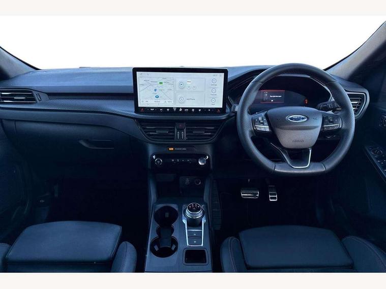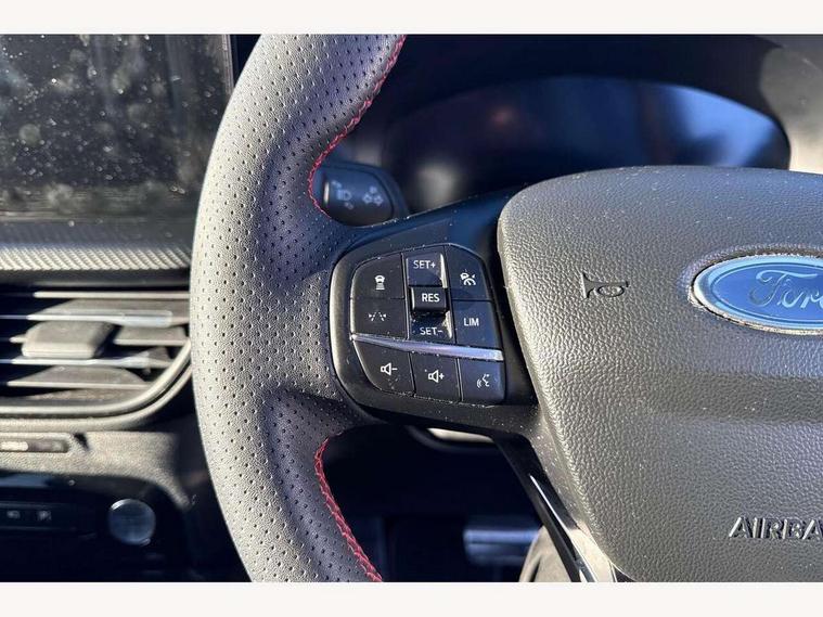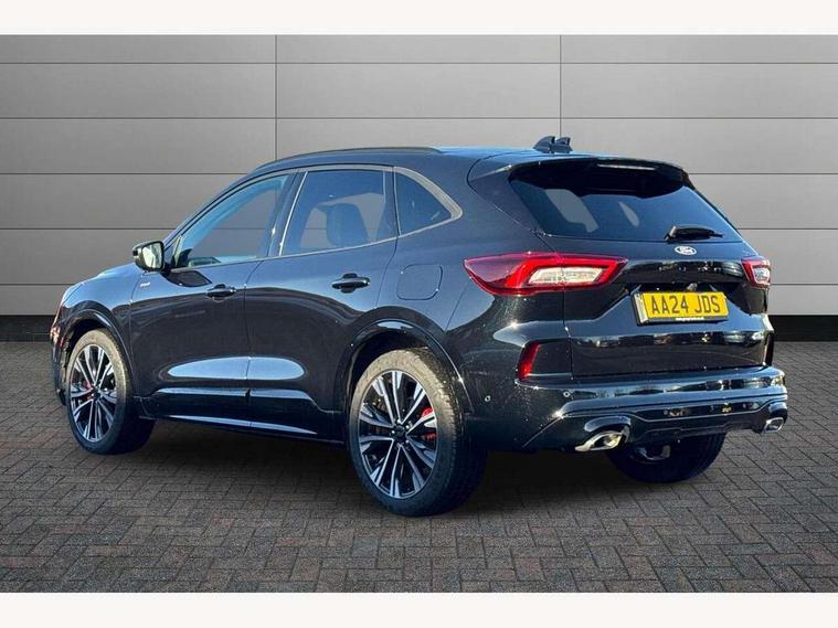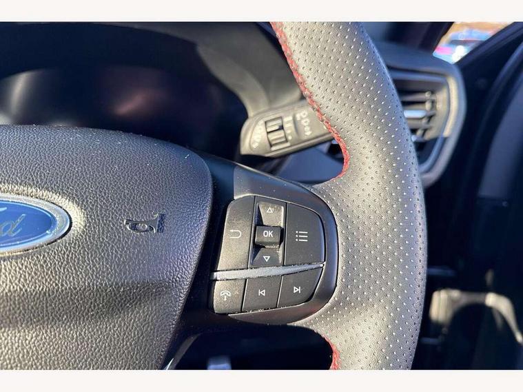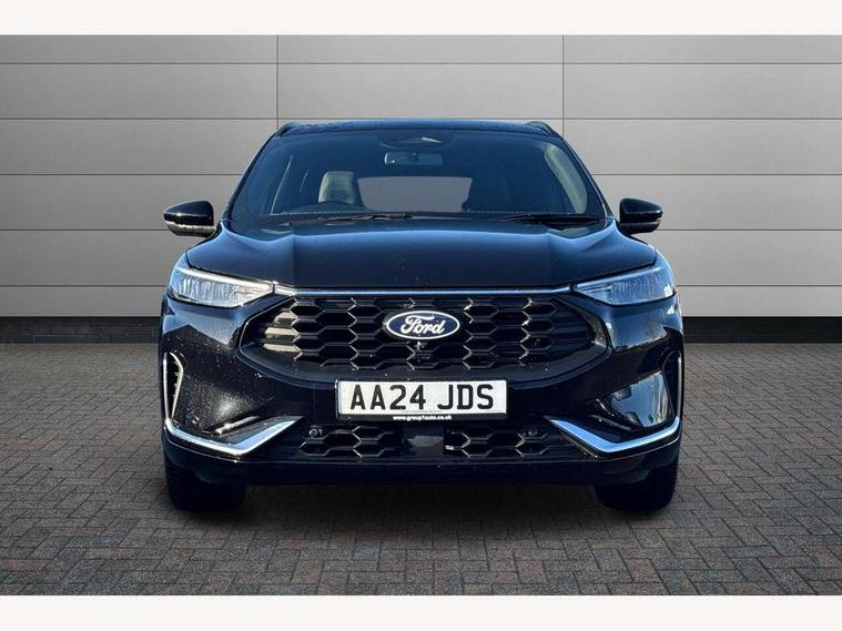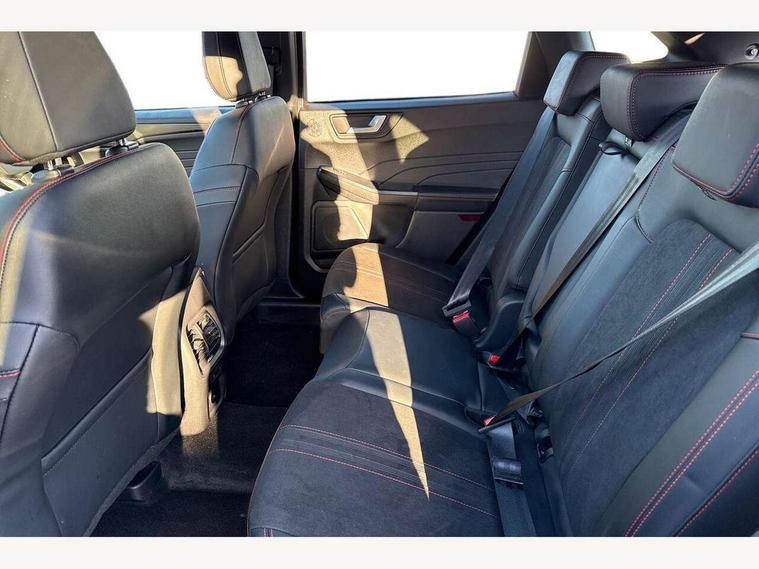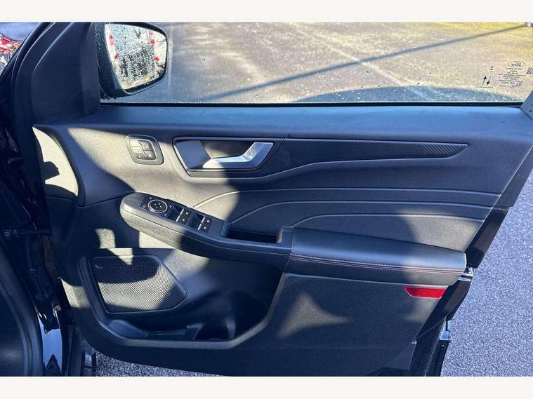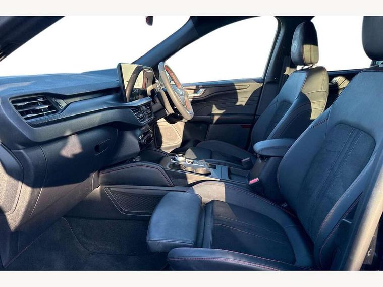 12.3" digital colour instrument cluster, 360 degree view camera, e-Call (emergency call), Ford easy fuel, Ford SYNC 4 Navigation with 13" touchscreen, DAB radio, emergency assistance, Andriod Auto/Apple CarPlay, 5G modem & Ford Pass connect, Front and rear parking sensors, Hands free power tailgate, Lane centering assist, Lane keeping aid with lane departure warning, Power assist steering, Selectable drive modes, Service interval indicator, Sports suspension, Twist beam rear suspension, B&O premium audio system with 10 speakers, subwoofer and 2 USB ports, Auto headlamps with high and low beam, Black roof rails, Body colour bumpers, Front LED fog lamps, Large rear spoiler, LED daytime running lights, LED rear lights, Pop out door edge protectors, Power front/rear windows with global close, Power heated folding door mirrors with puddle lights, memory function and camera, Power opening panoramic roof, Quickclear heated windscreen, Rain sensing wipers, Rear privacy glass, Rear side wing doors, Rear wiper, ST-Line body styling kit, Third brake light, 12 way ergonomic power adjust driver's seat with memory (AGR certified), 12 way ergonomic power adjust passenger seat (AGR certified), 2nd row sliding seats, Electronic automatic temperature control (EATC), Front and rear head restraints, Partial premium touch sensico upholstery, Rear centre head restraint, Single front passenger seat, Sports seats, Driver assistance pack with intelligent adaptive cruise control - Kuga FHEV/PHEV, Winter pack - Kuga, 3x3 point rear seatbelts, Airbags - front driver/passenger, front and rear curtain, Drivers knee airbag, Dynamic brake support, Electronic stability control (ESC) and ABS, Evasive steering assist, Ford MyKey Gen 2 safety system, Manual child proof rear door locks, Pre collision assist with autonomous emergency braking, Rear seat Occupancy alert, Red brake calipers, Tyre pressure monitoring system, Engine immobiliser, Keyless entry and Ford power start button (Keyless start), Locking wheel nuts, Remote powered central double locking doors, Thatcham category 1 alarm,