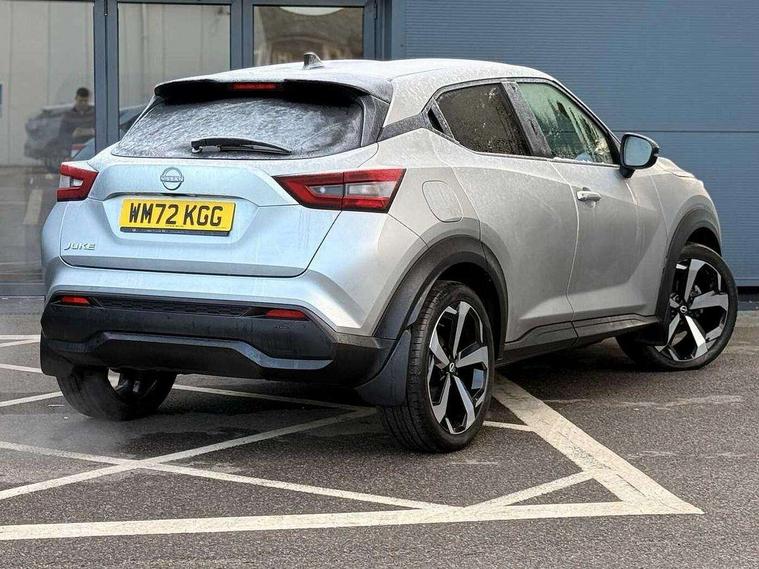 7" full colour TFT screen combimeter, Apple CarPlay and Google Android auto, Drive modes select (Eco, normal and sport), Emergency and breakdown call, Front parking sensor, Idle start/stop system, Intelligent lane intervention, Lane departure warning system, Nissan connect 8" touch screen entertainment system, Nissan connect nav with TomTom traffic, Nissan connect services and Wifi connection, Outside temperature sensor, Power Steering, Rear parking sensor, Traffic sign recognition, Trip computer, Voice recognition, Gasoline particulate filter, 10 Bose speakers 6 speakers and 2 headrest speakers for driver/passenger seats, Bluetooth system, USB, Aux-in and 12V socket, Bose personal sound stage control, DAB Digital radio, Rear console USB port, Auto dimming interior rear view mirror, Auto headlights, Automatic hazard signal with emergency stop signal, Body colour bumpers, Body colour door handles, Electrically adjustable door mirrors with integrated indicators, Follow me home headlights, Front and rear electric window with one touch driver window, Heated and auto folding door mirrors, High beam assist, LED daytime running lights, LED front fog lights, LED headlamps, LED rear fog lamp, LED rear lamps, Rain sensor windscreen wipers, Rear privacy glass, Rear side wing doors, Rear wiper, Thermaclear heated windscreen, Three blink turn signal, 3 height adjustable rear headrests, 3 seat bench in 2nd row, 60/40 split folding rear seat, Automatic climate control, Card holder on driver sunvisor, Door ambient lighting, Driver and passenger sliding and reclining seats, Driver seat back pocket, Driver side rear coat hanger, Driver/passenger sunvisors and vanity mirrors, Front and rear cabin lights, Front armrest, Front door pockets with bottle holders, Front head restraints, Front passenger isofix child seat anchorage point, Front/rear passenger grab handles, Gear console ambient circle lighting, Grey synthetic leather kneepad, Heated front seats, Height adjustable driver's seat, Height adjustable passenger seat, Internal chrome door handles, Leather gearshift knob, Leather steering wheel, Luggage board, Luggage space lighting, Monoform sporty seats, Multifunction steering wheel, Passenger seat back pocket, Rear door bottle holders, Single front passenger seat, Steering wheel mounted gearshift paddles, Synthetic leather upholstery, Telescopic steering wheel adjustment, Two cupholders in front centre console, Two rear isofix child seat anchorage points with top tether, Welcome light and console tray ambient lighting, ProPilot pack - Juke, ABS with EBD and brake assist, Active ride control, Active Trace Control, Driver and passenger airbags, Driver and passenger side airbags, Electric handbrake with auto hold function, Electronic Stability Programme (ESP), Front and rear curtain airbags, Height adjustable seatbelts, Hill start assist, Intelligent emergency braking with pedestrian and cyclist recognition, Rear door child safety locks, Seatbelt reminder for driver/front passenger and rear seats, Single tone horn, Three 3 point rear seatbelts, Traction control, Tyre pressure monitoring system, VDC Dynamic Vehicle Control, Ventilated rear brake discs, Alarm, Immobiliser, Intelligent key and start push button with walk away lock and approach unlock functions, Remote central locking,