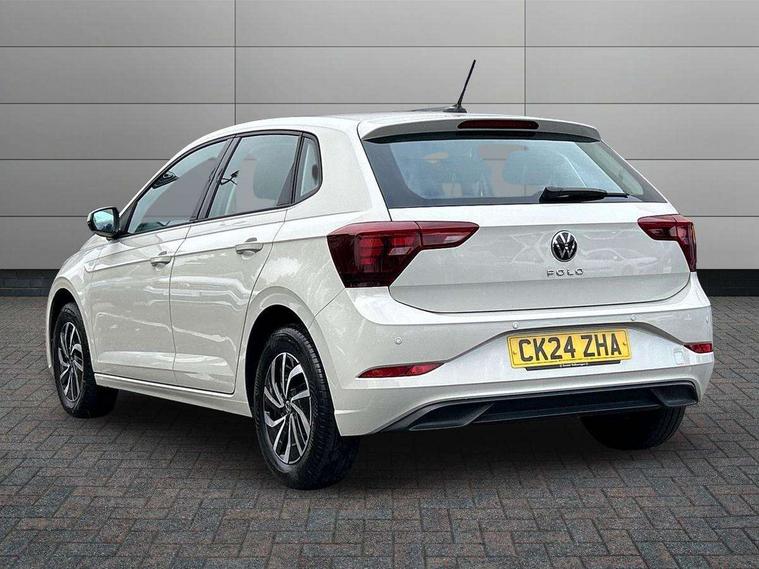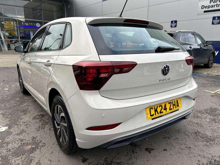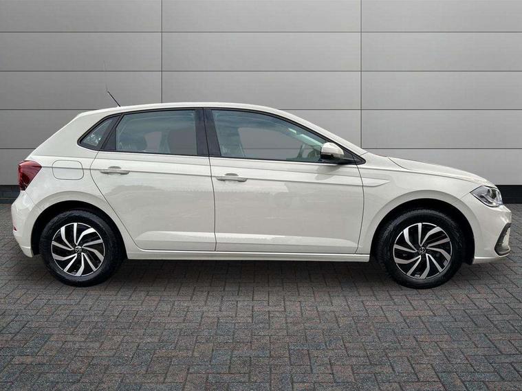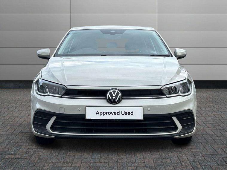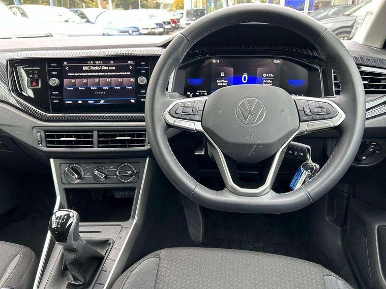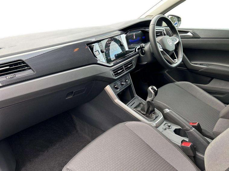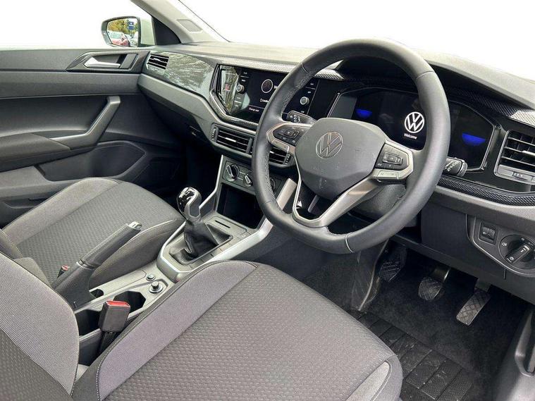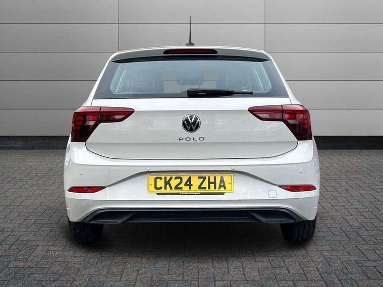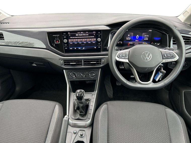 Adaptive cruise control without follow-to-stop and speed limiter, Advanced driver attention and drowsiness monitor, Bluetooth mobile phone interface, Dynamic road sign display, Emergency call service, Power assisted speed sensitive steering, Preparation for navigation system with media and internet package, Preparation for We connect and We connect plus, Speedo and rev counter, electronic odometer, trip, service interval display and exterior temperature gauge, Standard rear axle, Travel Assist - Lane keeping system and traffic jam assist, Travel assist including emergency assist, Trip computer, Warning signal and warning light for front and rear seatbelts not fastened, Washer fluid level indicator, Wireless app connect, Front wheel drive, Rear shock absorpion, Start-stop system with battery regeneration (recuperation - energy recovery during braking), DAB Digital radio, Diversity antenna for FM reception, Front and rear 6 speakers, Automatic dimming interior rear view mirror, Automatic headlight control with LED separate daytime running lights with coming/leaving home function, Body colour bumpers with chrome inserts, Body colour door handles, Body colour door mirrors, Electric front windows, Engine badge deletion, Headlight range adjustment, Heat insulating and laminated safety glass windshield, Heat insulating darkened glass in side and rear windows, Heat insulating glass windscreen, LED Headlights, LED rear combination lamps, Power folding adjustable/heated exterior mirrors and front passenger exterior mirror lowering function, Rain sensor, Rear electric windows, Rear fog light, Rear side wing doors, Rear windscreen washer and wiper with interval delay, Third brake light, 12V power socket in centre console, 2 front and 2 rear reading lights with switch off delay and dimmer, 2 USB-C ports in the front, 2 USB-C charging sockets on the center console in the rear, 3 rear head restraints, 60/40 split folding rear seat and rear seat bench not split, Ceramique roof lining, Chrome plated radiator grille inserts, air vent surrounds and light switch surrounds, Door and side trim panel, Driver and front passenger seat height adjustment, Driver/passenger sunvisors with illuminated vanity mirrors, Front centre armrest, Front seat backrest storage pockets, Front standard seats, Handbrake lever handle in leather, Hartley/Thomas cloth upholstery, Headliner in recycled material, Isofix child seat preparation easy-fit (for two outer rear seats, and front passenger seat) compatible with I-size, Leather trimmed gear knob, Luggage compartment cover, Luggage compartment lighting, Removable luggage compartment floor, Single front passenger seat, Standard climatic zones, Standard pedal cluster, Three spoke leather wrapped multifunction steering wheel, Light and vision pack - Polo, 3 point height adj front seatbelts + pretensioners, 3x3 point rear seatbelts, ABS, Driver and front passenger airbag with front passenger airbag deactivation, Drivers and front passengers safety optimised head restraints, ESC (Electronic stability control) + EDL (Electronic Differntial lock) and ASR (Traction control), Extended and predictive pedestrian/ cyclist protection, Front assist with autonomous emergency braking (for Adaptive Cruise Control ACC up to 130 mph), Front curtain and side airbags with center airbag, Front disc brakes, Hill hold control, Manual child lock in rear doors, Rear drum brakes, Single tone horn, Tyre pressure loss indicator, Alarm with interior protection, Anti-theft alarm system with interior monitoring, backup horn, and towing protection, Anti-theft wheel bolts, Electronic engine immobiliser, Lava stone black gloss/matt decorative inserts in dash and front door panels, Low rolling resistance tyres,