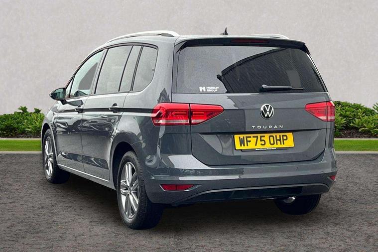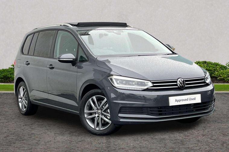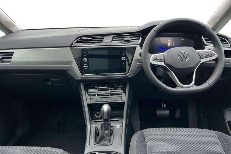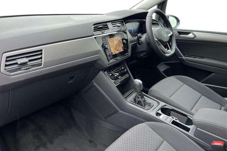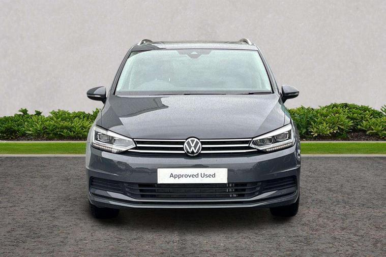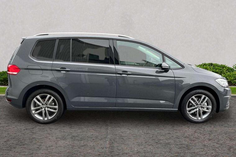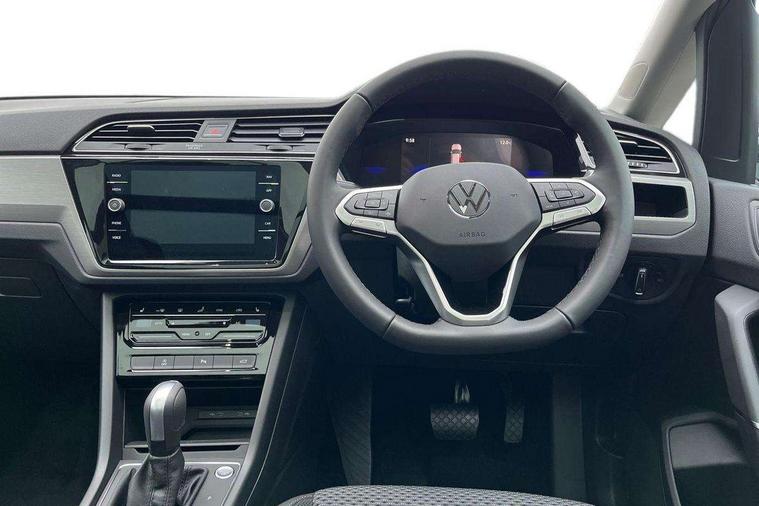 Adaptive cruise control, Audible lights on warning, Discover media navigation touchscreen navigation/radio system with streaming and internet, Driver alert system, Driver profile selection, Dynamic road sign display, Electric tailgate, Electronic odometer, Emergency services call system, Extended, crash-active and proactive Pedestrian and cyclist monitoring, External temperature gauge, Front parking sensors, Lane change system side assist and rear traffic alert, Lane keep assist, Misfuelling protection device, Mobile pairing with SMS function, Mobile phone interface with inductive charging, Rear view camera displayed via vehicles audio system display, Rev counter with fuel gauge, Side scan, Speed limiter, Speed sensitive power steering, Stop/start system, Think blue trainer driver tips and journey analysis, Trip and service interval display, We connect' and 'We connect plus' functionality, Petrol Particulate Filter, Rear stabiliser bar, XDS electronic differential lock, 4x20 watt output, 8 Speakers, Audio Connectivity System, DAB Digital radio, External USB-C data socket with increased charging performance - 2 USB sockets 45W, MP3/WMA compatability, SD card slot, Title and cover art display, USB connection, Aerial integrated into side window, Auto dimming door mirrors, on driver side, surround lighting and front passenger side mirror lowering function, Auto dimming rear view mirror, Automatic coming/leaving home lighting function, Body colour bumpers, Body colour door handles, Body colour door mirrors with integral indicators, Door mirrors with memory function, Dusk sensor + auto driving lights, Electric folding door mirrors, Electric heated + adjustable door mirrors, Electric, glass sliding/tilting panoramic sunroof including integrated roller blind and LED lighting around aperture, Front and rear electric windows, Fully galvanised body, Gloss black finish B pillar, Green tinted heat insulating glass, High level third brake light, Rain sensor, Rear fog lights, Rear side wing doors, Rear tinted glass from B-pillar backwards approx 65% tinted, Rear wash/wipe with intermittent wipe setting, Removable engine badge, Silver roof rails, Tailgate wiper- reverse gear activation, Twin chrome exhaust tailpipes, Volkswagen roundel, Windscreen wipers intermittent wipe, 12V power point for Row 2, 12V socket in luggage compartment, 2 individual fold flat 3rd row seats, 2 three point seatbelts in 3rd row, 2nd row centre armrest, 2nd row centre seat converts into table, 3 single slide/fold/removable 2nd row seats, 3 spoke steering wheel, 3x3 point seatbelts on 2nd row with height adjust on outer seats, 4 boot load lashing points, 4 way adjustable front head restraints, 5 headrests, Activated charcoal canister for intensified evaporation system, Air care climatronic 3 zone air conditioning system with rear air conditioning control panel, Chrome plated radiator grille inserts, air vent surrounds and light switch surrounds, Driver and front passenger under seat drawer, Dust/pollen filters, Foldable front passenger seat backrest with load through function, Front and rear reading lights X 2, Front centre armrest with storage compartment, Front comfort seats with lumbar support, Front cupholders x 2, Front passenger seat height adjust, Front seat storage pockets, Front seatback folding tables, Height adjustable driver's seat, Height/reach adjust steering wheel, Illuminated glovebox, Instrument lighting white adjustable panel illumination with red night time illumination, Interior light with delay, Isofix on 2nd row outer seats, Isofix on 3rd row seats, Large storage compartment in roof console, Lasano cloth upholstery, Leather multifunction steering wheel with gear knob, Leatherette on rear of front seats, Low tunnel 2nd row seat, Luggage compartment lighting, Media box in dashboard on passenger side, Multi storage in passenger/luggage areas, Multi-function centre console with storage facilities, Retractable luggage cover, Split folding rear seat backrests, Storage bins on all doors, Sun visors with illuminated vanity mirrors, Family Pack - Touran, Winter pack without heated washer jet - Touran, 3 point height adjustable front seatbelts, Auto hold function, Automatic post collision braking system, Door open warning reflectors, Driver/Front Passenger airbags, Drivers knee airbag, EDL + ASR, Electronic parking brake, Energy recovery system, ESC with ABS, First aid kit, Front and rear (row 2) curtain airbags, Front assist with autonomous emergency braking, Front seat side impact airbags, Front seatbelt pretensioners, Front/rear disc brakes, Hill hold control, Hydraulic Brake Assist (HBA), Loose wheel warning function, Manual passenger airbag deactivation function, Pre crash preventive occupant protection, Proactive passenger protection system with front and side assist, Rear child proof door locks, Road sign recognition, Seatbelt warning lamp and buzzer, Traction control, Two tone horn, Warning triangle, Alarm with remote central locking and interior protection, Electronic engine immobiliser, Keyless Access Keyless locking and starting system with SAFELOCK, New brushed design decorative inserts in dash and front doors, 17" Salvador alloy wheels with anti-theft wheel bolts, 215/55 R17 self sealing tyres with low rolling resistance,