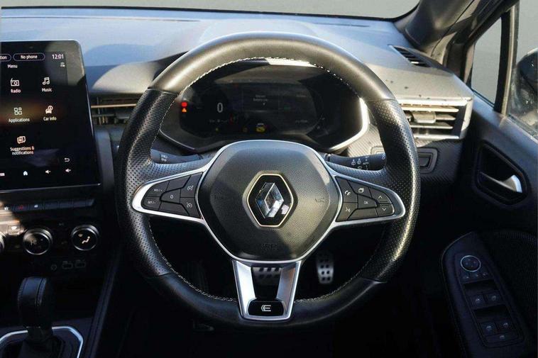 10" driver information display cluster, Apple car play/Android Auto, Cruise control + speed limiter, E-call, Easy link navigation with 9.3" touchscreen+4x20W amplifier+FM DAB double tuner, sound auditorium, 2xUSB/1xjack/bluetooth, smartphone integration plus, Eco mode driving function, Emergency call system, Front parking sensors, Gear change indicator, Lane departure warning system, Lane keep assist, Over speed prevention warning, Rear parking sensors, Rear view camera, Traffic sign recognition, Trip computer, Variable assistance electric PAS, E-TECH battery, Auto dimming rear view mirror, Auto high beam assist, Auto light control and rain sensing wiper, Automatic headlights, Black Renault logo front and rear, Black wing mirrors, Body colour door handles, Bumpers - gold styling elements, Chrome front grille, Drivers one touch window with anti-pinch feature, E-TECH badging, gold sports front bumper, sports lower grill, side and rear E-TECH engineered markings and gold detailing, Electric front windows, Electric rear windows, Exterior rear hidden door handles, Extra tinted glass on rear windows + tailgate, Front and rear LED roof light x 2, Full C-shape LED front and rear signature lighting, Full LED front and rear headlamps integrating daytime running lights at the front and rear, Gun Metal insert on lower side doors with Clio embossing, Heated rear windscreen, LED front fog lights, LED reverse light, LED third brake light, Manual folding wing mirror mechanism, Manually adjustable door mirrors, Rear fog lights, Rear roof spoiler - gold styling elements, Rear side wing doors, Rear wiper, Shark fin antenna, Variable speed on front windscreen wipers, 12V Accessory socket, 3 rear height adjustable headrests, 3 seat bench in 2nd row, 6.2L front glovebox, 60/40 split and fixed base rear seat bench, Air recirculation control, Auto climate control, Black headlining, Black hooks on boot floor x 4, Centre console with storage and armrest, Dark roof lining and aluminimum pedal set, E-TECH Engineered interior trim including airvent gold stripe, renault diamond gold surround and gearshifter with gold stitching, Fabric upholstery, Front cupholders, Front decor strip in red, Front door storage bin, Height adjustable front headrests, Height/reach adjust steering wheel, Isofix system on outer rear seats, Luggage nets in boot, Mechanical height adjustable front seats, Multi function steering wheel, Multisense including ambient lighting and selectable drive modes, Pollen filter, Single front passenger seat, Sun visor without light, Synthetic leather steering wheel, System for Restraint and Protection SRP-front seats, 3 point seatbelts on all rear seats, ABS, AEBS - active emergency braking system, BAS (Brake Assist System), Curtain airbags, Distance warning alert, Driver and passenger front and side airbag deactivation, Driver/Front Passenger airbags, Electronic parking brake with auto hold, ESC - Electronic Stability Control + traction control, Front side airbags(head+thorax), Height adjustable driver's seatbelt, Seatbelt warning, Tyre pressure warning, Deadlocking system, Hands free key card with push button, start and stop function, Locking fuel filler cap, RAID (Renault Anti-Intruder Device) with automatic door locking, Rear side wing door and window child locking function (front driver door control panel), Remote central locking with thatcham approved immobiliser, Upper dashboard soft covered with positive thermoforming type 2, 17" E-TECH Engineered Diamond Cut Alloy with Gold Inserts,