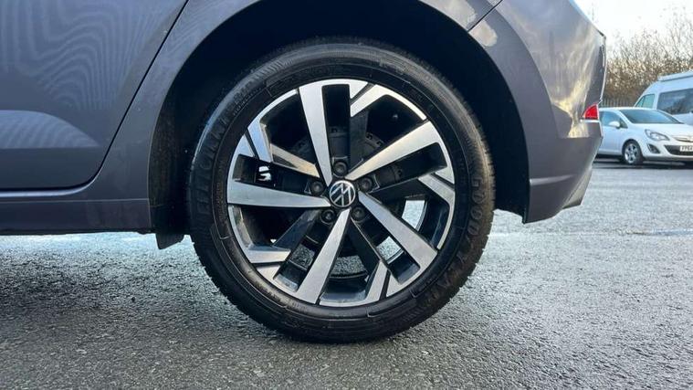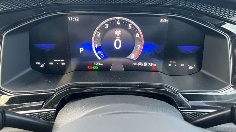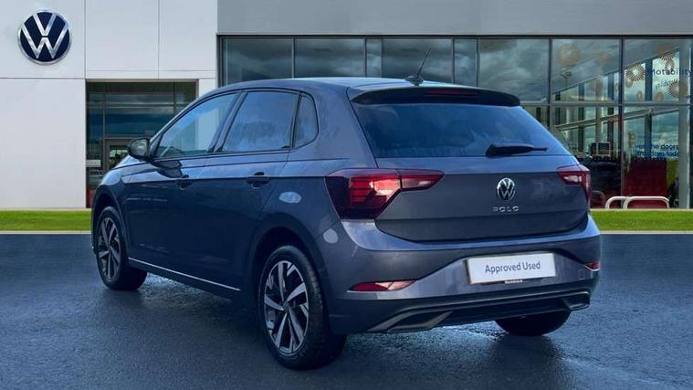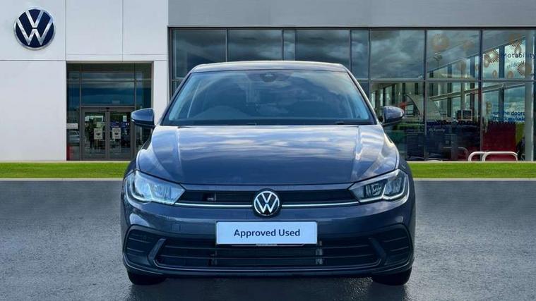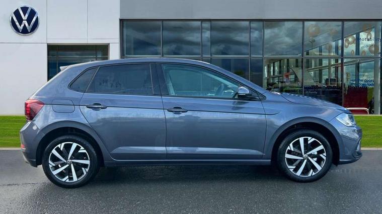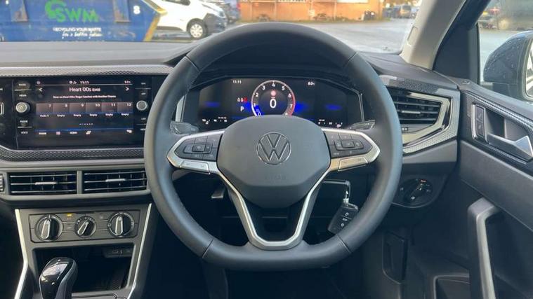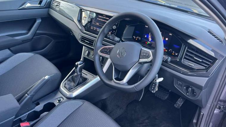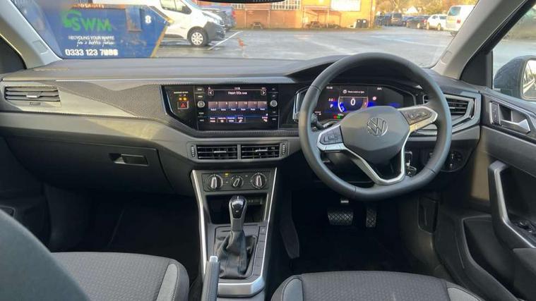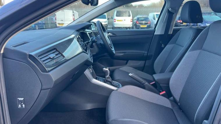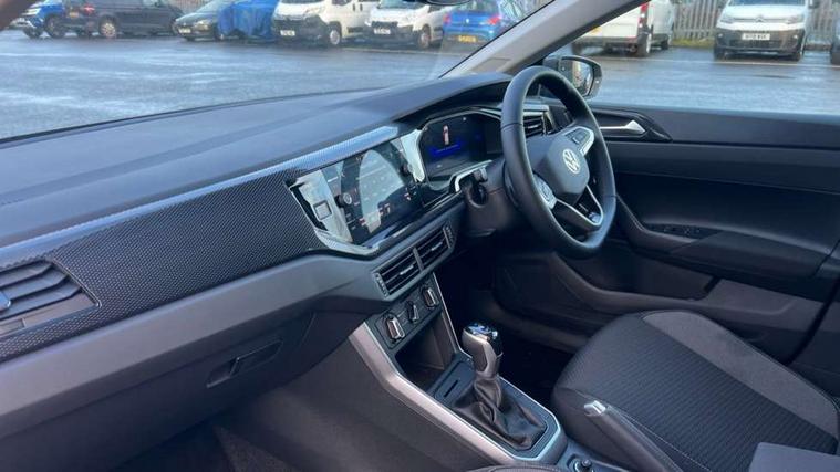 Advanced driver attention and drowsiness monitor, Bluetooth mobile phone interface, Dynamic road sign display, Emergency call service, Mobile phone preparation with inductive charging function, Multifunction front facing camera for distance control, Power assisted speed sensitive steering, Predictive adaptive cruise control without follow-to-stop and speed limiter, Preparation for navigation system with media and internet package, Preparation for We connect and We connect plus, Rear view camera, Speedo and rev counter, electronic odometer, trip, service interval display and exterior temperature gauge, Standard rear axle, Travel Assist - Lane keeping system and traffic jam assist, Travel assist including emergency assist, Trip computer, Warning signal and warning light for front and rear seatbelts not fastened, Washer fluid level indicator, Wireless app connect, Front wheel drive, Rear shock absorpion, Start-stop system with battery regeneration (recuperation - energy recovery during braking), DAB Digital radio, Diversity antenna for FM reception, Automatic dimming interior rear view mirror, Automatic headlight control with LED separate daytime running lights with coming/leaving home function, Body colour bumpers with chrome inserts, Body colour door handles, Body colour door mirrors, Electric front windows, Engine badge deletion, Headlight range adjustment, Heat insulating and laminated safety glass windshield, LED Headlights, LED rear combination lamps, Power folding adjustable/heated exterior mirrors and front passenger exterior mirror lowering function, Rain sensor, Rear electric windows, Rear fog light, Rear side wing doors, Rear tinted glass from B-pillar backwards approx 65% tinted, Rear windscreen washer and wiper with interval delay, Third brake light, 12V power socket in centre console, 2 front and 2 rear reading lights with switch off delay and dimmer, 2 USB-C ports in the front, 2 USB-C charging sockets on the center console in the rear, 3 rear head restraints, 60/40 split folding rear seat and rear seat bench not split, Ceramique roof lining, Chrome plated radiator grille inserts, air vent surrounds and light switch surrounds, Door and side trim panel, Driver and front passenger seat height adjustment, Driver/passenger sunvisors with illuminated vanity mirrors, Front centre armrest, Front seat backrest storage pockets, Front standard seats, Handbrake lever handle in leather, Hartley/Thomas cloth upholstery, Headliner in recycled material, Isofix child seat preparation easy-fit (for two outer rear seats, and front passenger seat) compatible with I-size, Leather trimmed gear knob, Luggage compartment cover, Luggage compartment lighting, Removable luggage compartment floor, Single front passenger seat, Standard climatic zones, Standard pedal cluster, Three spoke leather wrapped multifunction steering wheel with shifting paddles, Light and vision pack - Polo, 3 point height adj front seatbelts + pretensioners, 3 point seat belt for centre rear seat, 3 point seatbelts, outer rear with ECE lable, ABS, Driver and front passenger airbag with front passenger airbag deactivation, Drivers and front passengers safety optimised head restraints, ESC (Electronic stability control) + EDL (Electronic Differntial lock) and ASR (Traction control), Extended and predictive pedestrian/ cyclist protection, Front assist with autonomous emergency braking (for Adaptive Cruise Control ACC up to 130 mph), Front curtain and side airbags with center airbag, Front disc brakes, Hill hold control, Manual child lock in rear doors, Rear drum brakes, Single tone horn, Tyre pressure loss indicator, Alarm with interior protection, Anti-theft alarm system with interior monitoring, backup horn, and towing protection, Anti-theft wheel bolts, Electronic engine immobiliser, Lava stone black gloss/matt decorative inserts in dash and front door panels, 16" Torsby alloy wheels, Low rolling resistance tyres,