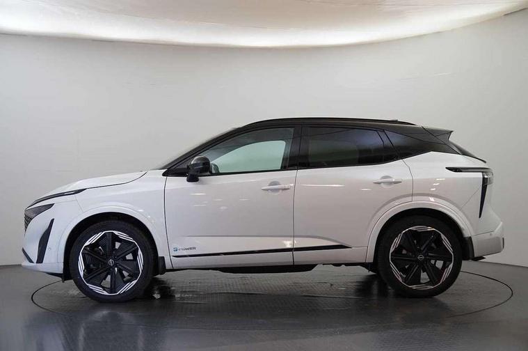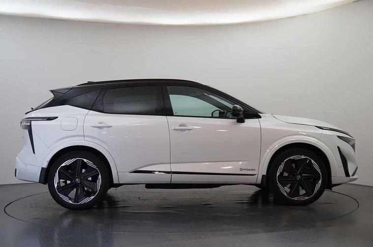 2 front USB-C ports, 2 rear USB-C ports, 360 degree Intelligent around view monitor with moving object detection, Blind spot intervention, Blind spot warning, Drive assist custom mode, Drive modes (sport, normal, eco), Driver drowsiness and attention warning, e-Pedal step, Electric speed sensitive power steering, Emergency and breakdown call, Emergency lane keep assist, Emergency Stop Signal (ESS), Engine start/stop button, EV mode switch, Event data recorder, Front and rear parking sensors, Full Digital 12.3" TFT Digital Combimeter, Google virtual personal assistance, Idle stop/start system, In-car WIFI hotspot, Intelligent Cruise control (ICC), Intelligent forward collision warning, Intelligent speed assist, Lane departure warning system, Nissan connect 12.3 inch touchscreen infotainment system, Nissan connect navigation with google maps, Nissan connect services 2.0 (Google Automotive System), Outside temperature sensor, Rear cross traffic alert, Reversing detection, Traffic jam pilot, Wireless Apple CarPlay/Android Auto, Wireless charging pad, Limited slip differential, Multi link suspension, 6 speakers, AM/FM audio system with DAB, Bluetooth audio streaming, Auto dimming frameless rear view mirror, Auto rear wiper when reversing, Black roof rails, Body colour mirror caps, Body coloured bumpers, Body coloured door handles, Bodyside mouldings, Chrome side window finisher, e-POWER badging, Electric auto folding door mirrors, Electrically adjustable and heated door mirrors with LED turn indicator, Follow me home headlights, High beam assist, Intelligent auto headlights, LED 3rd brake light, LED daytime running lights, LED headlights with adaptive driving beam, LED rear lights, LED sequential turn lights, One touch front and rear electric windows with remote opening and closing, One touch passenger window, Rear privacy glass, Rear roof spoiler, Rear side wing doors, Rear styling plate, Shark fin antenna, Splash free rain sensing wipers, Super RED rear LED lights, Super UV and infrared cut glass, 3 bench rear seats in 2nd row, 3 rear headrests, 60/40 split folding rear seat bench, Chrome interior door handles, Dark headlining, Driver seat back pocket, Dual zone automatic climate control with pollen filter, e-POWER shifter, Fixed Glass roof with electric sunshade, Front door with bottle holders, Height adjustable front headrests, Luggage board system, Luggage space lighting, Multifunction steering wheel, Passenger seat back pocket, Quilted alcantara leather upholstery, Rear door bottle holders, RGB ambient light (Full area coverage), Single front passenger seat, Smooth leather steering wheel, Tilt/telescopic adjustable steering wheel, Two rear isofix child seat anchorage points with top tether, 3x3 point rear seatbelt pretensioners + load limiters, Autonomous emergency braking, Child locks on rear doors, Curtain and front side, far side airbags, Driver and passenger airbags, Driver, passenger and 2nd row rear seat belt reminder, Electric handbrake with auto hold function, Front seatbelt pretensioners + load limiters, Height adjustable front seatbelts, Hill start assist, intelligent front emergency braking, Rear automatic braking, Tyre pressure monitoring system, Vehicle dynamic control, Engine immobiliser, Intelligent key with walk away lock and approach unlock functions, Remote central door locking with deadlocking, Thatcham alarm, 20" N-Design diamond cut alloy wheels, Tyre puncture repair kit,