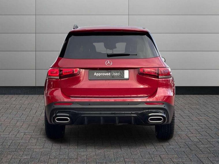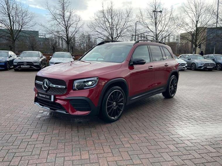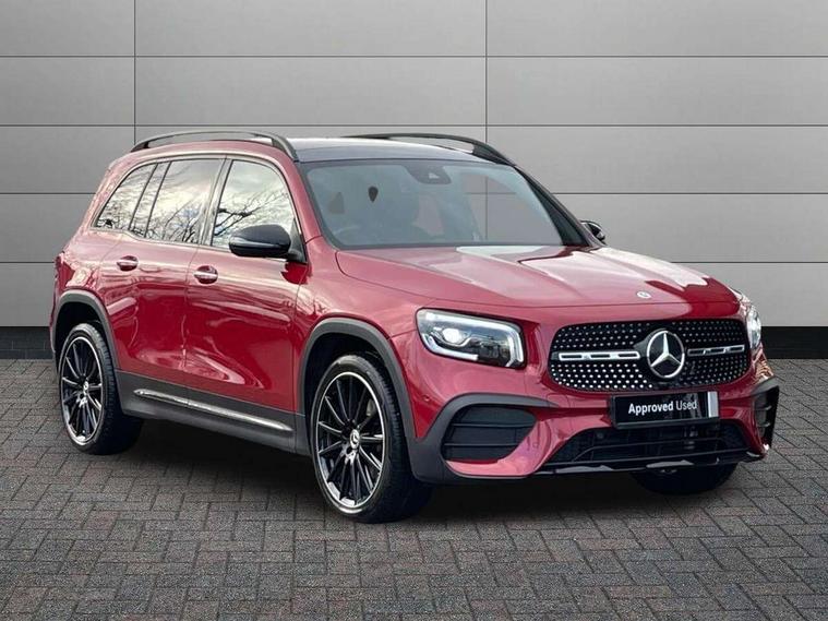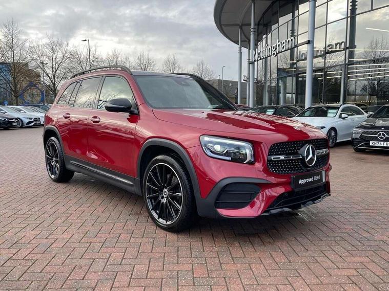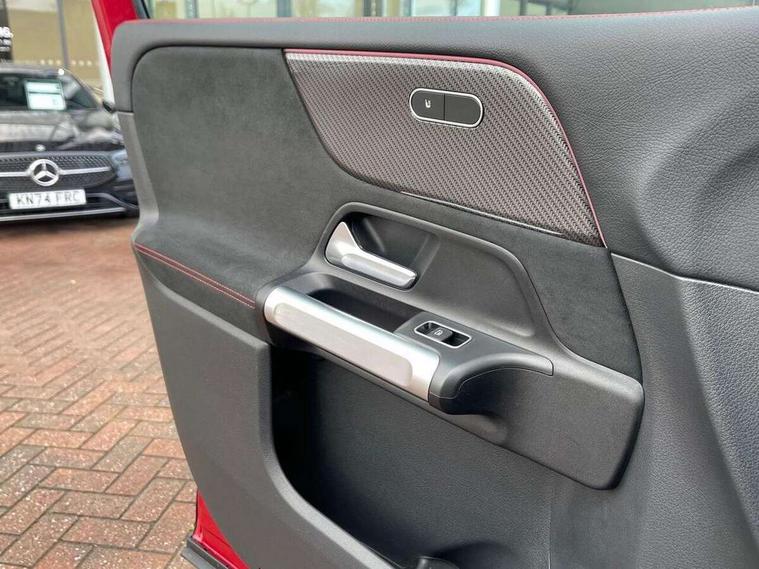 10.25" Digital instrument cluster display screen, 10.25" Digital media screen display, Active lane keeping assist, Attention assist - Monitors steering behaviour and long journey fatigue, Brake pad wear indicator warning light, Car wash mode, Cruise control with limiter, DYNAMIC SELECT with a choice of driving modes (ECO, Comfort, Sport and Individual), ECO start/stop function, Fluid level warning indicator for fuel, oil, coolant and washer fluid, Hard disk navigation, Hey Mercedes Voice activation, Lamp failure indicator, Mercedes me connect including emergency call system, accident recovery, breakdown and maintenance management, Mercedes me remote services, Outside temperature gauge, Owners manual and service booklet in English, Parameter steering system, Pre-installation of private car share, Preinstallation for parking damage notification, Radio aerial integrated into front and rear windshields, Service indicator (ASSYST), Smartphone integration with Apple CarPlay and Android auto, Speed limit assist, Traffic sign assist, Trip computer in multifunction display with current consumption indicator, 23.8 litre AdBlue fuel tank, Comfort suspension, Rear axle multi-link, DAB digital radio tuner, MBUX multimedia system with DAB digital radio and touchpad including satellite navigation, Mercedes Benz sound system (225 W) with 10 speakers, 1 central speaker, speakers on doors, a tweeter on door, one sub woofer + boost amplifier, Pre installation for Mercedes Benz Link, USB (type C) port in front stowage compartment, USB (type C) ports (2) in stowage compartment, Adaptive brake lights, Aerial for GPS, AMG bodystyling door panels black grained with chrome plated inserts, AMG bodystyling front apron with chrome splitter, AMG bodystyling rear apron with diffuser optics and chrome trim element, AMG specific front and rear bumper including underride guard in high gloss chrome, Auto headlights, Beltline strips and weather strip in chrome, Black door mirrors, Black roof rails, Body coloured bumpers, Body coloured door handles with chrome insert for keyless entry, Electric adjustable and heated door mirrors with integrated LED side indicators, Electric panoramic glass sunroof, Exhaust system with dual flow exhaust pipes (non-functional), Front and rear electric windows, Headlamp assist automatic headlamp activation, Heated glass rear windscreen + timer control, High level LED third brake light, Interior mirror with black reading lamps and frameless, LED daytime running lights, Multibeam LED headlamps and tail lamp with adaptive high beam assist, Privacy glass with dark tinting on rear side windows and rear window, Radiator grille with pins in chrome and single louvre with chrome insert, Rain sensor windscreen wipers, Rear fog lamp, Rear side wing doors, Rear wiper, Two visible tailpipe trim elements exhaust, 3 seat bench in 2nd row, 3 spoke multifunction sport steering wheel in nappa leather, Air conditioning - Two zone thermotronic luxury automatic climate control with display, AMG sports pedals with brushed stainless steel surfaces and black rubber studs, Artico man-made leather/Microcut microfibre upholstery with red contrast stitching, Automatic child seat recognition sensor, Black floor mats with AMG lettering, Black roof lining, Electrically adjustable front memory seats including lumbar support, Fore/aft adjustment rear seats, Freight packaging with tie-down hooks, Front centre armrest with stowage, Front door sills with illuminated changeable cover, Front passenger grab handle with brushed side silver chrome, Front sports seats with adjustable head restraints, Galvanished gear shift paddles on steering wheel, Heated front seats, Height/reach adjustable steering column, Interior lighting - 64 colour Ambient lighting, Luggage net on driver/front passenger seat backrest, Net in front passenger footwell, Rear armrest with two integral cup holders for drinks, Rear seat easy entry, Single front passenger seat, Stowage compartment in centre console, Stowage compartment with retractable cover, Third row of seats for two people on rear seat, Touchpad on center console, Twin front cup holders, Two outer rear seat isofix and top tether child seat fixing points, Interior lighting with light and sight pack - GLB, Keyless go comfort pack - GLB with easy pack tailgate, Memory package - GLB, Mirror pack - GLB, Parking pack - GLB, 3 rear 3 point seatbelts, Active bonnet pedestrain safety measure which detects an impact and raises bonnet by 65mm, Active brake assist includes forward collision warning system with autonomous braking, Adaptive brake assist with hold function and hill start assist, Airbags - kneebag for driver, Anti-lock braking system (ABS) with brake assist, Childproof locks manually operated for rear doors and electrically operated for rear power windows, Crash responsive emergency lighting, Curve dynamic assist, Driver and front passenger head and sidebags, Driver and front passenger windowbags, Dual stage driver and front passenger airbags, Electronic parking brake, Electronic stability programme with acceleration skid control, Front and rear seatbelt reminder, Front brake callipers with Mercedes Benz lettering, Front passenger seat occupancy sensor, Tyre pressure monitoring system, Warning triangle and first aid kit, Guard 360 degree vehicle protection - Anti theft alarm system, tow away protection with visual, acoustic warning and alarm, Interior monitoring system, KEYLESS-GO Spanner communicates with the vehicle within two metres of the door, Remote central locking and crash sensor with emergency opening function, Thatcham category 1 alarm system with immobiliser and interior protection, Vehicle key with decorative surround in chrome, Black air vents with chrome surround, Carbon structure trim, 20" AMG multi spoke light alloy wheels painted in high gloss black with high sheen rim flange, Summer tyres, Tirefit tyre sealant kit,
