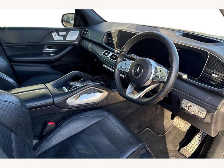 Active parking assist including parktronic and 360 degree camera, Attention assist, Bluetooth connectivity, Crosswind Assist, Direct steering, DYNAMIC SELECT with a choice of driving modes (ECO, Comfort, Sport, Sport+ and Individual), Easy-pack tailgate - Powered opening/closing automatically, ECO start/stop function, Front wireless charging system for mobile devices, Head up Display, MBUX augumented reality for navigation, MBUX Interior assistant, Mercedes me connect, Parking pilot with front and rear sensors, steering assist and 360 camera, Service indicator (ASSYST), Smartphone integration with Apple CarPlay and Android auto, Soft closing aid for boot/doors, Airmatic air suspension with adaptive damping system + level adjustment, Diesel particulate filter, 1 data-enabled USB port in the oddments tray, 2 USB ports capable of charging in the 2nd seat row, 2 USB ports capable of charging in the 3rd seat row, 2 USB ports in centre console, 2x wireless headsets, 3.5 mm headphone jack, Burmester surround sound system, DAB Digital radio, MBUX rear seat entertainment system - two permanently-integrated full HD 11.6" touchscreent with full HD camera, Micro-HDMI, TV Receiver, USB-C, Adaptive brake lights, Adaptive high beam assist plus, AMG bodystyling front and rear aprons and side skirts, Chrome roof rails, Electrically folding trailer coupling with ESP trailer stabilisation, Headlamp assist automatic headlamp activation, Illuminated running boards with rubber studs, LED tail lights, LED third brake light, Magic vision control with adaptive heated windscreen wiper system, Multibeam LED, Panoramic glass sunroof, Privacy glass, Rain sensor windscreen wipers, Tinted glass, Trailer Manoeuvring Assist, Underguard - full length reinforced underfloor panelling, 3 spoke multifunction sports steering wheel in black nappa leather with flattened bottom section, perforated grip area with touch control buttons, Air balance interior fragrance dispenser, AMG brushed stainless steel sports pedals with rubber studs, AMG floormats, Auto Mercedes-Benz child seat recognition sensor, Climate front seats, Comfort front headrests, Dashboard and door beltlines in artico leather, Easy entry/ electrically adjustable steering column, Easy-pack removable load compartment cover, Electric seat adjustment, Front centre armrest with storage compartment, Front gesture control, Front/rear reading lights, Heated seats (2nd row), Illuminated front door sill panels with Mercedes-Benz lettering in white, Interior lighting - 64 colour Ambient lighting, Isofix child seat attachment, Leather upholstery, Load securing rings in luggage compartment, Multi contour front seats with massage function, Rear cupholder, Rear folding armrest, Rear head restraints, Sunvisors with illuminated vanity mirrors, Temperature controlled cupholder, THERMOTRONIC luxury automatic climate control, multi-zone function with separate settings for driver/front passenger and rear., Driving assistance plus pack - GLS, Energizing plus package - GLS, Exclusive Trim package - GLS, Keyless go comfort package - GLS, Memory package - GLS, Mirror pack - GLS, Warmth comfort package - GLS, 3 point rear seatbelts, ABS with Brake Assist, Active bonnet, Adaptive brake system with hold function, Airbags - windowbags, Driver/Front Passenger airbags, Drivers knee airbag, Electrically adjustable easy entry for rear seats, Electronic four wheel traction control, Electronic parking brake, ESP with ASR, Front side airbags, Hill start assist, Tyre pressure monitor, Alarm system/interior protection/immobiliser, Remote central locking, Anthracite open pore oak wood trim, 22" AMG multi spoke alloy wheels painted in black, Space saver spare wheel,