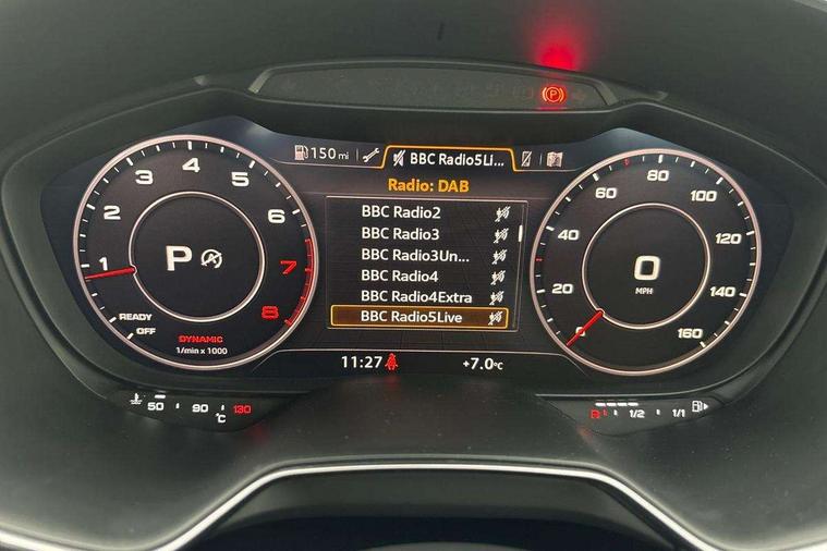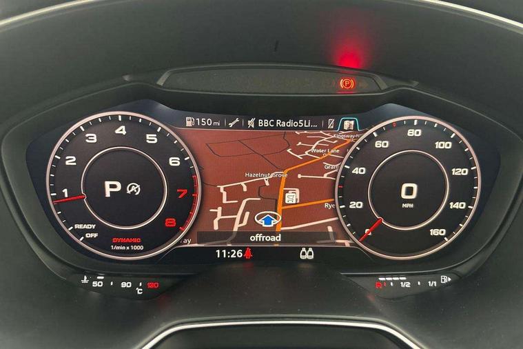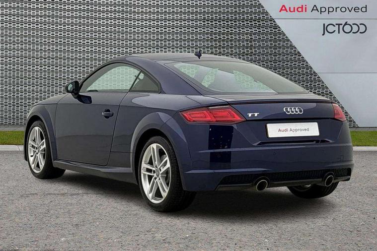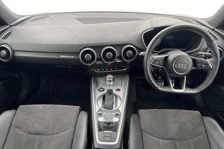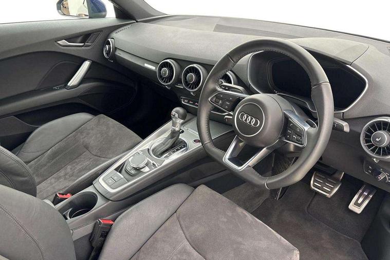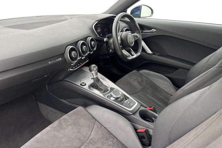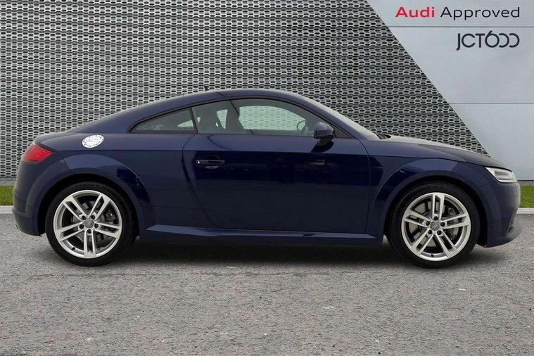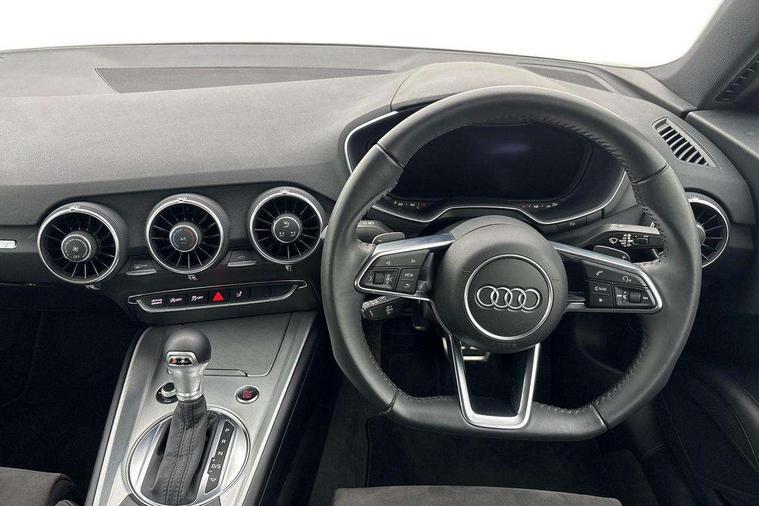 Audi drive select with 4 Pre configured modes, Audi smartphone interface, Audi virtual cockpit - 12.3" high-resolution LCD display with fully customisable instrument cluster, Cruise control + speed limiter, Emergency call service, MMI touch panel, Mobile phone preparation with bluetooth interface, Progressive power assisted steering, Service interval indicator, Start/Stop system with energy recuperation, TP memo, Sports suspension, AM/FM radio, Bluetooth audio streaming, DAB Digital radio, MMI Radio with CD player and SD/XC card slot, 3rd brake light, Auto dimming rear view mirror, Body colour bumpers, Body colour electrically adjustable and heated door mirrors with built in LED side indicators, Electric folding door mirrors, Electric front windows, Front fog lights, Green tinted heat insulating glass, Light and rain sensors, Rear boot, Retractable rear boot spoiler, Sunband for windscreen, Xenon headlights with LED daytime running lights with automatic headline range control + LED rear lights, brake lights and rear indicators, 12V socket, 2 rear seats, 3 spoke flat bottomed high multi-function leather sport steering wheel with gearshift paddles, Alcantara/Leather upholstery includes seat centre panels, door trim inserts in black Alcantara with side bolsters, head restraints in black leather, Aluminium door sill trims, Front centre armrest, Front passenger seat, Front sports seats, Heated front seats, Height adjustable driver's seat, Height adjustable front head restraints, Height/reach adjust steering wheel, ISOFIX child seat mounting for front passenger seat with airbag deactivation, Rear head restraints, Rear top tether child seat ISOFIX attachment, Split folding rear seat, Non smoking pack - TT/TT RS, 3 point front seat belts, ABS, ASR traction control, Curtain airbags, Driver and front passenger airbag with front passenger airbag deactivation, EDL traction control, Electromechanical parking brake, ESP, First aid kit, Front side airbags, Head airbags, Hill hold assist, Seatbelt warning, Tyre pressure loss indicator, Warning triangle, Anti theft alarm, Anti theft wheel bolts, Immobiliser, Keyless Go, Remote central locking, Aluminium design inlays, Tool kit, Tyre repair kit,