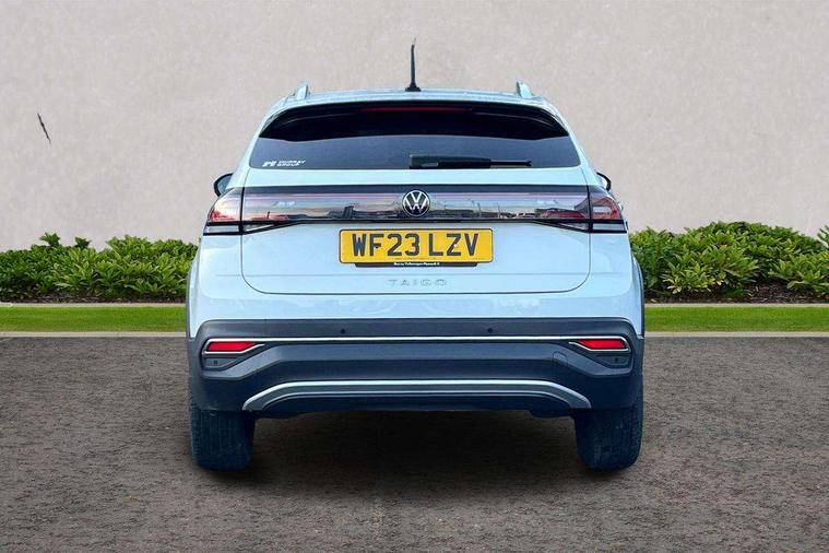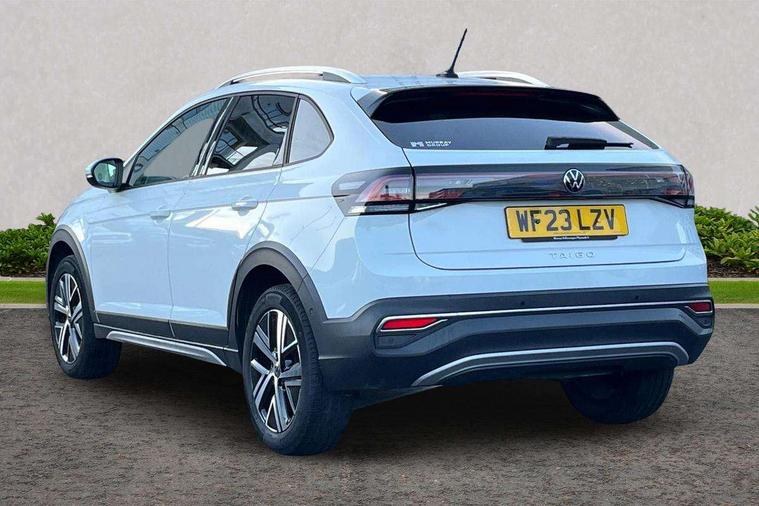 App-Connect including App-Connect Wireless, Digital cockpit pro - 10.25" high resolution TFT dash display screen with customizable menus and information, Driver alert system, e-Call (emergency call), Power Steering, Travel assist including emergency assist, Washer fluid level indicator, Wireless Charging including Bluetooth, Rear shock absorption, Start-stop system with battery regeneration (recuperation - energy recovery during braking), Digital radio reception (DAB+), Diversity antenna for FM reception, WeConnect plus, Advanced high beam control dynamic light assist for LED matrix headlamps, Aspherical driver's exterior mirror, Body coloured bumpers and radiator grille with chrome trim and front fog lamps with chrome bezel, Body coloured exterior mirror housings and door handles, Dual chrome twin tailpipes on left and right, Dynamic headlight range control, Electric windows, Exterior ambient lighting in illuminated front grille, External USB type C socket and charging sockets, Front fog lamps with cornering function, LED matrix headlamps, LED rear combination lamp, LED third brake light, Left convex exterior mirror, Power folding adjustable/heated exterior mirrors and front passenger exterior mirror lowering function, Rear fog light on one side, reversing light on both sides, Rear side wing doors, Rear wash/wipe with intermittent wipe setting, 12V socket in centre console, 2 front reading lights, 3 rear head restraints, 3 seat bench in 2nd row, Air care climatronic air conditoning system with active combination filter and 2-zone temperature control, Ambient lighting with logo projection, Black carpets, Child seat anchor for child seat system i-Size, 2x top tether and child seat anchor in front on front passenger side, Chrome bezel for instrument cluster, vents, door handles + gear shift, Driver and front passenger seat height adjustment, Front + rear carpet mats, Front centre armrest, Front footwell illumination, Front sports comfort seats, Height and reach adjustable steering wheel, Interior ambient lighting and surround lighting, Leather trimmed gear knob, Leather wrapped multifunction steering wheel, Luggage compartment floor, Luggage compartment light, Lumbar support for driver's and front passengers seat, Single front passenger seat, Split folding backrest with centre armrest and unsplit rear seat bench, Storage compartment under front seats, Sun visors with illuminated vanity mirrors, Chrome Package - Taigo, Drivers assistance pack - Taigo, Light and sight pack - Taigo, 2 x 3-point seatbelts/outer rear seats with ECE label, 3-point seat belts in front with pretensioner and height adjustment, 3-point seatbelt for centre rear seat, Driver and front passenger airbags with front passenger airbag de-activation, front side and curtain airbags, Driver and front passenger safety-optimised head restraints, Electronic stability control, Extended and predictive pedestrian/ cyclist protection, Front and rear disc brakes, Front curtain and side airbags with center airbag, Hill start assist, Manual rear child locks, Single tone horn, Tyre pressure loss indicator, Anti-theft alarm system with interior monitoring, backup horn, and towing protection, Anti-theft wheel bolts, Low rolling resistance tyres,