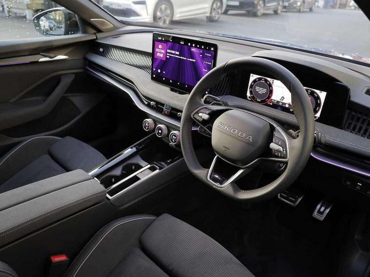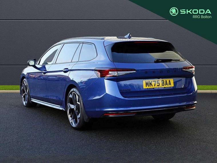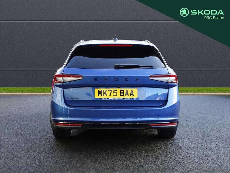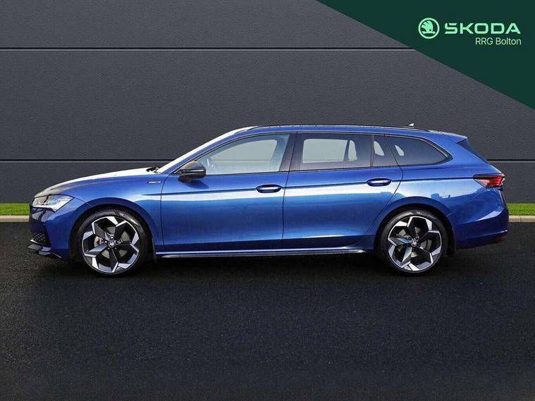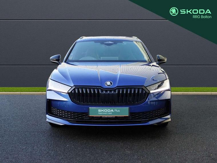13" touchscreen display with satellite navigation, 4x USB-C ports (2x in front centre console and 2x in rear) (45W), Adaptive cruise control with speed assist, lane assist plus and traffic tram assist, Blind spot detection with door exit warning, Bluetooth system, CareConnect and Emergency Call, ChatGPT functionality, Driver fatigue sensor, Front assist with extended predictive pedestrian protection, Front cross traffic assist, PAS, Quick start all heating software functionality, Stop/start engine system, Traffic sign recognition, Turn assist with evasive assistance, Virtual Cockpit - 10.25" digital display, Voice control system, Washer for rear camera, Wireless charging for one smartphone (15W) with cooling function, Wireless smartlink apple carplay, SmartLink+ android auto, Dynamic chassis control plus with progressive dynamic steering, DAB Digital radio, Display cleaner, FM radio connection, Web radio connection, Acoustic side windows and interior noise suppression, Backdrop lighting, Black exterior styling window and grille surrounds, Black roof rails, Body colour door handles, Dynamic range control with poor weather light and integrated fog light, Electrically adjustable, heated, folding and driver side auto-dimming door mirrors with memory function, integrated indicators and logo projection, Frameless auto-dimming rear view mirror with USB-C, Gloss black door mirrors, Ice scraper in fuel tank cap, LED 3rd brake light, Light assist with High beam control, Light assistant (coming/leaving home/tunnel light), Privacy glass, Rear fog lights (x2), Rear roof spoiler, Rear side wing doors, Rear windscreen wiper, Skoda lettering in black, Sportline badging, Sports bumpers, Windscreen wipers with rain sensor, 12V socket 1x centre console 1x boot, 14-way electrically adjustable, memory, front seats with 4-way pneumatic lumbar support, and extendable thigh support with smart comfort entry aid, 2x cargo elements in boot, 2x light in boot, 3 seat bench in 2nd row, 4x foldable bag hooks in boot, 60:40 Split folding rear seats, Aluminium pedals, Bottle holders in the front doors 1.5 litre bottle and rear 1.5 litre bottle, Cup holder in front with easy open mat, Front armrest with storage box, Front sports seats, Heated and ventilated front seats, Height adjustable front and rear head restraints, Illuminated glovebox, Interior lights with control switches, Isofix child seat fittings in outer rear and front passenger seats, LED front and rear reading lights, Single front passenger seat, Skoda lettering on steering wheel, Storage compartment with cover, Storage pockets on back of front seats, Sun visors with illuminated vanity mirrors, Ticket holder on A Pillar, Tri zone climate control, Umbrella in driver's door, Light and view package - Superb, Transport package - Superb Estate, 3 rear seatbelts, 8 Airbags - Front driver and passenger, front side driver and passenger, centre, curtain front and rear, drivers knee, Crew protect assist, Driver and passenger seatbelts with warning light, Electronic parking brake, ESC including ABS, EBV, MSR, ASR, EDS, HBA, DSR, RBS, CBC, multi-collision brake (MKB) and Auto hold, Hill hold assist, Power operated child lock in rear doors, Alarm with interior monitoring tilt sensor and back up horn, Backrest remote release from trunk, Electronic engine immobiliser, Keyless start/stop, Remote central locking with SAFE system, Third key, Walk away locking, Decorative front door sills, 19" Torcular polished black alloy wheels with anti theft wheel bolts,