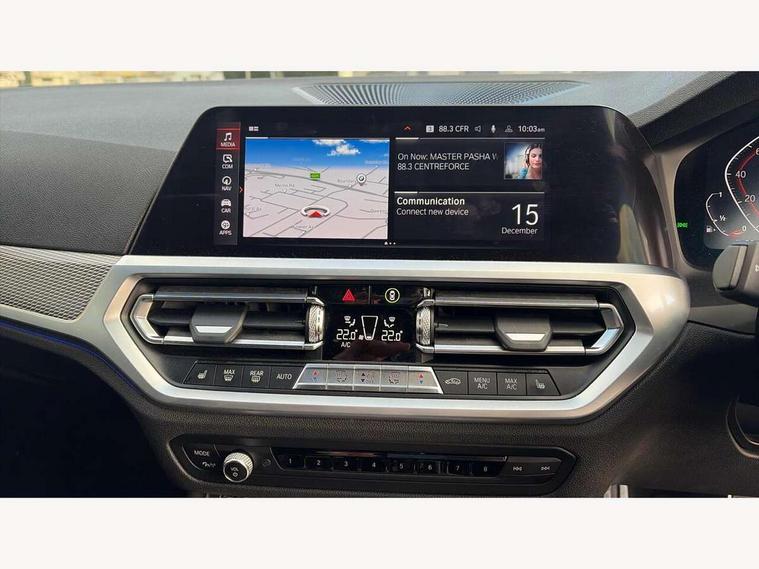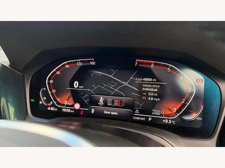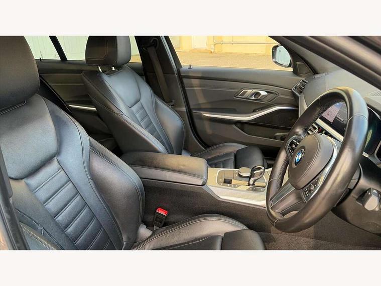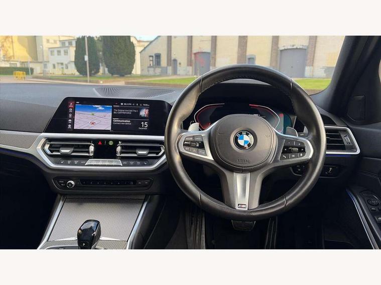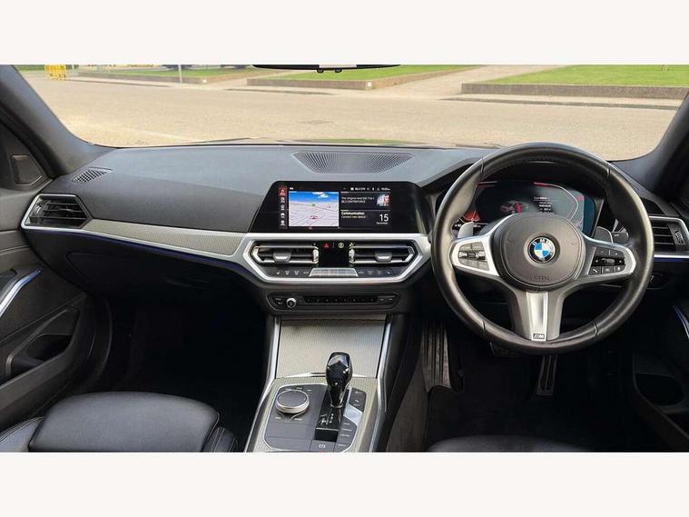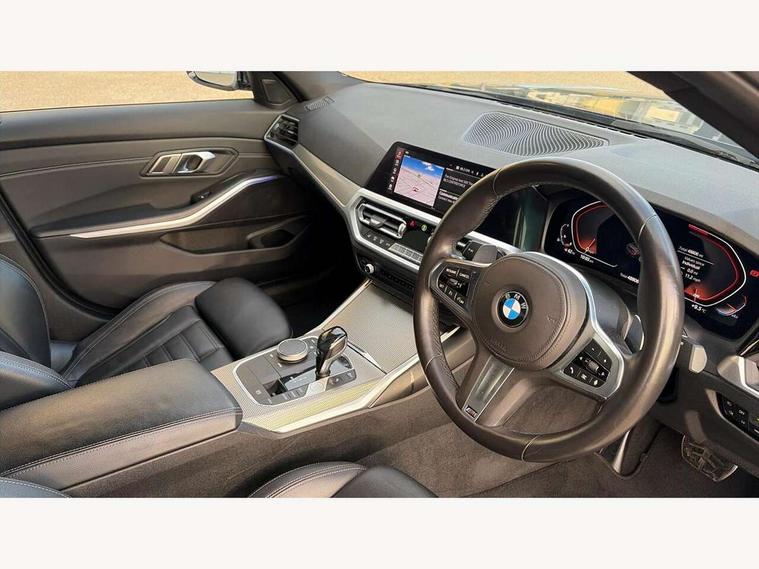 Active guard plus, Attentiveness assist, Auto start-stop, BMW iDrive controller on centre console, BMW Live Cockpit Professional sat nav system including 10.25" high resolution display and Intelligent Voice Assistant, BMW Online services, BMW Teleservices, Brake pad wear indicator in front and rear, Check Control warning system for monitoring of lights and door/luggage compartment open warning, Condition based service, Instrument cluster with speedometer with mph readout, tachometer, fuel gauge and oil temperature gauge, Oil sensor for level and grade, On board computer - average speed+fuel consumption, service interval, clock/date, odometer/trip meter, outside temperature display and ice warning, Optimum shift indicator, Personal Profile, Variable sport steering, Battery cut-out switch, Double VANOS, Drive performance control with ECO PRO comfort and Sport+ mode, Electronic differential lock, High precision injection, Larger capacity fuel tank, M sport suspension, Petrol Particulate Filter, Sport automatic transmission with steering-wheel mounted gearshift paddles and launch control, Stroke dependent dampers, DAB tuner, Acoustic glazing, Active airstream chrome frame kidney grille with 8 high gloss black vertical slats, Automatic headlight beam throw control with load dependent regulating reaction, dynamic compensation of braking dive and acceleration squat, Black roof mouldings, Body colour - fuel filler flap, front and rear bumpers, door handles and mirror caps with integrated turn indicator + bottom segment in matt black, Dynamic brake lights, Extended LED headlights, Exterior mirrors - electrically folding with anti-dazzle, Front and rear bumper system with replaceable deformation elements, Front and rear electric windows with open and close fingertip control, anti trap facility and comfort closing, Front black door sill finishers with BMW designation, Green tinted heat protection glazing, High gloss shadow line exterior trim, Interior rear view electrochromatic mirror with automatic anti dazzle function, LED front fog lights, Left and right split exhaust tailpipes, Lightweight engineering, M aerodynamic body styling, M designation on left and right front side panels, M designation side badges, Matt black exterior B pillar, Model designation on right side of tailgate, Rain sensor with automatic headlight activation, Shark fin antenna, Two part LED tailights in L-shape with components in smoked glass, brake light, LED turn indicator and rear fog light, Visible VIN plate, Welcome lights in interior and door handle area, Windscreen wipers with integrated washing jets, 12V power socket in front storage compartment, 2 front cupholder in centre console with clamping elements and matt black inlay, 3 rear seats with non folding headrests with 3 point seat belts, 3 spoke M leather steering wheel, 4 pieces lashing eyelets in luggage compartment, 40:20:40 split folding rear bench seat, Ambient lighting, Anthracite headlining, Armrest integrated in front and rear door trim + front centre console armrest, Centred top Luggage compartment lights, Four grab handles integrated in roof lining, Front and rear door pockets, Front and rear velour floor mats, Front head restraints, Front sport seats, Heated driver and front passenger seats, Height adjustable mechanically and infinitely variable steering column, Illuminated glove compartment with separate small compartment, Interior lighting - front centre over interior mirror with soft light, rear centre and front and rear footwell lighting, Rear centre armrest with 2 cupholders, Rear centre console with storage compartment and ventilation grille, Steering column length adjustment lever, Sunvisors with vanity mirrors and ticket pocket, Three zone automatic air conditioning, Through loading system with 40/20/40 split folding rear seat, Toolkit located in luggage compartment, Connected pack professional - 3 Series Saloon/Touring, M Aerodynamics pack - 3 Series Saloon/Touring, 2 tone horn, ABS, Automatic Stability Control (ASC), BMW emergency call, Brake assist function, Brake drying, Brake energy regeneration, Braking pre-tensioning, Child proof locking system in rear door, Child seat ISOFIX attachment rear outer seats, Cornering brake control (CBC), Crash sensor activating of airbags, Unlocking doors, hazard warning lights, interior light, safety battery terminal, Driver and front passenger side airbags, integrated in the door side seat backrest bolsters for all seat variants, Driver/Front Passenger airbags, Dynamic brake control, Dynamic Traction Control - DTC, Electromechanical parking brake with automatic drive away release and auto hold function, Front passenger manual airbag deactivation, Head airbags for all 4 outer seats, Hill start assist, M Sport braking system, Seat belt security check for driver and front passenger, Side impact protection, Three 3 point seat belts on all seats including front belt stopper, pyrotechnic belt tensioners and belt force limiters, Tyre pressure monitoring with three level warning strategy, Ventilated front and rear disc brakes, Warning triangle and first aid kit, Alarm system (Thatcham 1) with remote control and electronic engine immobiliser, Central locking switch for all doors, fuel filler cap and luggage compartment, Remote control with integrated key one button open/close vehicle and windows, sole opening of the luggage compartment lid and panic mode, Selectable automatic lock when driving away, Start/stop button with Comfort Go keyless engine start and auto Start/stop deactivation button, Vehicle key with M specific designation, Reduced rolling resistance tyres,