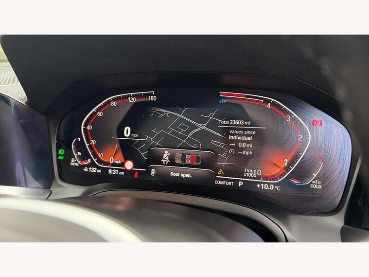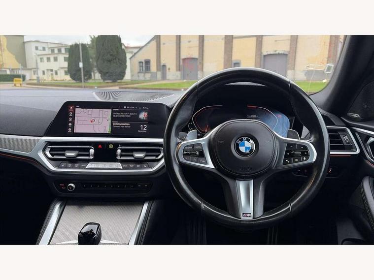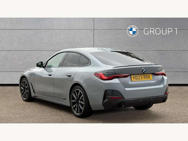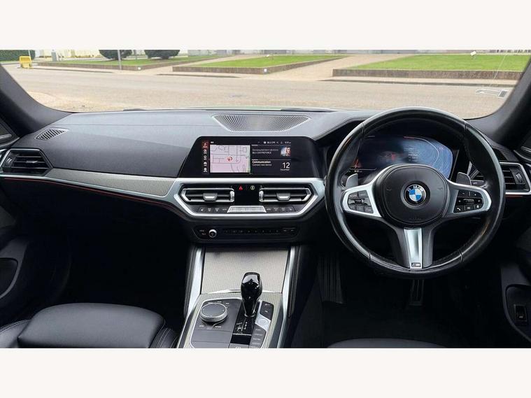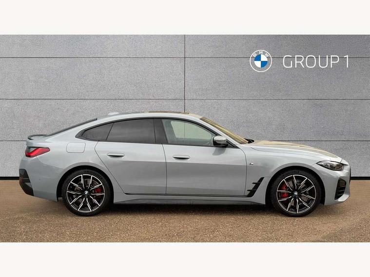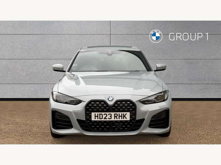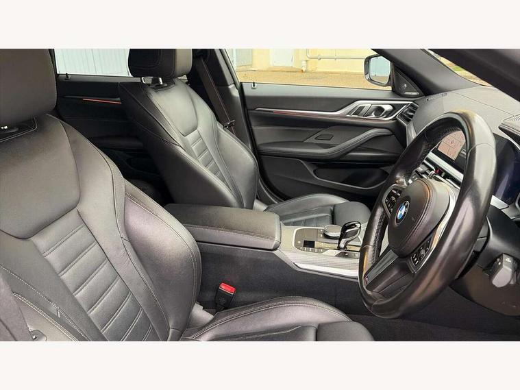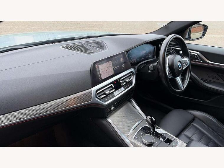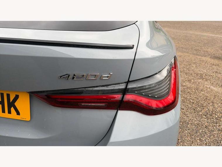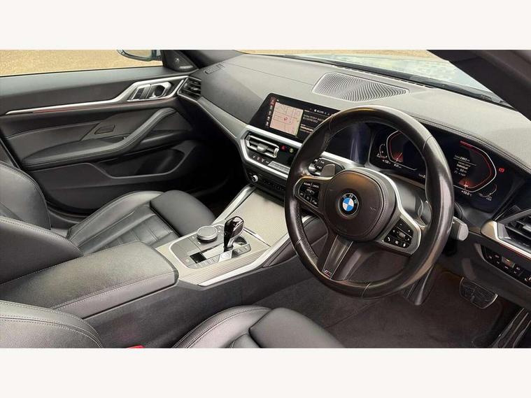 Active guard plus, Attentiveness assist, Auto start-stop, BMW ConnectedDrive online services, BMW iDrive controller on centre console, BMW Live Cockpit Professional Nav with 12.3" instrument display + 10.25" display, Intelligent Voice Assist, BMW OS 7, HDD, 2USB, 4G LTE connect, BMW service history, BMW Teleservices, Brake pad wear indicator in front and rear, Check Control warning system for monitoring of lights and door/luggage compartment open warning, Condition based service, Cruise control with speed limit function, Electric bootlid, Electric power steering with Servotronic steering optimised at all speed ranges, Gearshift time display in manual mode, Instrument cluster with speedometer with mph readout, tachometer, fuel gauge and oil temperature gauge, Integrated owners handbook, Oil sensor for level and grade, warning by check control system, On board computer - average speed, fuel consumption, outside temp display with acoustic warning, clock/date, service interval, odometer/trip meter, Optimum shift indicator, Shifting point display, Variable sport steering, 48V Mild hybrid technology, 8 speed automatic steptronic transmission with gearshift paddles, Diesel particulate filter, Double joint spring strut front axle, Drive performance control - ECO PRO, comfort and sport modes, Incorrect fuelling protection, Low centre of gravity, M sport suspension, Stroke dependent dampers, 2x USB Type C ports in front centre console for charging and data transfer, DAB tuner, Electronic service booklet, 3rd brake light, Acoustic glazing, Automatic headlight beam throw control with load dependent regulating reaction, dynamic compensation of braking dive and acceleration squat, Automatic windscreen wipers and automatic headlight, Automatically dimming electrochromatic rear view mirror, BMW emblem on engine compartment lid and tailgate, BMW kidney grille with mesh grille front side of the nuggets in matt aluminium and frame in chrome high gloss, Body colour fuel filler flap, Body colour roof fin, Brushed aluminium inserts in the front door sill finishers with BMW designation, Door sill strips, Dynamic brake lights, Electric windows - front and rear, with open/close fingertip control, anti trap facility and comfort closing function all round, Exterior mirrors - electrically folding with anti-dazzle, Fading support, Follow me home headlights, Front and rear bumper system, Front apron plastic in body colour, Green tinted heat protection glazing, High gloss shadow line exterior trim, Illuminated bow type door handles in body colour drivers side with door lock, Interior rear view electrochromatic mirror with automatic anti dazzle function, LED daytime running lights, LED front fog lights, LED front indicators, Licence plate panel integrated into front bumper and tailgate, Lightweight engineering, M designation on front side panels, left and right, M sport rear boot spoiler with body colour gurney, Model designation on right side of tailgate, One piece front bumper cover including towing eye cover in body colour, Preparation for high beam assistant, Rear side wing doors, Rear wiper, Reversing light, Side frame decorative moulding black matt, Two part LED tailights in L-shape with components in smoked glass, brake light, LED turn indicator and rear fog light, Visible exhaust tailpipe finisher, Visible VIN plate, Welcome lights in interior and door handle area, Widened track and increased camber values for max transverse dynamics, agility and steering precision, Window recess cover black high gloss, Windscreen wipers with integrated heated washing jets, 12V power socket in front centre console, 2 front cupholder in centre console with clamping elements and matt black inlay, 3 rear headrests, 3 seat bench in 2nd row, 3 spoke M sport leather multifunction steering wheel, 3 zone automatic air conditioning, 4 pieces lashing eyelets in luggage compartment, 40:20:40 split folding rear seat and rear centre armrest with two cupholders, Anthracite headlining, Armrest integrated in front and rear door trim + front centre console armrest, Battery in luggage compartment, BMW ID, Driver seat backrest width adjustment, Four grab handles integrated in roof lining, Front and rear door pockets, Front and rear reading lights, Front sport seats, Heated driver and front passenger seats, Height adjustable front headrests, Height adjustable mechanically and infinitely variable steering column, Illuminated armrest storage compartment, Illuminated glove compartment with separate small compartment, Make-up mirror lights, Single front passenger seat, Storage compartment in rear centre console, Sunvisors with illuminated vanity mirrors and ticket pocket, Toolkit located in luggage compartment, Velour front floor mats, Vernasca leather upholstery, Ambient lighting pack - 4 Series, Connected professional pack - 4 Series, M sport exterior styling pack - 4 Series, 3 point seatbelts on all seats, Battery safety cut-off, BMW emergency call, Brake energy regeneration, Braking pre-tensioning, Child proof locking system in rear door, Child seat ISOFIX attachment for the two outer rear seats, Coasting in idle in ECO PRO mode, Cornering brake control (CBC), Crash sensor activating of airbags, Unlocking doors, hazard warning lights, interior light, safety battery terminal, Driver and front passenger side airbags, integrated in the door side seat backrest bolsters for all seat variants, Driver/Front Passenger airbags, Dry braking, Dynamic brake control, Dynamic stability control + (DSC+) - Anti-lock Braking System (ABS) with brake assist and cornering brake control + Automatic Stability Control (ASC), Dynamic Traction Control - DTC, Electric parking brake including automatic hold function and automatic release of the parking brake when driving off, Electronic differential lock control (EDLC), Front and rear ventilated brake disc, Front passenger manual airbag deactivation, Head airbags for all 4 outer seats, Hill start assistant, Seat belt securi