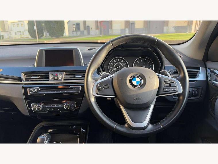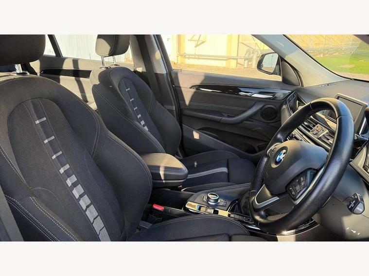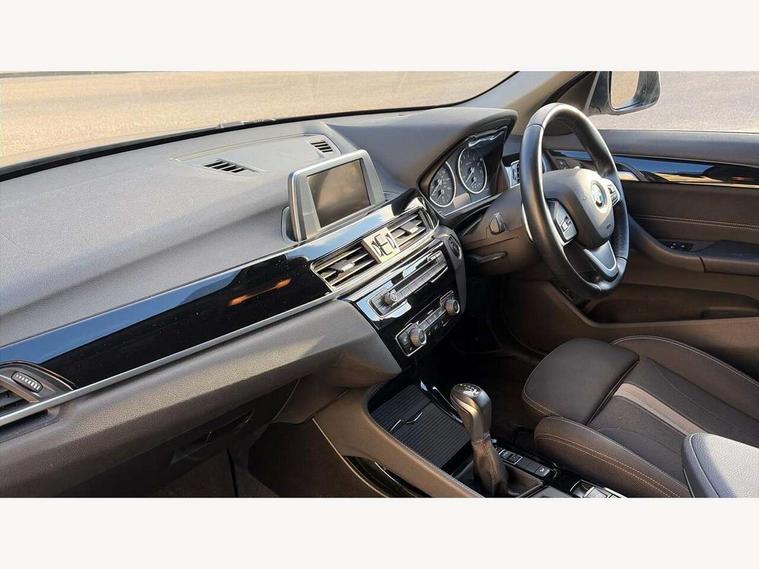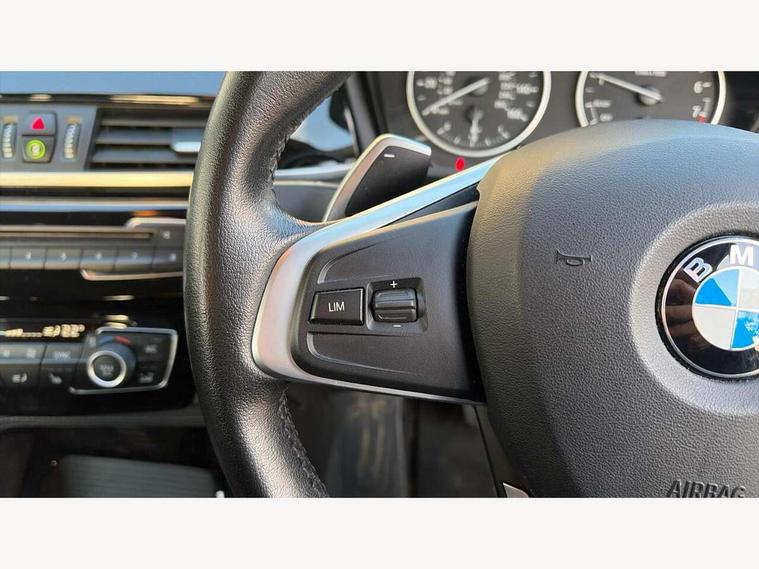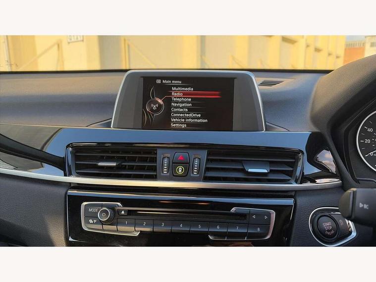 Active Guard incl speed limiting and lane departure functions with auto steering, and front collision warning with brake intervention, Ambient temperature display, Attentiveness assist, Automatic tailgate opening, BMW Online services, BMW Teleservices, Lights on warning, On board computer, Outside temperature gauge, Rear park distance control, Service interval indicator, Speed limiter, Stop/start button, Tyre puncture warning system, 61 Litre fuel tank, Electronic differential lock, Performance Control, Auxiliary socket for external MP3 player, BMW professional radio with CD player, DAB Digital radio, Adjustable headlights, Body colour bumpers, Body colour door handles, Electrically adjustable and heated door mirrors, Exclusive door sill finishers, Fingertip control / anti-trap function on electric window, Follow me home headlights, Front and rear electric windows, Front fog lights, Heat insulating tinted glass, Heated windscreen washer jets, kidney grille with high gloss black vertical slats, LED daytime running lights, Rain sensor including auto headlights activation, Twin chrome exhaust tailpipes x2, Welcome home function, 12v power point in centre console, 12V power socket in passenger footwell, 3 spoke sport leather steering wheel, 4 grab handles, Boot light, Centre console with cupholders, Driver/passenger sunvisors with ticket holders, Drivers folding storage compartment, Dual zone automatic air conditioning, Front and rear door armrests, Front centre armrest/sliding cover, Front passenger isofix child seat attachment, Front sports seats, Front/rear adjustable head restraints, Illuminated glovebox, Isofix rear child seat preparation, Leather gearknob/gaiter/handbrake grip, LED ambient lighting in door trim, Luggage area underfloor compartment, Multifunction steering wheel, Rake/reach adjustable steering wheel, Sliding/split/reclining 40/20/40 rear seat with 60/40 split rear seat base, Steering wheel gearshift paddles, Extended storage package - X1, 3 rear 3 point seatbelts, ABS/EBD, Audio/visual collision warning system, Automatic Stability Control (ASC), BMW emergency call, Cornering brake control (CBC), Crash Sensor - activates hazard/interior lighting + unlocks doors, Driver/Front Passenger airbags, Driver/front passenger side airbags, DSC - Dynamic Stability Control, Dynamic brake control, Dynamic Traction Control - DTC, Electronic parking brake, Front and rear head airbags, Front passenger airbag deactivation, Front seatbelt force limiters, Hill start assist, Pyrotechnically pre-tensioned front seatbelts, Rear door child safety locks, Seatbelt warning, Tyre pressure monitor, Warning triangle and first aid kit, Auto door lock when driving, Central locking including boot and fuel flap with deadlocks, Engine immobiliser, Locking wheel nuts, Remote control Thatcham category 1 alarm, High gloss black centre console, Low rolling resistance tyres,