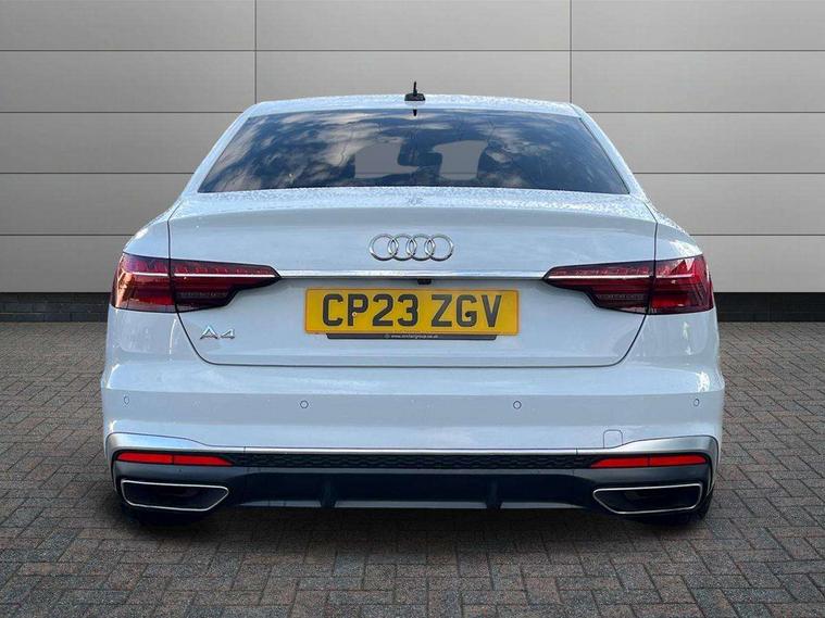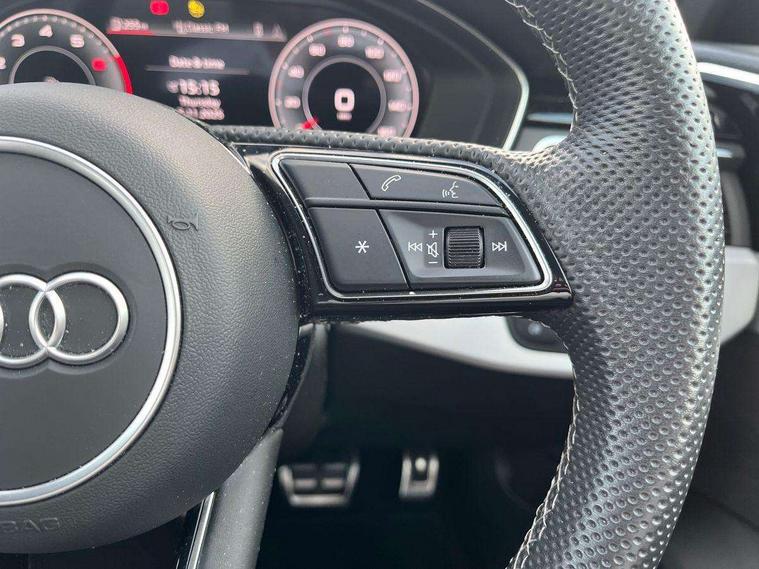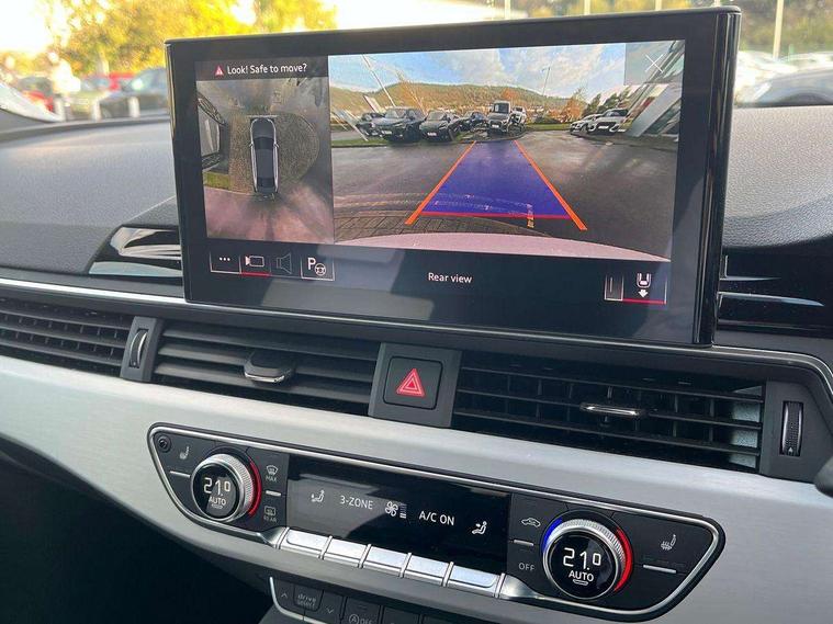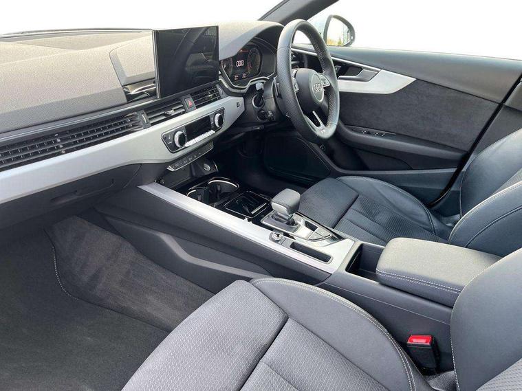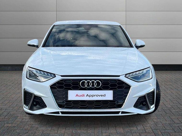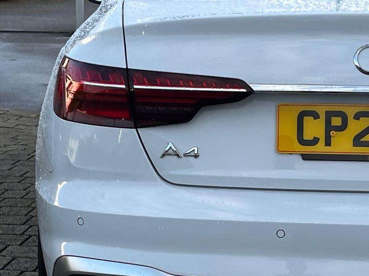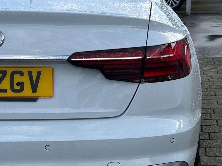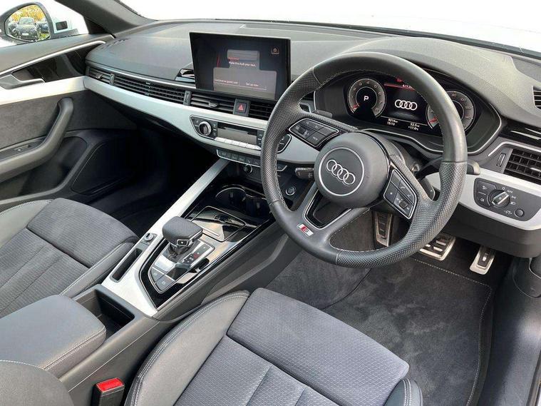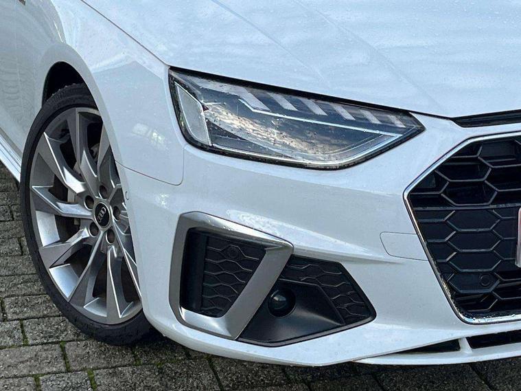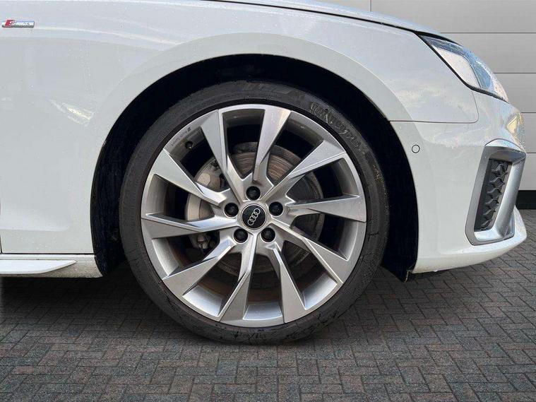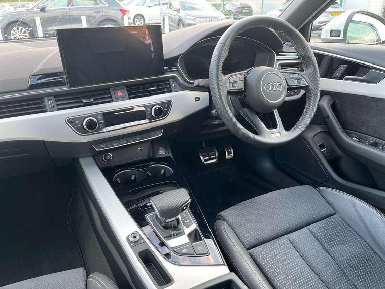 Audi connect safety and service (e-call), Audi drive select, Audi smartphone interface, Audi virtual cockpit, Automatic start-stop system with coasting functionality and efficiency programme, Bluetooth interface, Camera based traffic sign recognition, Electric boot lid release, Electromechanical power steering, Email, calendar and text messages displayed via MMI, Front and rear parking sensors, Lane departure warning, MMI Navigation plus with MMI touch includes 10.1" high resolution colour MMI display, 3D map, Rear view camera, Voice control system, 54 litre fuel tank, Sports suspension lowered by 23mm, 2 USB charging ports, 8 passive loudspeakers, DAB digital radio reception, Auto dimming rear view mirror, Body colour door handles, Body colour front spoiler lip, Body colour side sill trim, Body coloured door mirrors, Electrically folding auto dimming/adjustable/heated door mirrors with LED side indicators and kerb view function for passenger side, Grained matt black side air inlets with matt aluminium silver inlay, High beam assistant, Honeycomb structure radiator grille in grained matt black, LED headlights with LED rear lights + dynamic rear indicators + headlight adjustment and high beam, turning light + LED daytime running lights, LED third brake light, Matt aluminium silver tailpipe trim, Privacy glass, Rain and light sensors, Rear boot, Rear side wing doors, S Line badges on the front wings, S line front and rear bumpers with side skirts, S Line rear diffuser in matt anthracite black with trim strip in matt aluminium silver, Variable intermittent front wash/wipe, Windscreen with acoustic glazing, 3 spoke high multi-function sports leather steering wheel grips in perforated leather with S badging including paddle shift, 4 way electric lumbar support for driver and front passenger, 40/20/40 split folding 3 rear seat bench in 3 parts with rear centre armrest, Black cloth headlining, Black perforated leather gearknob, Contrast stitching on seats, steering wheel and gear lever gaiter, Deluxe 3 zone electronic climate control, Door sill trims with aluminium inlay, Front and rear head restraints, Front centre armrest, Heated front seats, Illuminated door sill trims with S logo, ISOFIX child seat mounting and top tether, Manual seat adjustment, Single front passenger seat, Stainless steel pedals and foot rest, High gloss package - A4, LED Interior light pack - A4/S4, 3 rear seatbelts, 6 airbags - Driver, front passenger, curtain and side windows, Attention and drowsiness assist, Electronic Stabilisation Control (ESC) including ABS, ASR and EDL, Hill hold assist, Multi collision brake assist, Pop-up bonnet for pedestrian protection, Pre sense city, Rear door child safety locks, Seatbelt monitoring, Warning triangle and first aid kit, Anti theft alarm, Anti theft wheel bolts, Central locking, Keyless Go, Matt brushed aluminium inlays, Tool kit, Tyre repair kit,